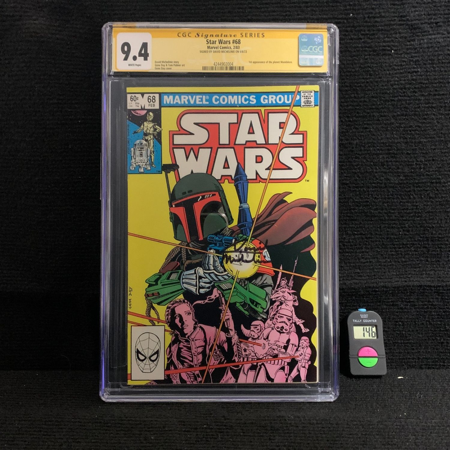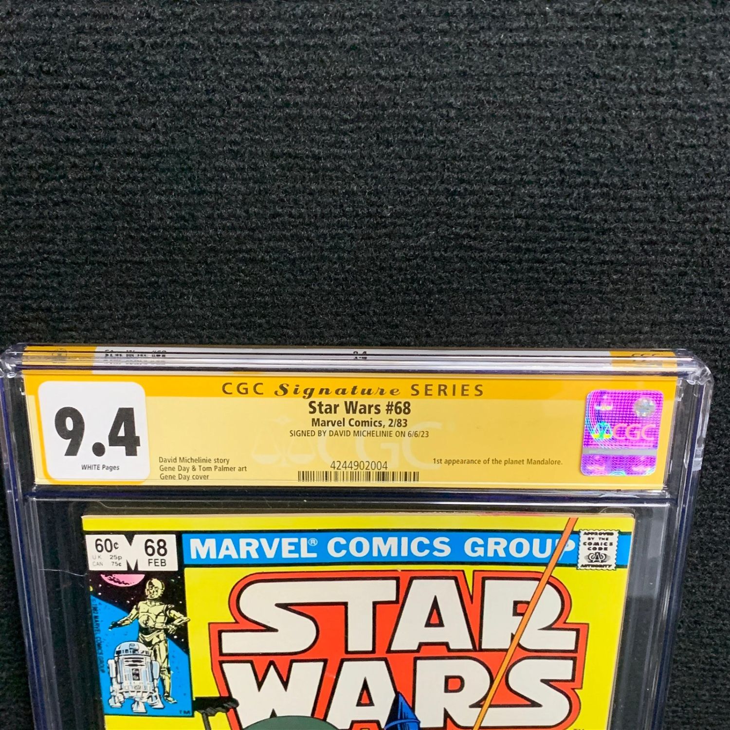 CGC 9.4 Star Wars #68 Signed by David Micheline. 1st Appearance of the planet Mandalore. We are a veteran owned company. Please look at the pictures carefully to determine what you believe the condition of collecitible is. We are currently accepting consignments. Email us a [email protected] or visit our website, www.ahauctionhouse.com.