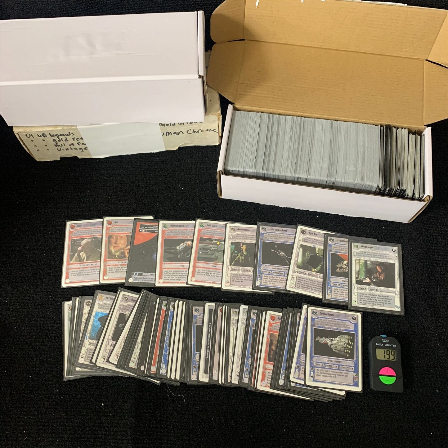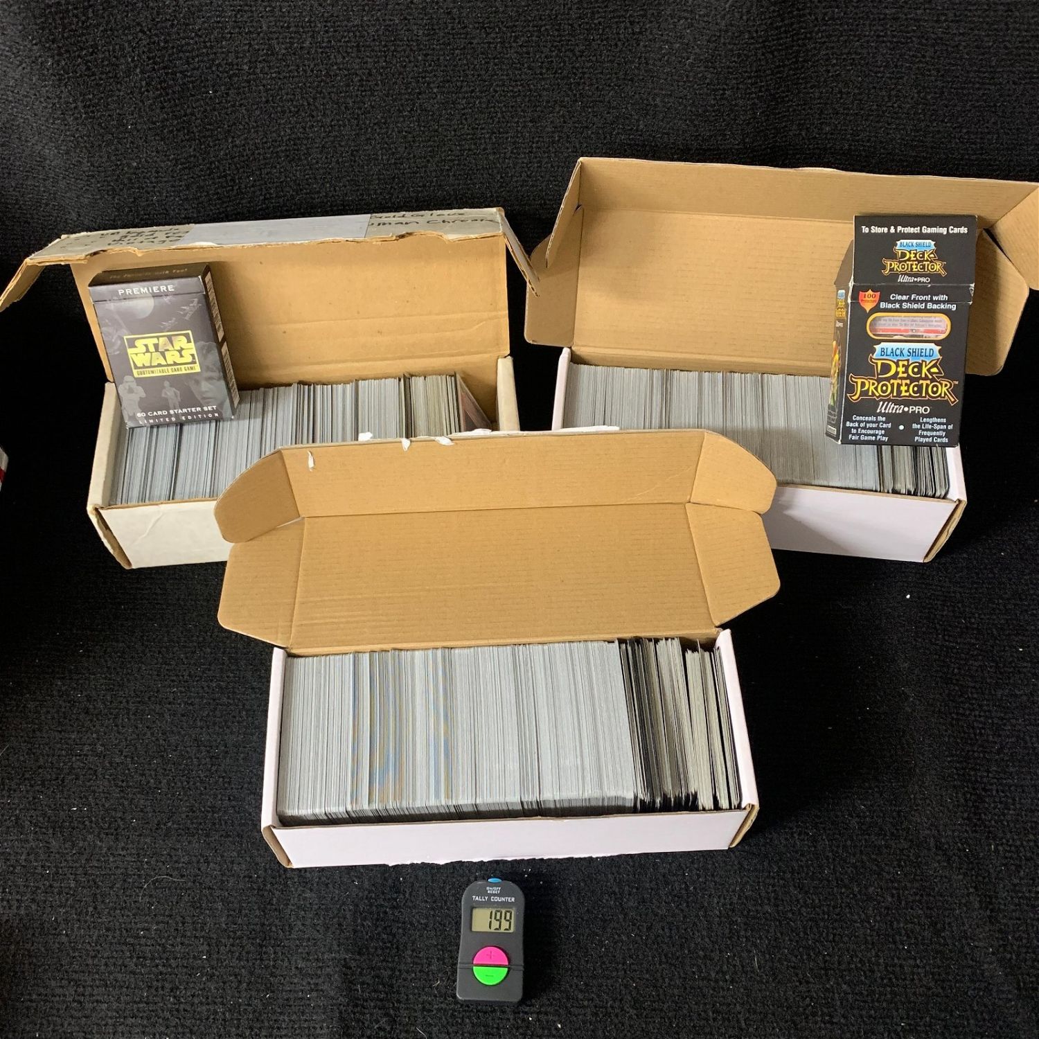 Three Boxes filled with 1000+ Star Wars TCG Cards. We are a veteran owned company. Please look at the pictures carefully to determine what you believe the condition of collecitible is. We are currently accepting consignments. Email us a [email protected] or visit our website, www.ahauctionhouse.com.