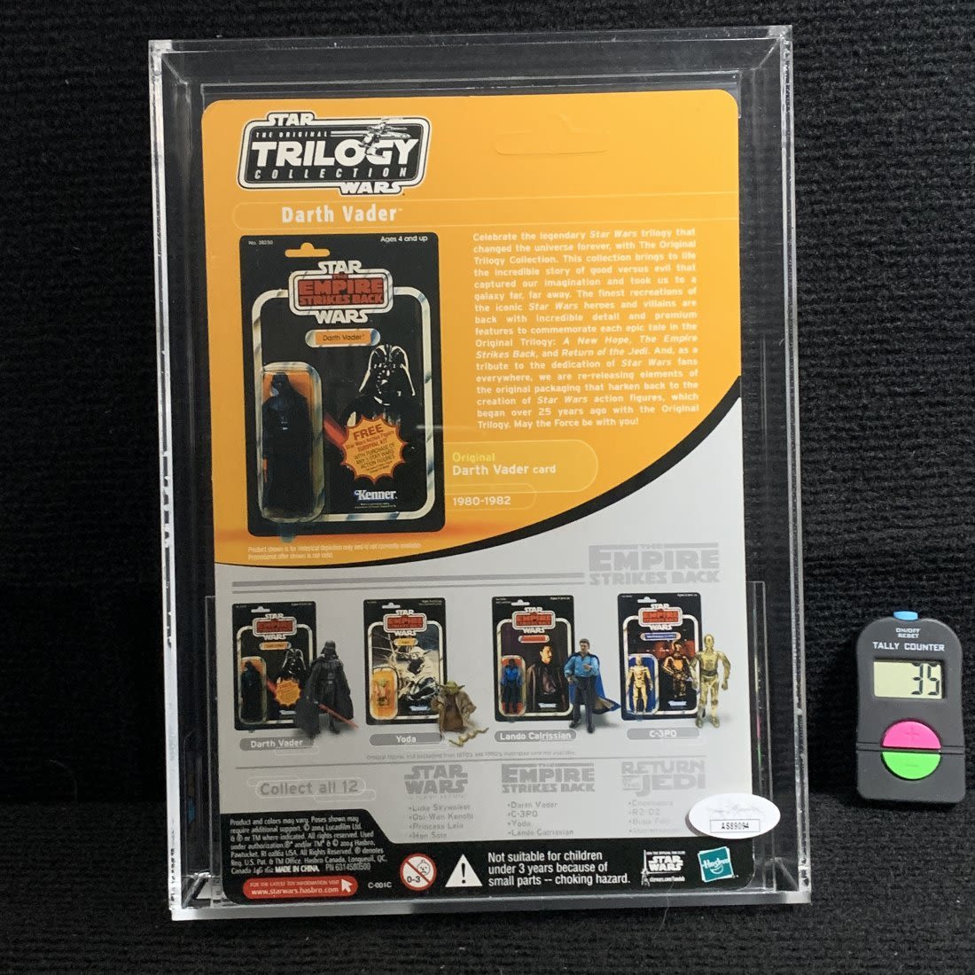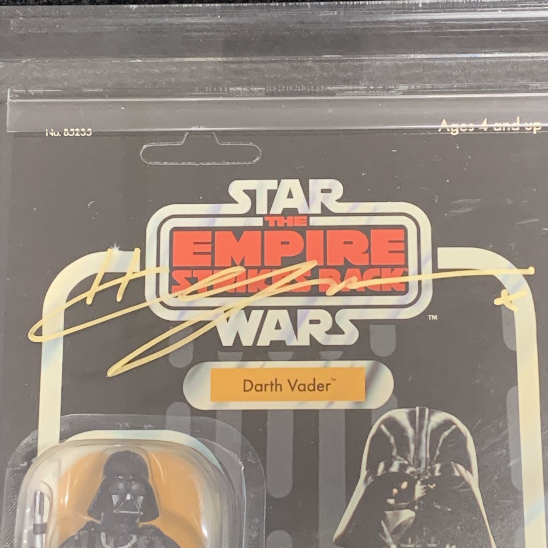 2004 Hasbro Star Wars Vintage Original Trilogy Darth Vader graded U85 NM+. The case is signed by Hayden Christensen and comes with a JSA COA! Beautiful Gold Sharpie autograph! We are a veteran owned company. Please look at the pictures carefully to determine what you believe the condition of collectible is. We are currently accepting consignments. Email us a [email protected] or visit our website, www.ahauctionhouse.com.
