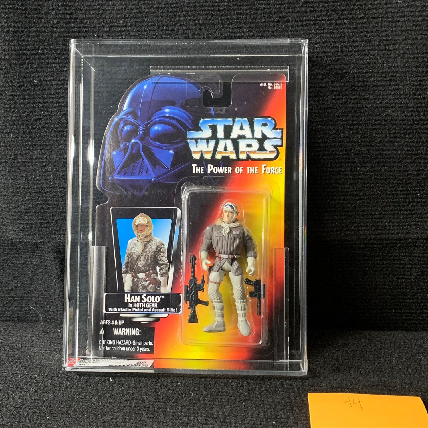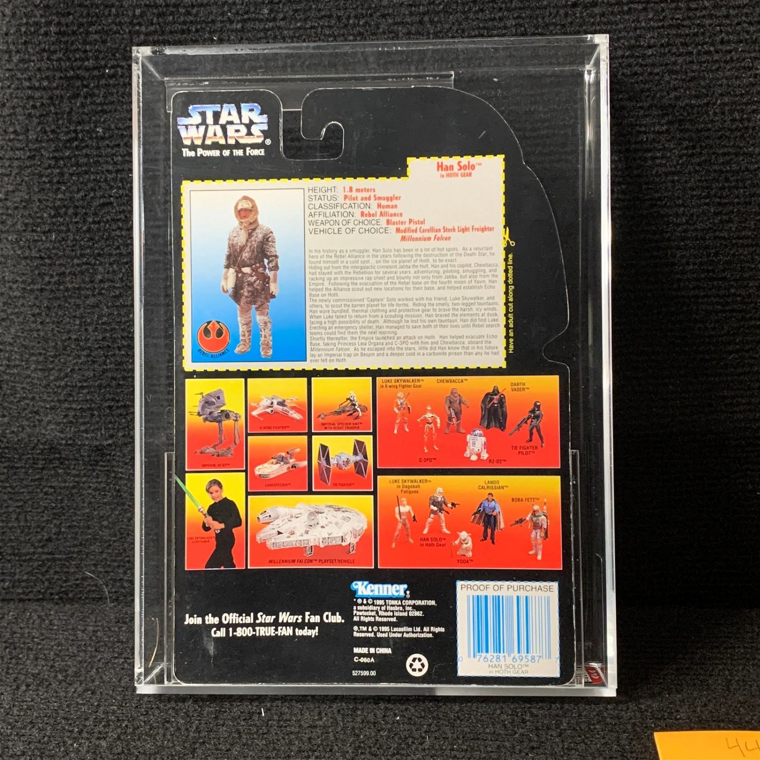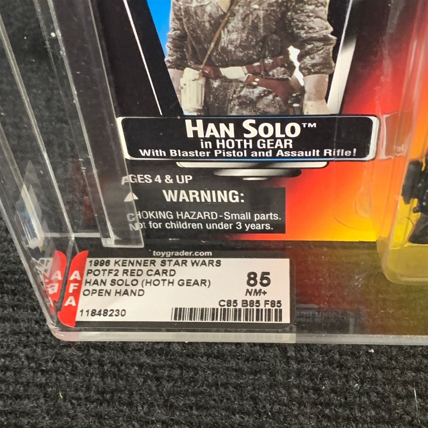 AFA 85 NM+ 1996 Han Solo in Hoth Gear Star Wars Action Figure. We are a veteran owned company. Please look at the pictures carefully to determine what you believe the condition of collecitible is. We are currently accepting consignments. Email us a [email protected] or visit our website, www.ahauctionhouse.com.