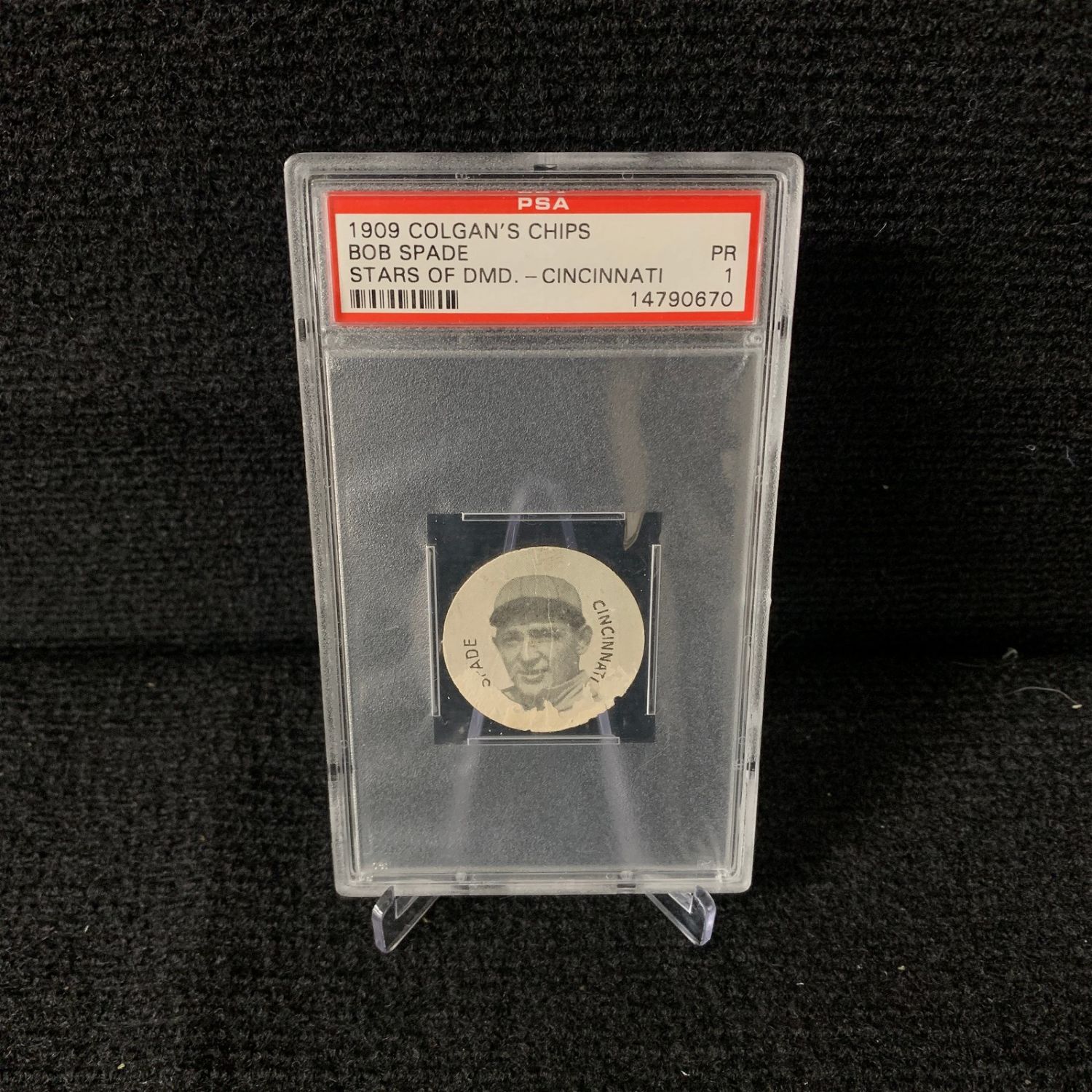 PSA 1 PR Bob Spade 1909 Colgan’s Chips Stars of the Diamond Baseball chip. We are a veteran owned company. Please look at the pictures carefully to determine what you believe the condition of collecitible is. We are currently accepting consignments. Email us a [email protected] or visit our website, www.ahauctionhouse.com.