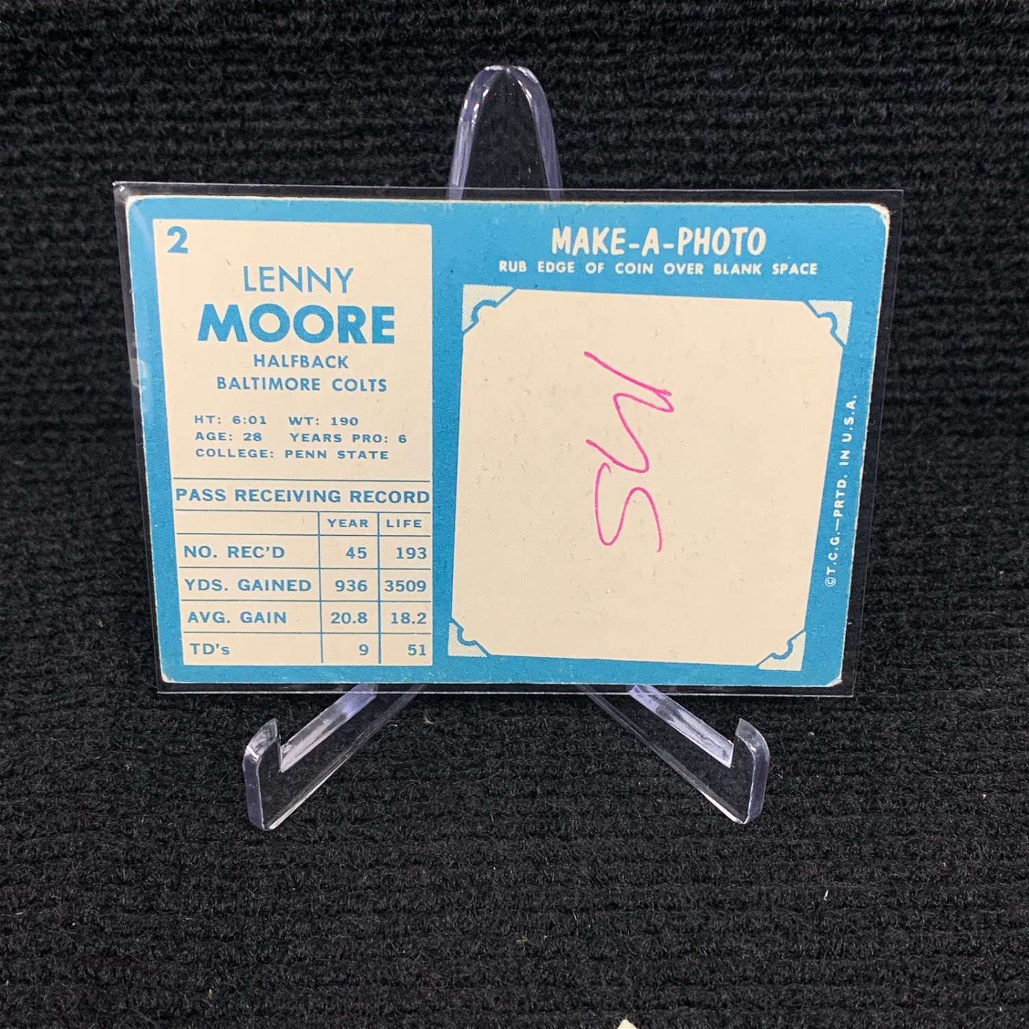 Leonard "Lenny" Moore #2 Topps 1961 Football Card. We are a veteran owned company. Please look at the pictures carefully to determine what you believe the condition of collecitible is. We are currently accepting consignments. Email us a [email protected] or visit our website, www.ahauctionhouse.com.