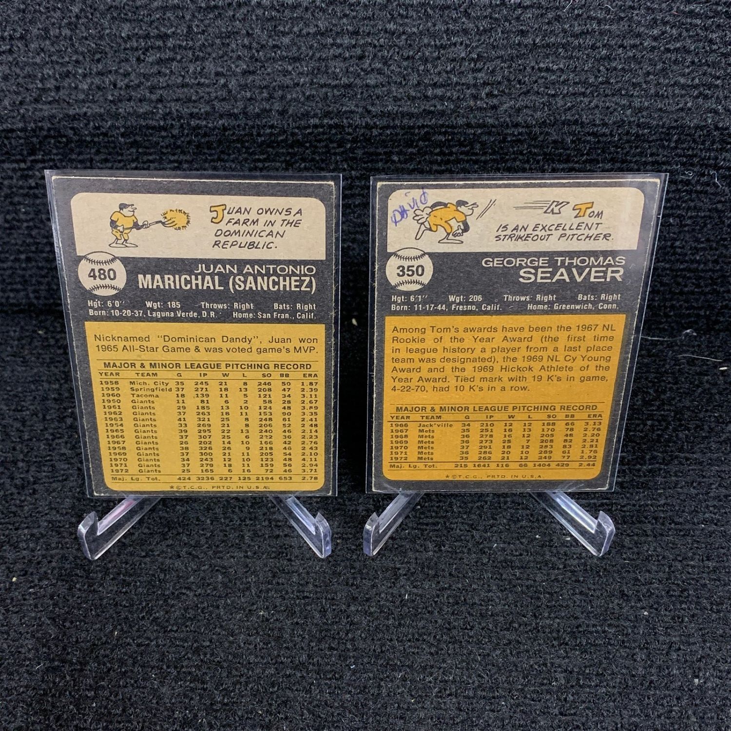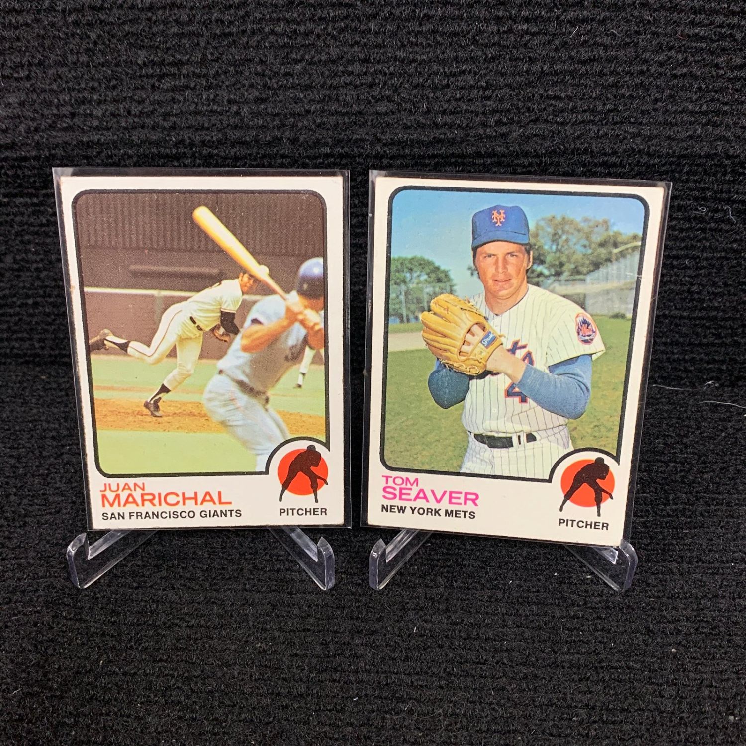 1973 Topps Baseball Cards. Juan Marichal #480 and Tom Seaver #350. We are a veteran owned company. Please look at the pictures carefully to determine what you believe the condition of collecitible is. We are currently accepting consignments. Email us a [email protected] or visit our website, www.ahauctionhouse.com.