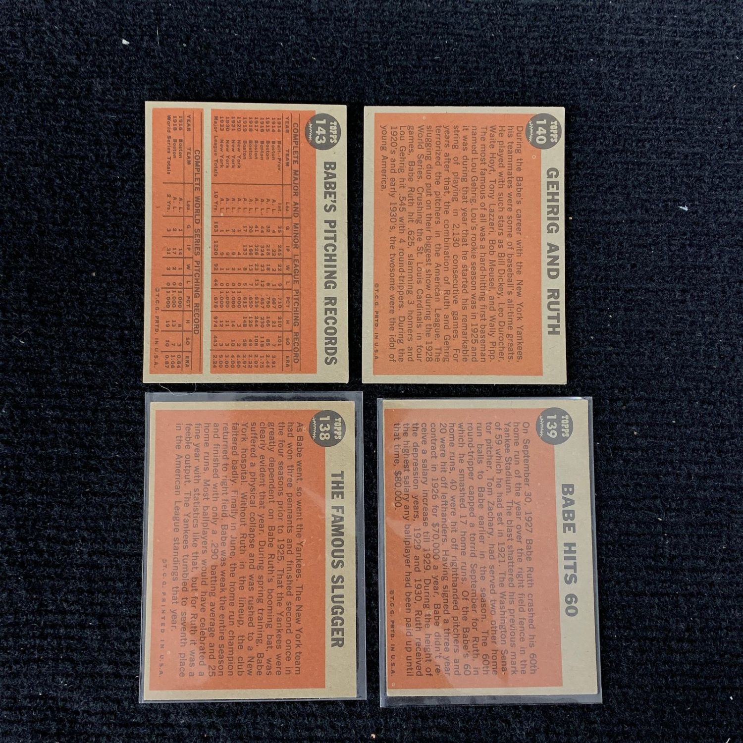 1962 Topps Babe Ruth Baseball Cards. #143, 140, 139, 138. We are a veteran owned company. Please look at the pictures carefully to determine what you believe the condition of collecitible is. We are currently accepting consignments. Email us a [email protected] or visit our website, www.ahauctionhouse.com.