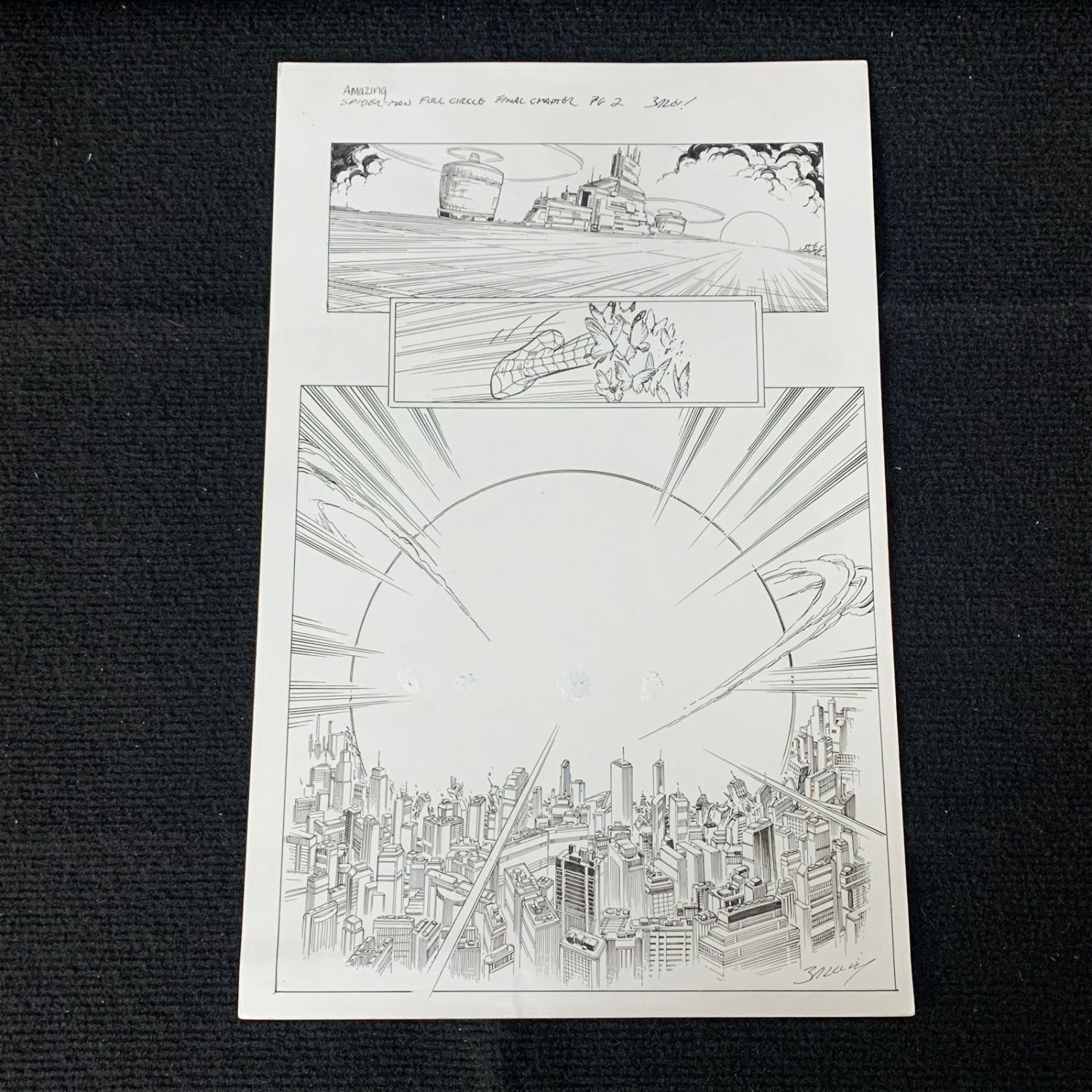 Amazing Spider-Man Full Circle Final Chapter Splash Page by Mark Bagley. Signed by Bagley. Includes COA from JSA. We are a veteran owned company. Please look at the pictures carefully to determine what you believe the condition of collecitible is. We are currently accepting consignments. Email us a [email protected] or visit our website, www.ahauctionhouse.com.