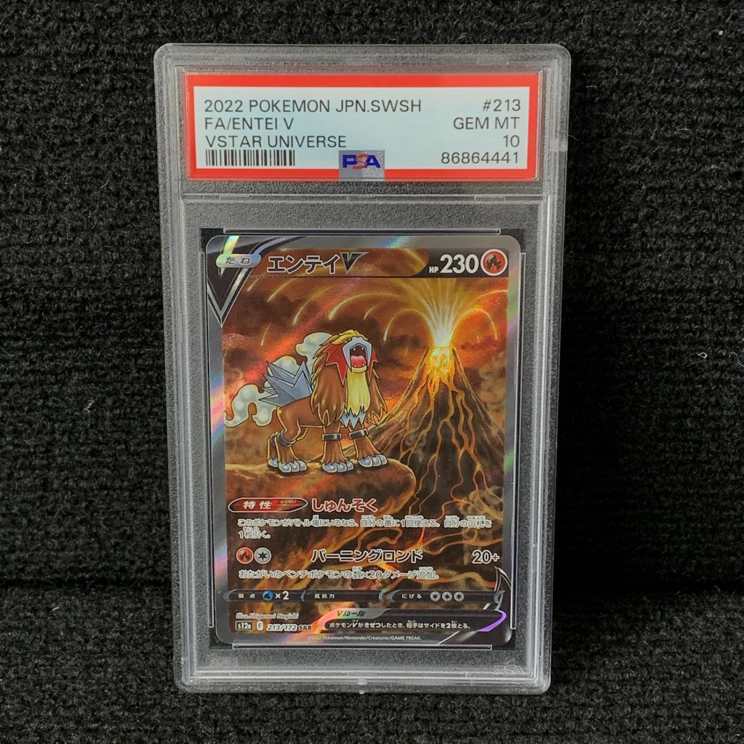 PSA 10 Gem Mint Entei V #213 Japanese Full Art SAR. VSTAR Universe. We are a veteran owned company. Please look at the pictures carefully to determine what you believe the condition of collecitible is. We are currently accepting consignments. Email us a [email protected] or visit our website, www.ahauctionhouse.com.