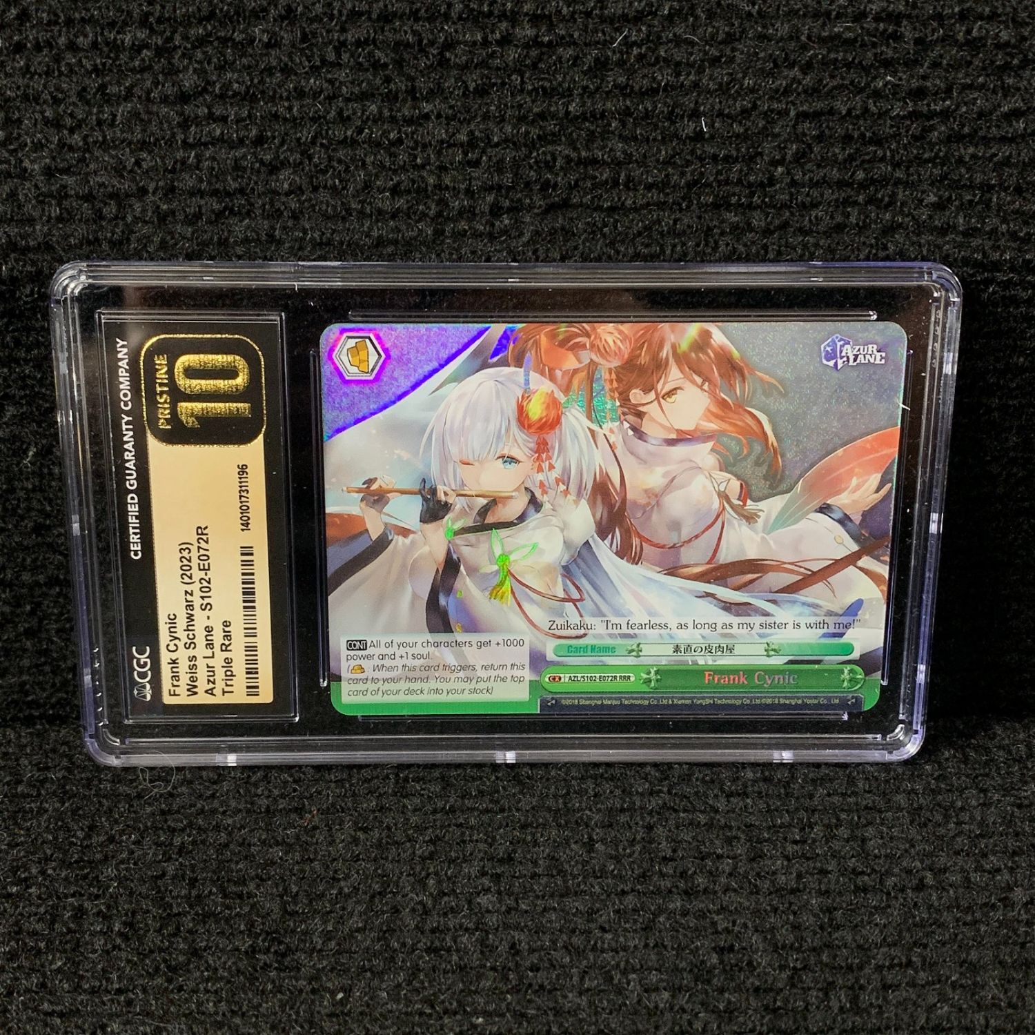 POP 2! CGC Pristine 10 Frank Cynic #S102-E072R Tripple Rare Azur Lane Weiss Schwarz Card. We are a veteran owned company. Please look at the pictures carefully to determine what you believe the condition of collecitible is. We are currently accepting consignments. Email us a [email protected] or visit our website, www.ahauctionhouse.com.