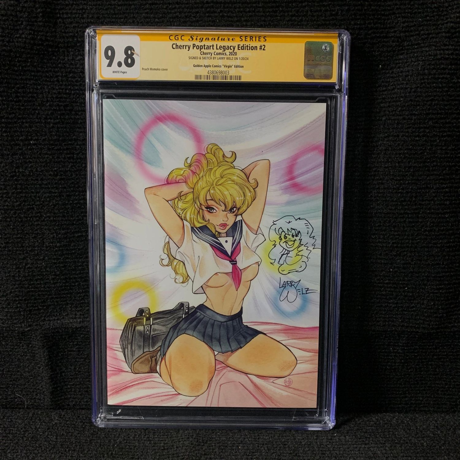 CGC 9.8 Cherry Poptart Legazy Edition #2 Signature Series. Signed and Sketch by Larry Welz. Golden Apple Comics Virgin Edition. Peach Momoko Cover. We are a veteran owned company. Please look at the pictures carefully to determine what you believe the condition of collecitible is. We are currently accepting consignments. Email us a [email protected] or visit our website, www.ahauctionhouse.com.