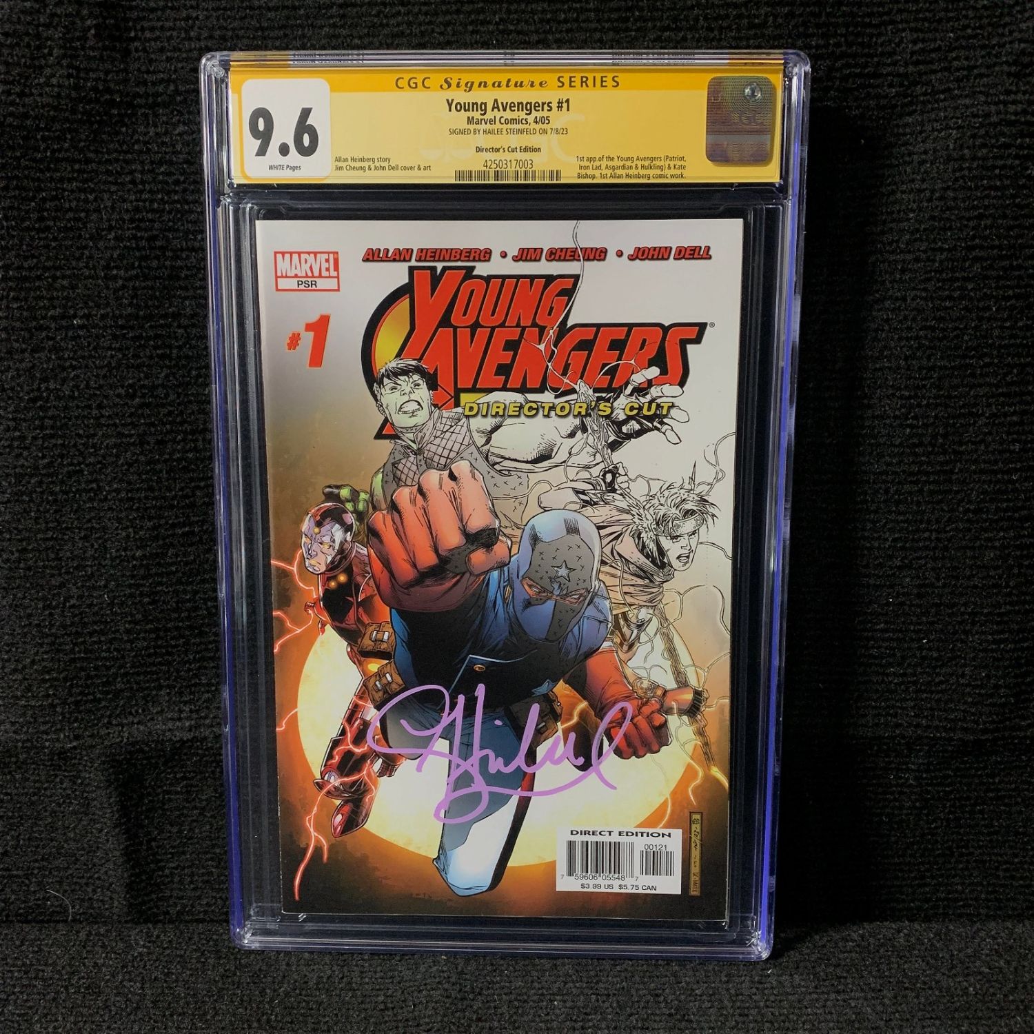 CGC 9.8 Young avengers #1 Signature Series. Signed by Hailee Steinfeld. Directors Cut Edition. 1st App of the Young Avengers. & Kate Bishop. We are a veteran owned company. Please look at the pictures carefully to determine what you believe the condition of collecitible is. We are currently accepting consignments. Email us a [email protected] or visit our website, www.ahauctionhouse.com.
