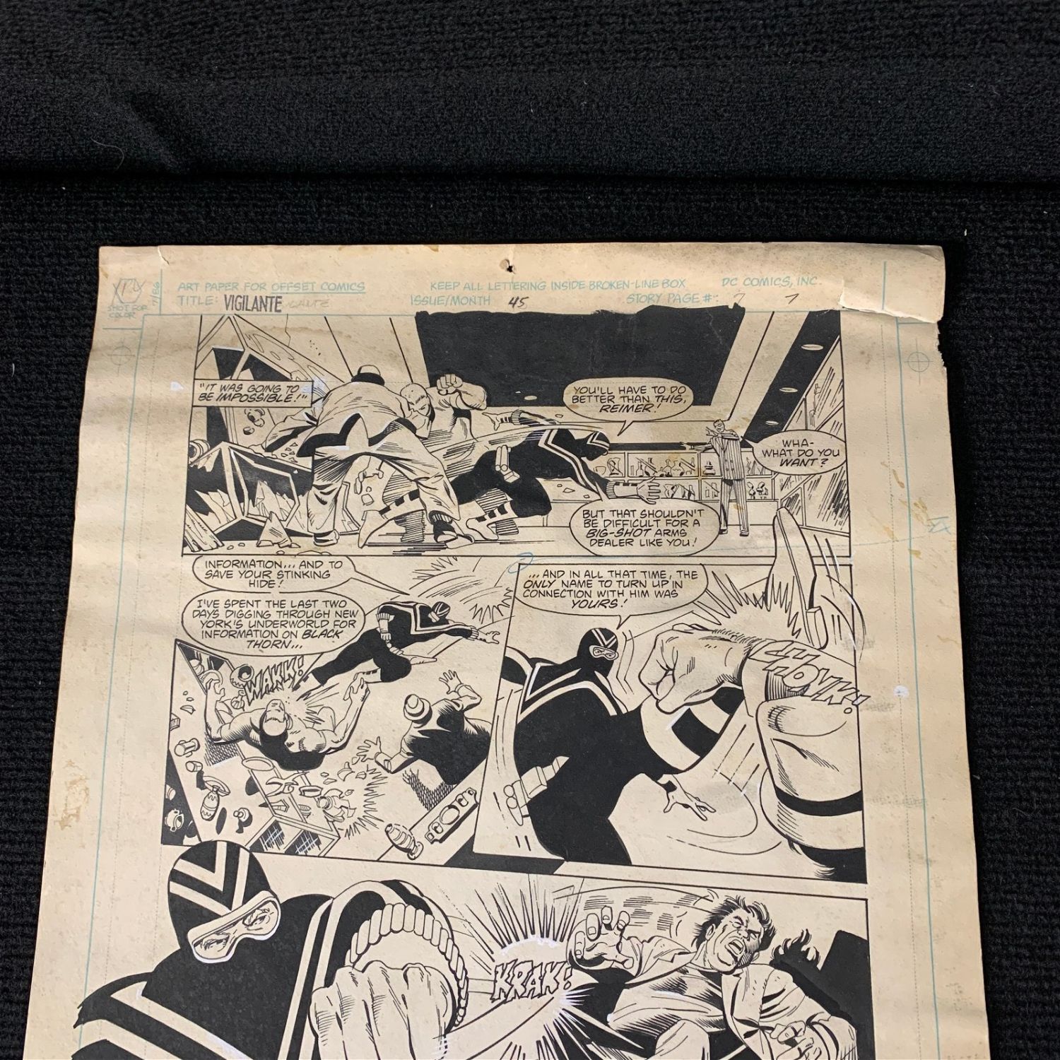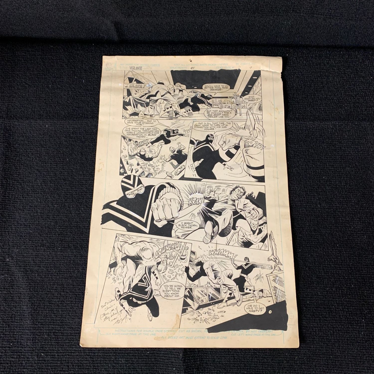 Vigilante #45 Original Comic Pannels. Signed by Tod Smith. We are a veteran owned company. Please look at the pictures carefully to determine what you believe the condition of collecitible is. We are currently accepting consignments. Email us a [email protected] or visit our website, www.ahauctionhouse.com.