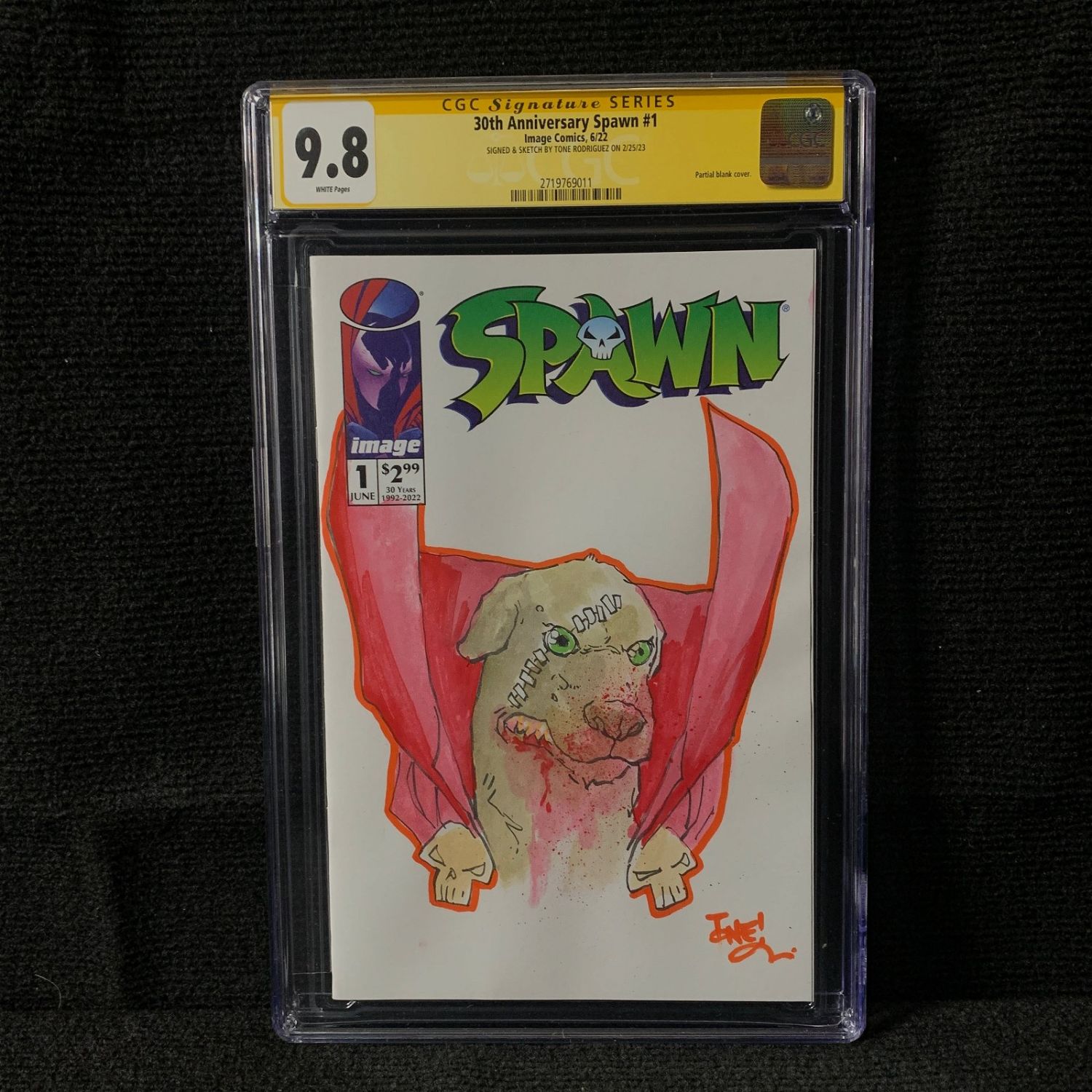 CGC 9.8 30th Anniversary Spawn #1 Signature Series. Signed and Sketch by Tone Rodriguez. We are a veteran owned company. Please look at the pictures carefully to determine what you believe the condition of collecitible is. We are currently accepting consignments. Email us a [email protected] or visit our website, www.ahauctionhouse.com.