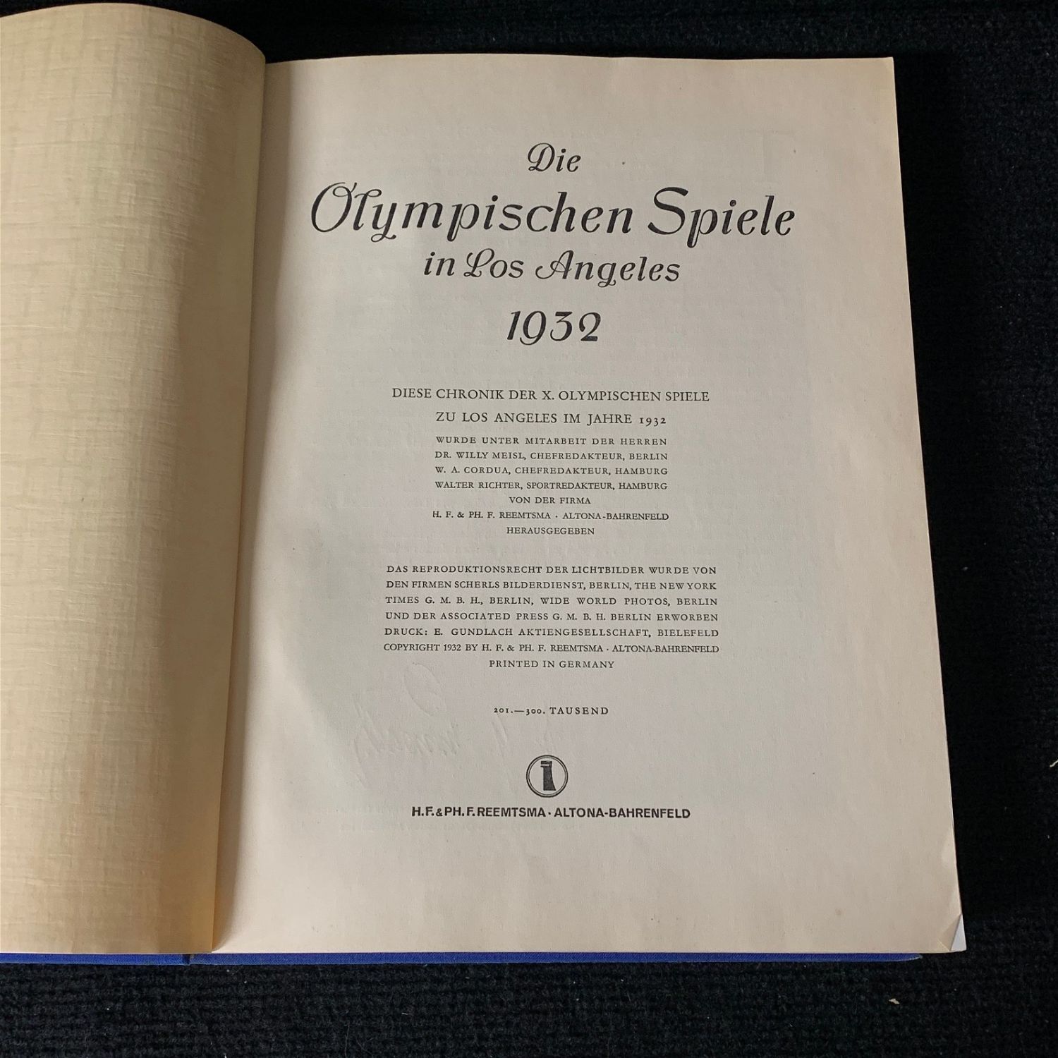 RARE 1932 LA Olympics German Program. Includes colored and black and white Photos. Photos are individually glued into the book. We are a veteran owned company. Please look at the pictures carefully to determine what you believe the condition of collecitible is. We are currently accepting consignments. Email us a [email protected] or visit our website, www.ahauctionhouse.com.