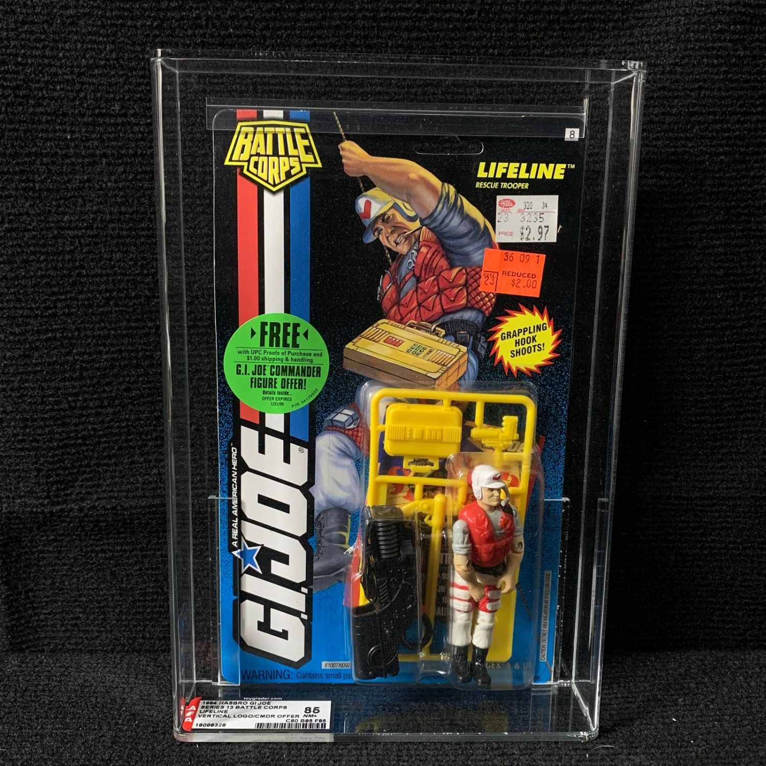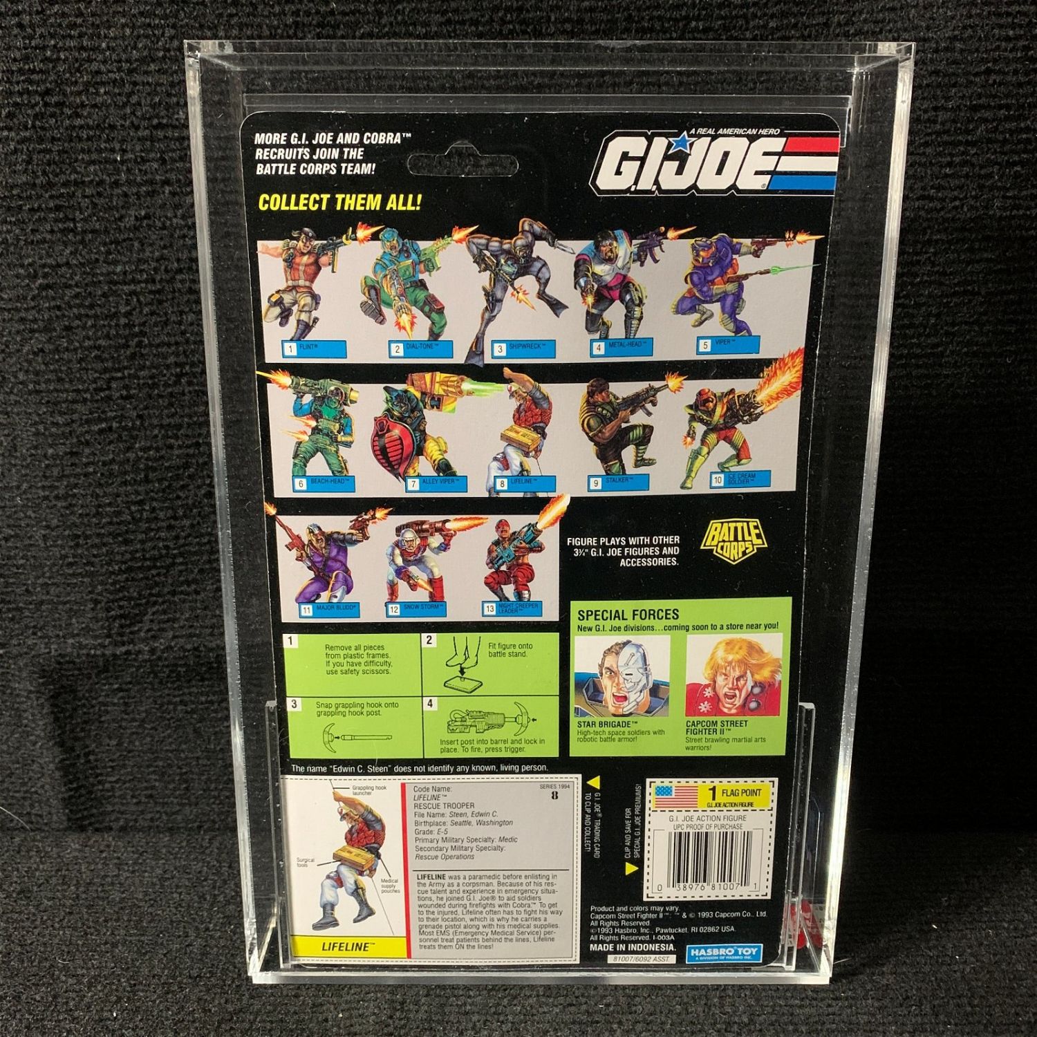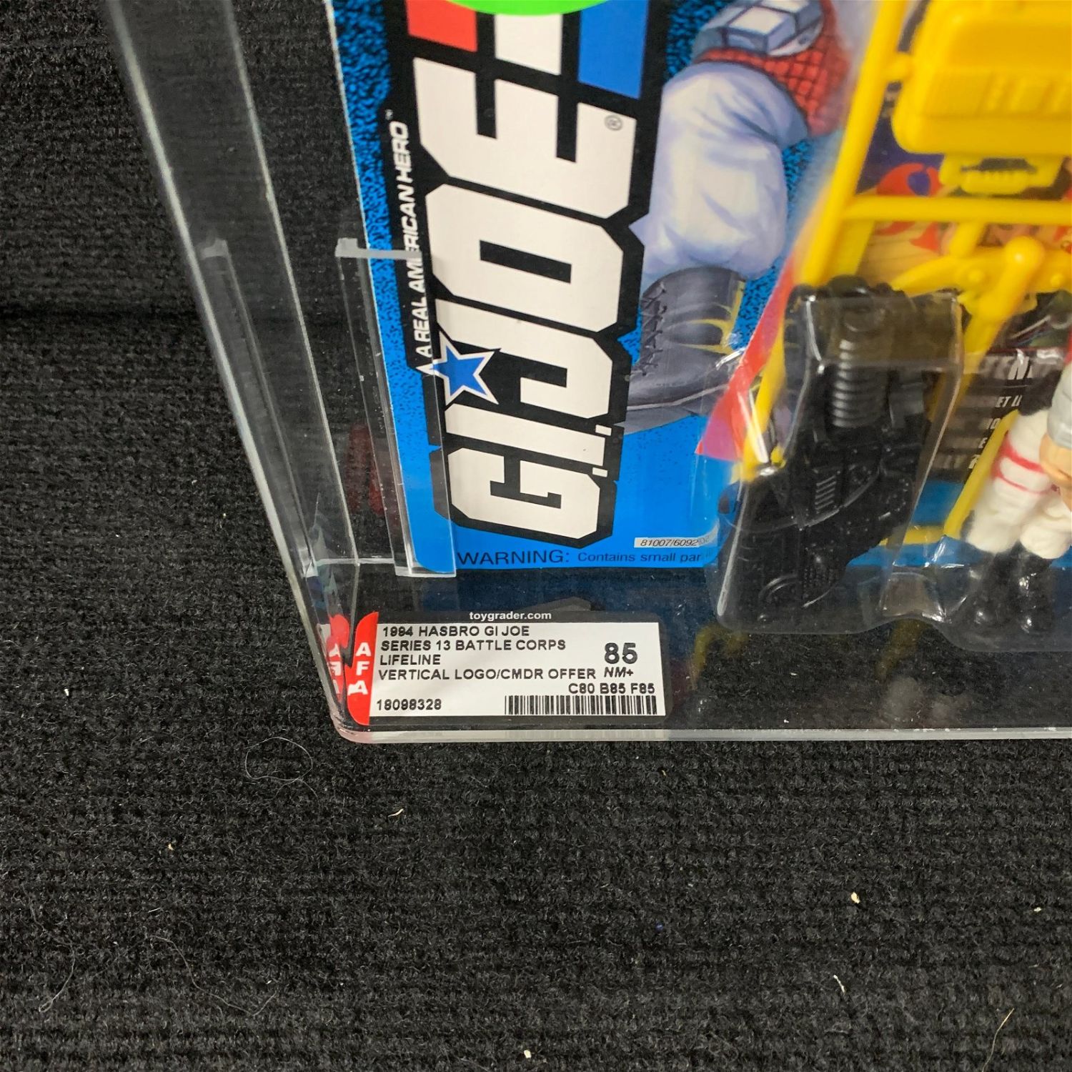 Graded 1994 Hasbro GI Joe "Lifeline" Series 13 Battle Corps "Lifeline" Vertical Logo Variation in original packaging. AFA 85 NM+. We are a veteran owned company. Please look at the pictures carefully to determine what you believe the condition of collecitible is. We are currently accepting consignments. Email us a [email protected] or visit our website, www.ahauctionhouse.com.