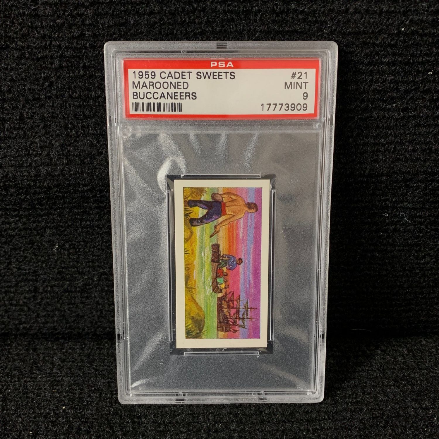 PSA 9 Mint Marooned #21 Cadet Sweets Buccaneers 1959 Card. POP 21! We are a veteran owned company. Please look at the pictures carefully to determine what you believe the condition of collecitible is. We are currently accepting consignments. Email us a [email protected] or visit our website, www.ahauctionhouse.com.