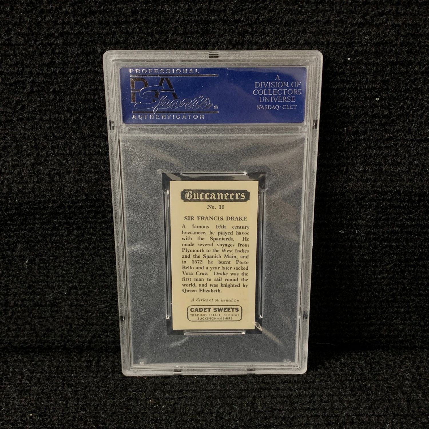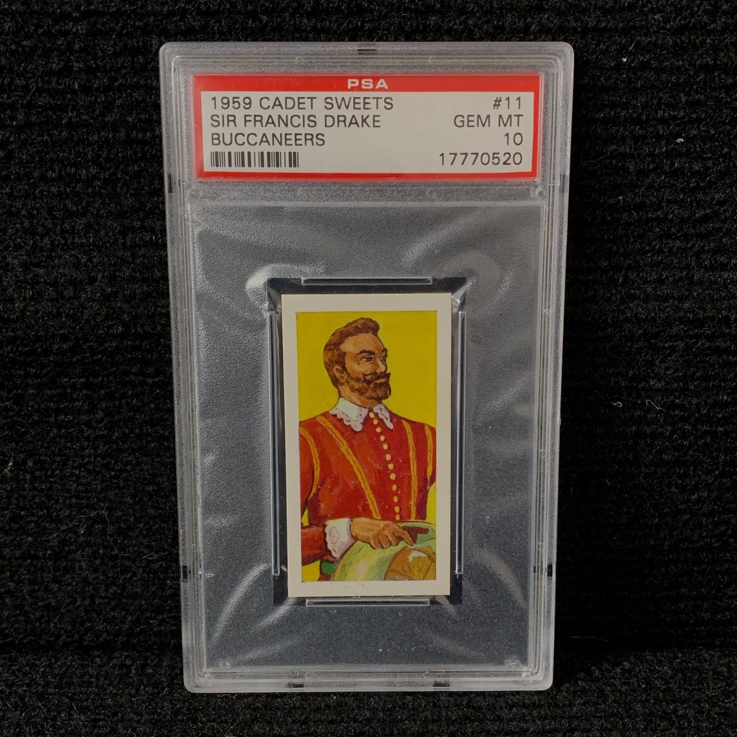 PSA 10 Gem Mint Sir Francis Drake #11 Cadet Sweets Buccaneers 1959 Card. POP 17! We are a veteran owned company. Please look at the pictures carefully to determine what you believe the condition of collecitible is. We are currently accepting consignments. Email us a [email protected] or visit our website, www.ahauctionhouse.com.