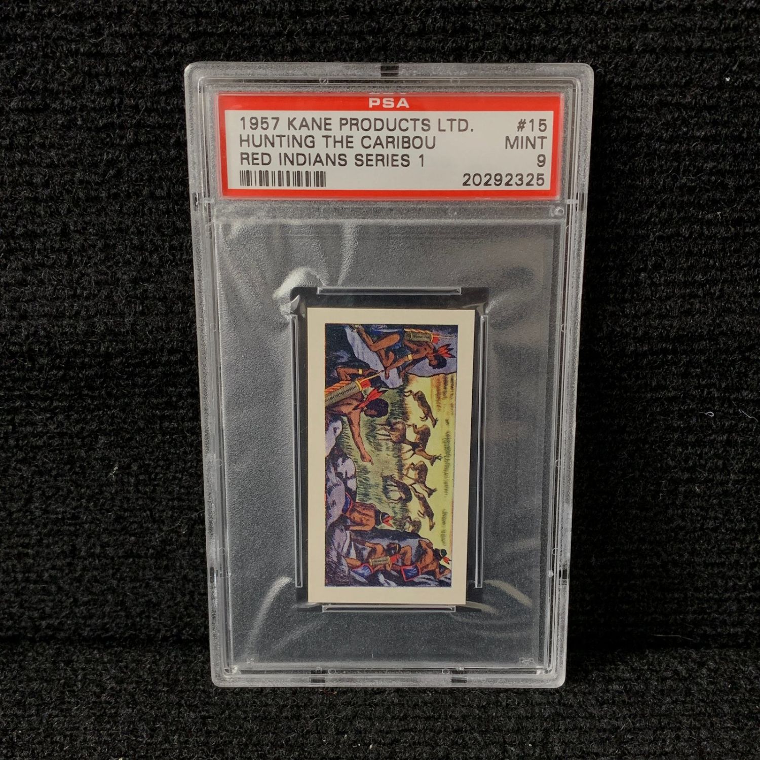 PSA 9 Mint Hunting the Red Caribou #15 Red Indians Series 1 Kane Products 1957 card. POP 5! We are a veteran owned company. Please look at the pictures carefully to determine what you believe the condition of collecitible is. We are currently accepting consignments. Email us a [email protected] or visit our website, www.ahauctionhouse.com.