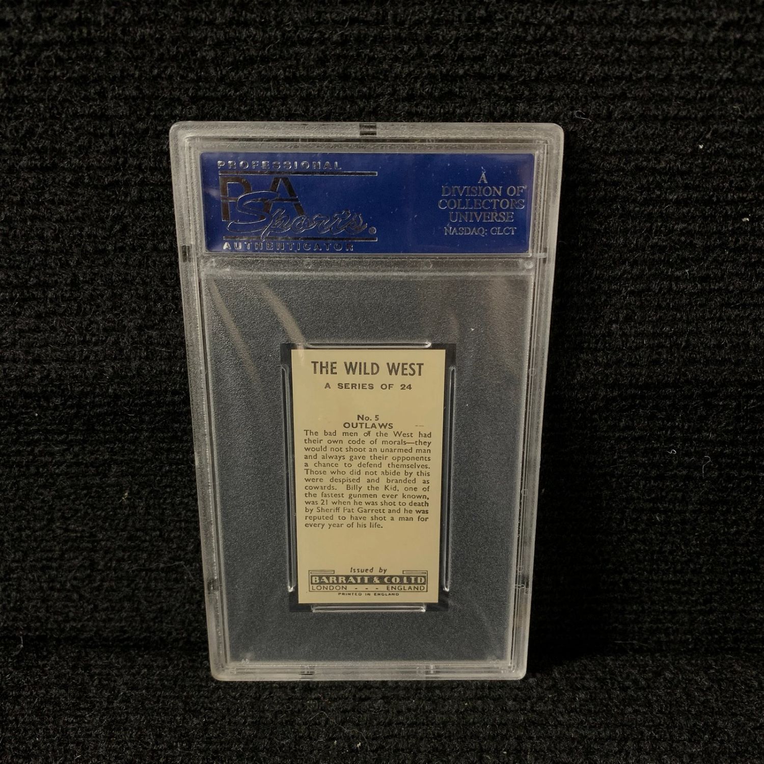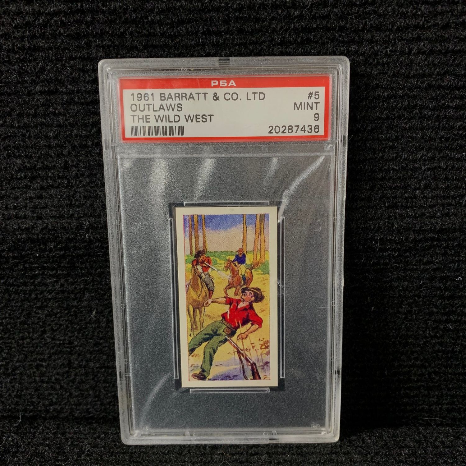 PSA 9 Outlaws #5 The Wild West Set. By Barratt & Co. 1961. POP 2. We are a veteran owned company. Please look at the pictures carefully to determine what you believe the condition of collecitible is. We are currently accepting consignments. Email us a [email protected] or visit our website, www.ahauctionhouse.com.