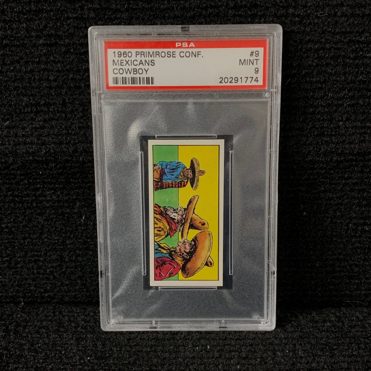 PSA 9 Mexicans #9 Cowboy Card. 1960 Primrose Confectionery POP 4 We are a veteran owned company. Please look at the pictures carefully to determine what you believe the condition of collecitible is. We are currently accepting consignments. Email us a [email protected] or visit our website, www.ahauctionhouse.com.