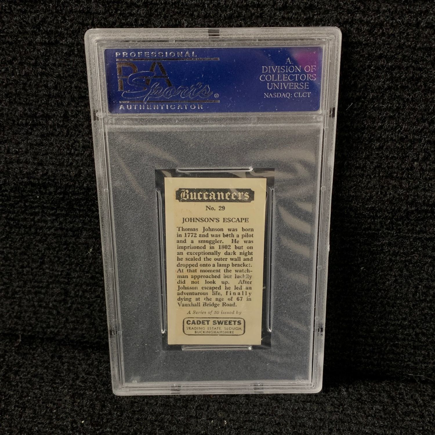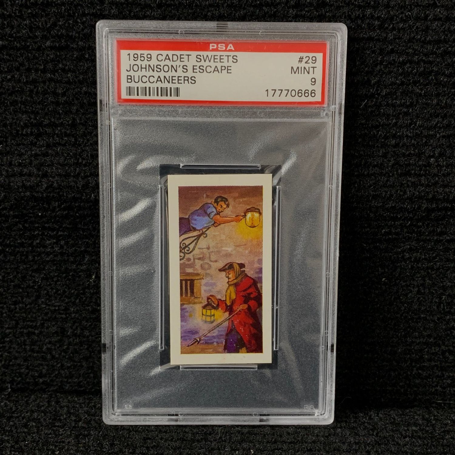 PSA 9 Johnson’s Escape #29 Buccaneers Card. 1959 Cadet Sweets. We are a veteran owned company. Please look at the pictures carefully to determine what you believe the condition of collecitible is. We are currently accepting consignments. Email us a [email protected] or visit our website, www.ahauctionhouse.com.