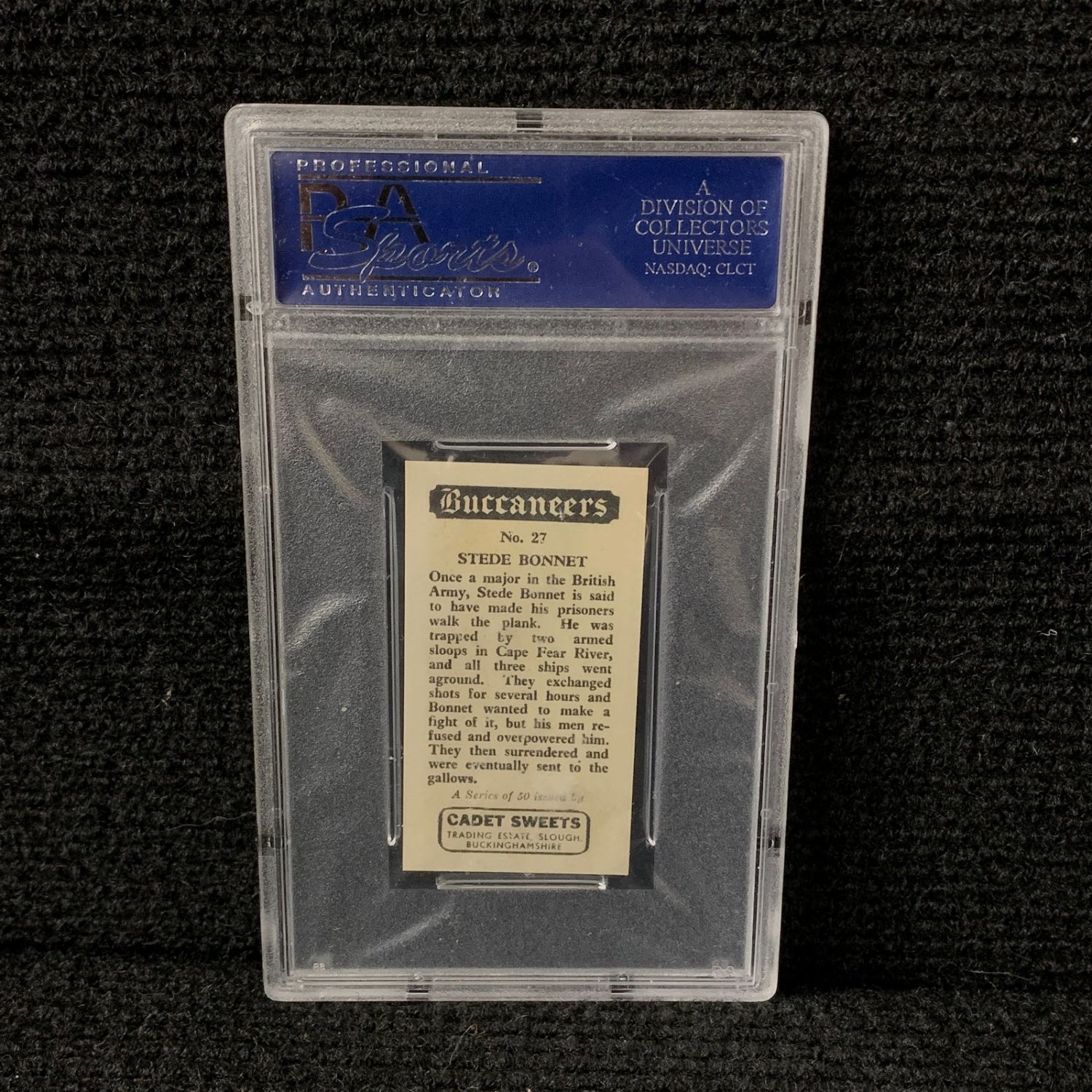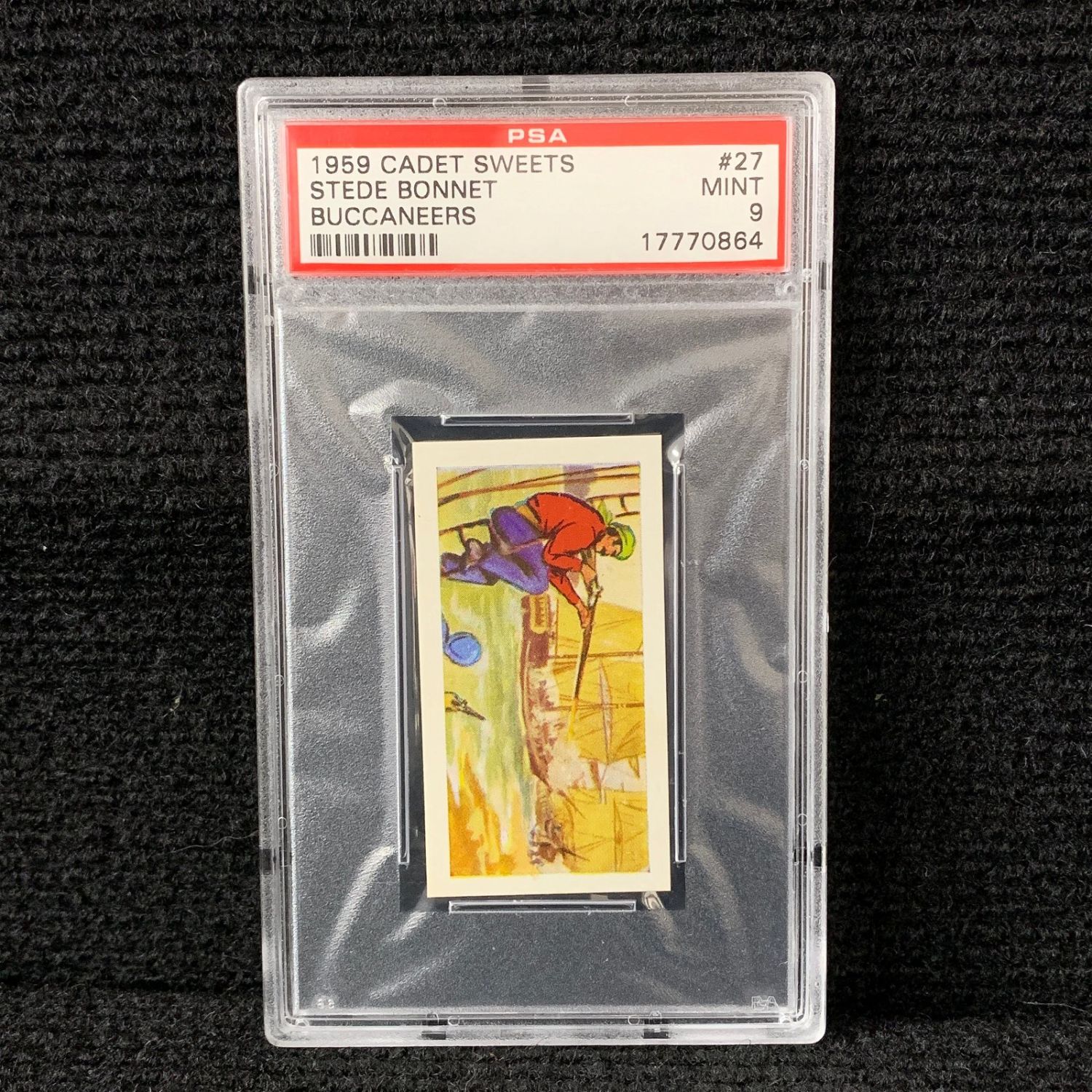 PSA 9 Stede Bonnet #27 Buccaneers Card. 1959 Cadet Sweets We are a veteran owned company. Please look at the pictures carefully to determine what you believe the condition of collecitible is. We are currently accepting consignments. Email us a [email protected] or visit our website, www.ahauctionhouse.com.