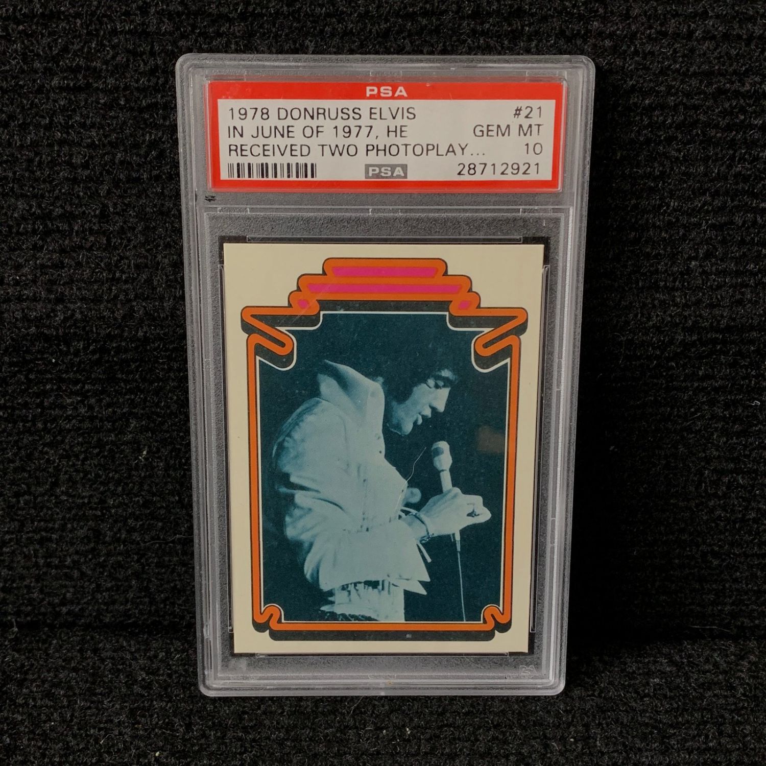 PSA 10 Gem Mint 1978 Donruss Elvis Card. In June of 1977, he recieved… #21. POP 22!!! We are a veteran owned company. Please look at the pictures carefully to determine what you believe the condition of collecitible is. We are currently accepting consignments. Email us a [email protected] or visit our website, www.ahauctionhouse.com.