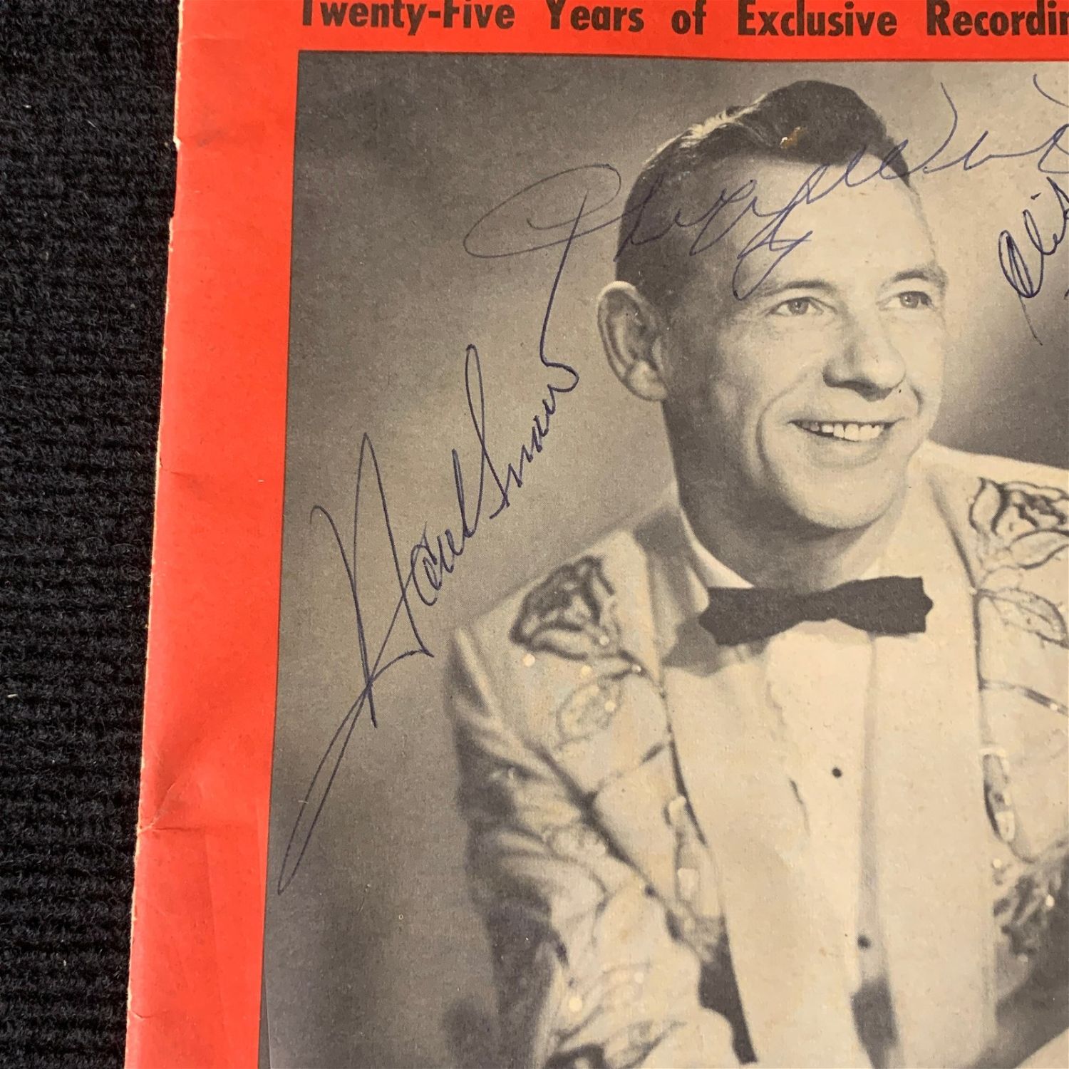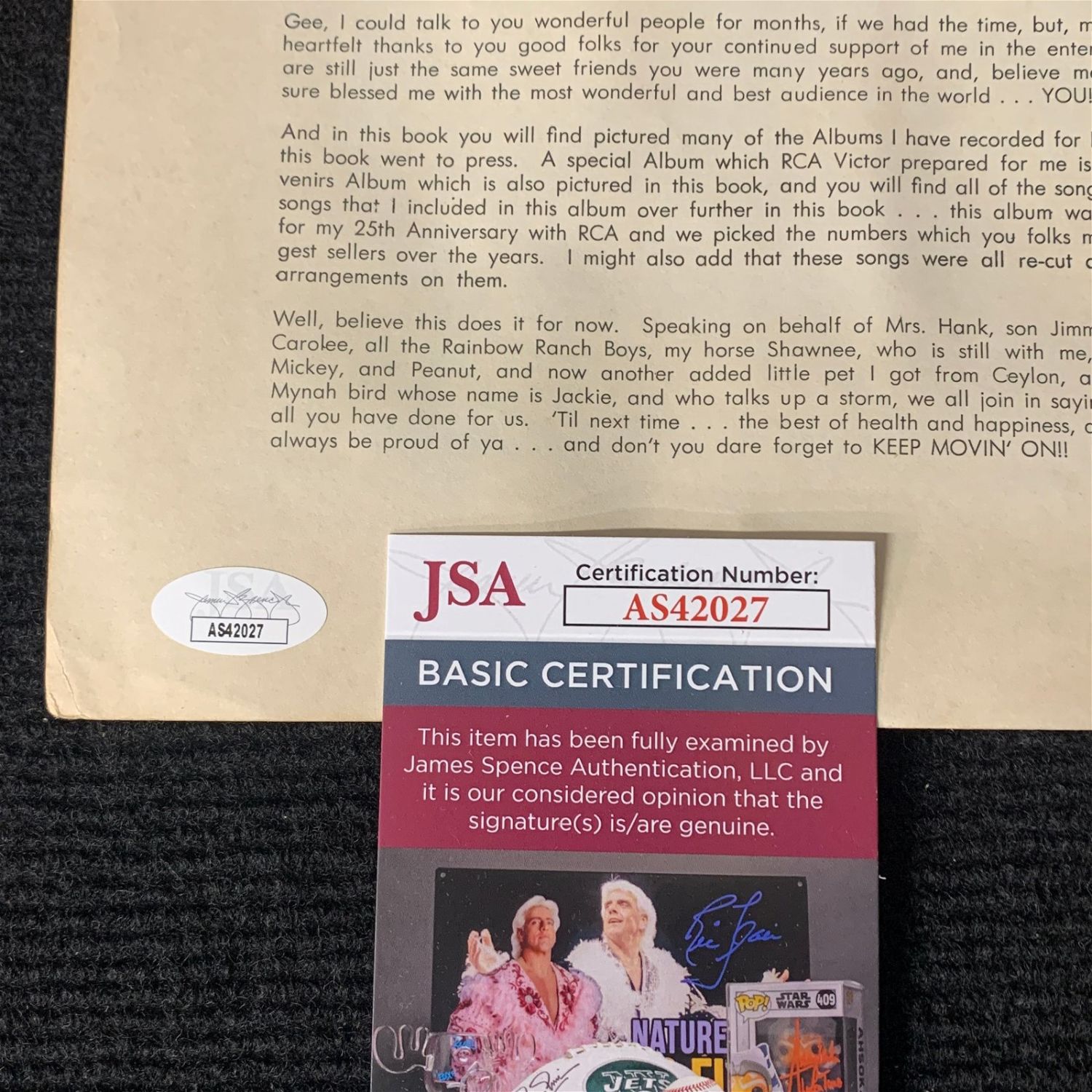 The Hank Snow 25th Anniversary Album Multi Signed Program. Signed by Snow, Cliff Rodgers and Hank Williams. COA from JSA for Hank Snow Only. Winning bidder can submit for other signature authentication as the Hank Williams looks legible enough to possibly get authenticated. We are a veteran owned company. Please look at the pictures carefully to determine what you believe the condition of collecitible is. We are currently accepting consignments. Email us a [email protected] or visit our website, www.ahauctionhouse.com.