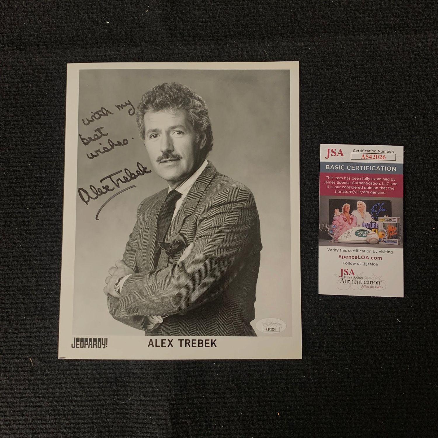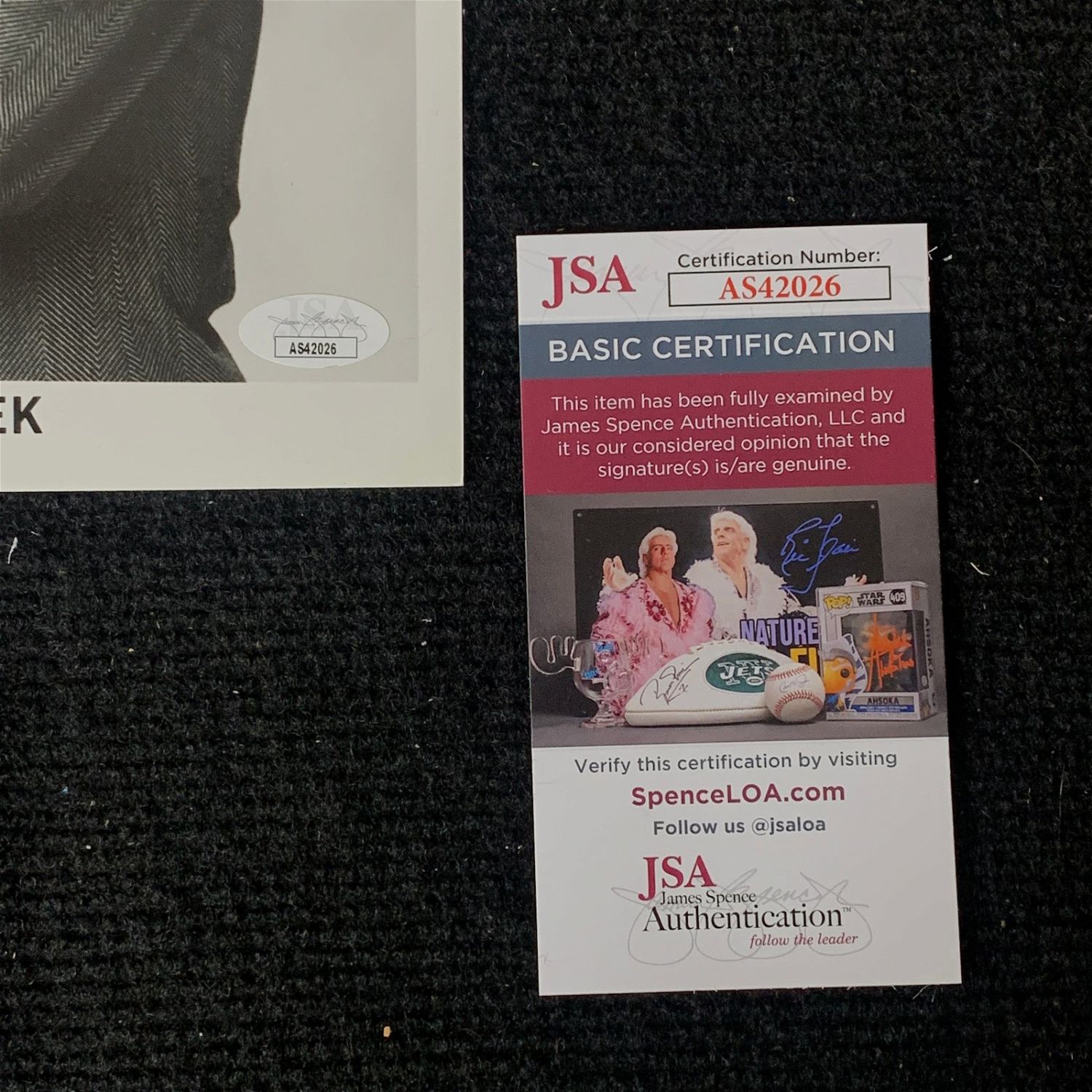 Signed Photo of and by Alex Trebek. COA from JSA. We are a veteran owned company. Please look at the pictures carefully to determine what you believe the condition of collecitible is. We are currently accepting consignments. Email us a [email protected] or visit our website, www.ahauctionhouse.com.