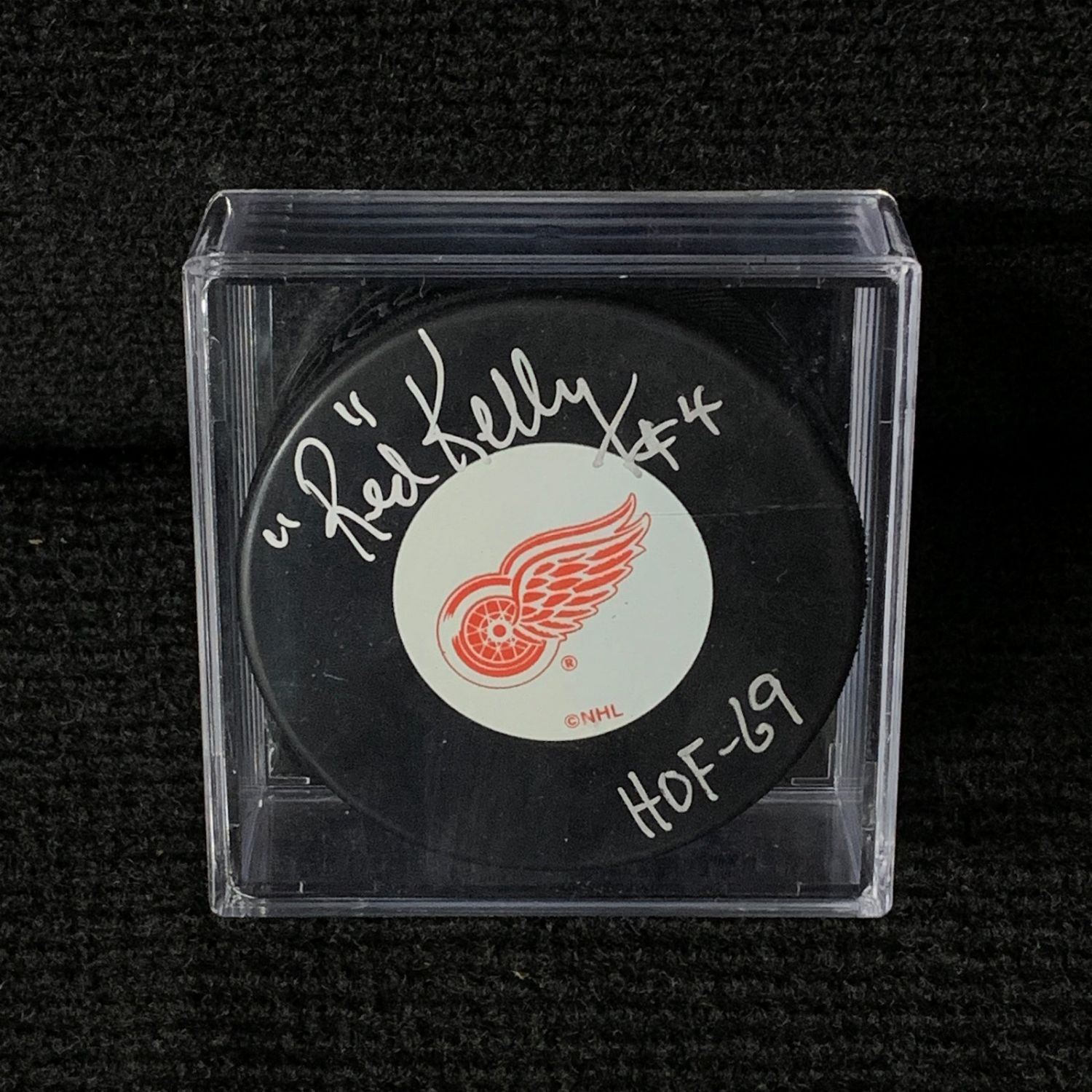 Signed Detroit Red Wings Hockey Puck. Signed by Red Kelly HOF 1969. COA from JSA. We are a veteran owned company. Please look at the pictures carefully to determine what you believe the condition of collecitible is. We are currently accepting consignments. Email us a [email protected] or visit our website, www.ahauctionhouse.com.