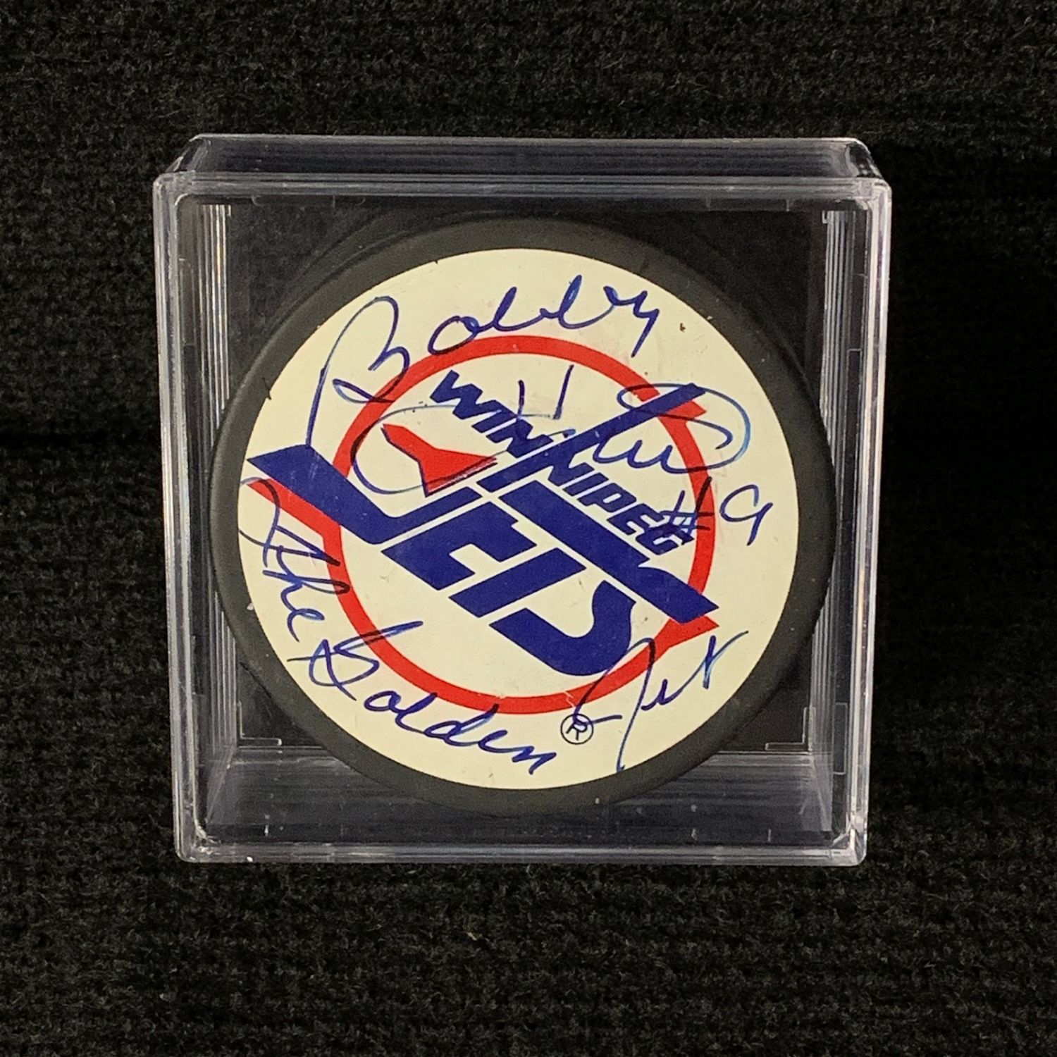 Signed with "The Golden Jet" Winnipeg Jets Signed Hockey Puck. Signed by Bobby Hull. COA from JSA. Detroit Red Wings Signed Hockey Puck. Signed by Gordie Howe. COA from JSA. We are a veteran owned company. Please look at the pictures carefully to determine what you believe the condition of collecitible is. We are currently accepting consignments. Email us a [email protected] or visit our website, www.ahauctionhouse.com.