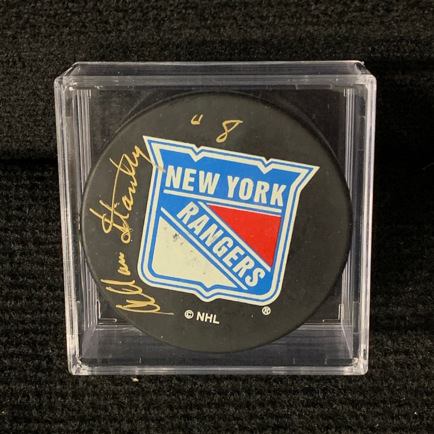 New York Rangers Signed Hockey Puck. Signed by Allen Stanley. Includes COA from JSA. We are a veteran owned company. Please look at the pictures carefully to determine what you believe the condition of collecitible is. We are currently accepting consignments. Email us a [email protected] or visit our website, www.ahauctionhouse.com.