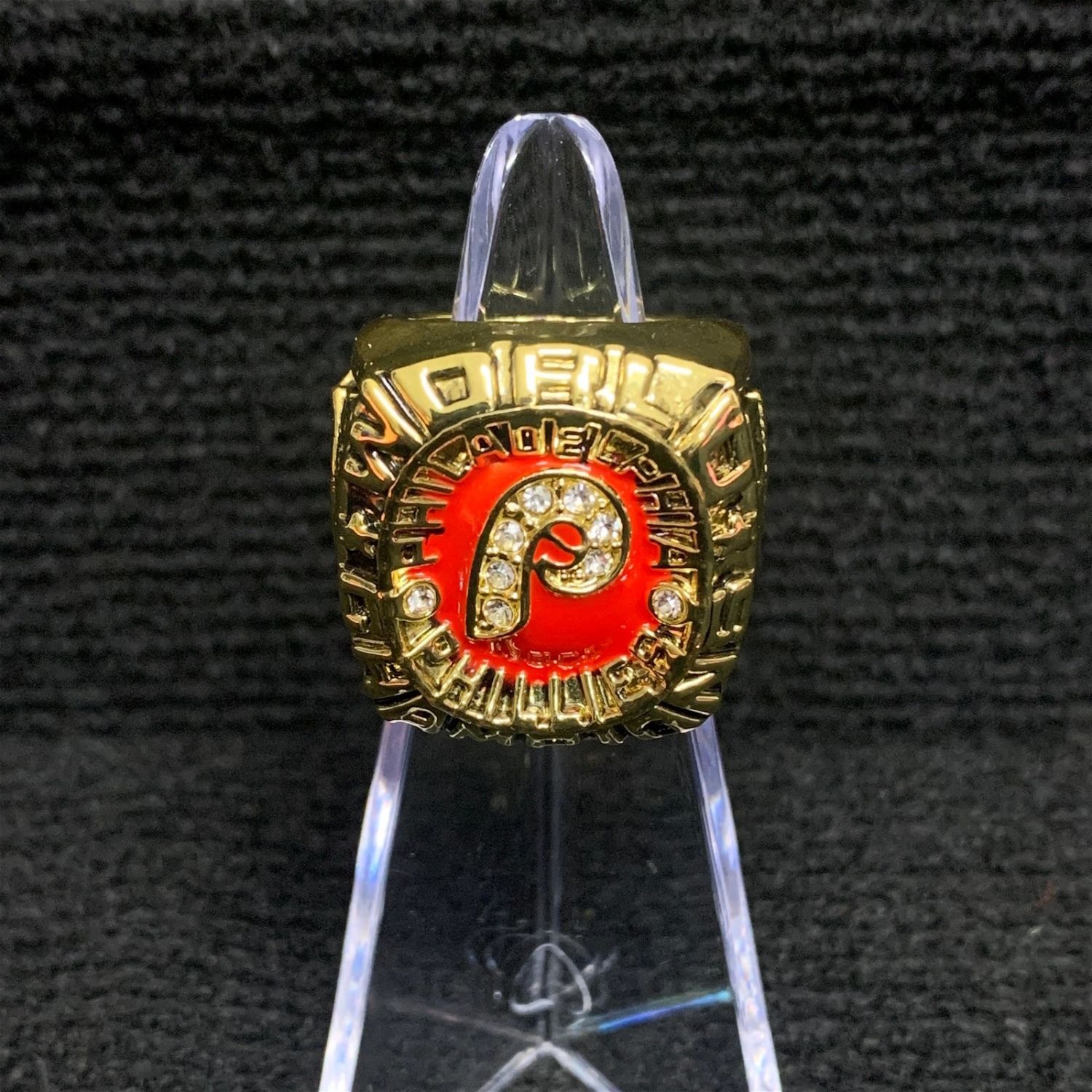 1980 Phillies World Series Replica Champion Ring. Mike Schmidt. We are a veteran owned company. Please look at the pictures carefully to determine what you believe the condition of collecitible is. We are currently accepting consignments. Email us a [email protected] or visit our website, www.ahauctionhouse.com.