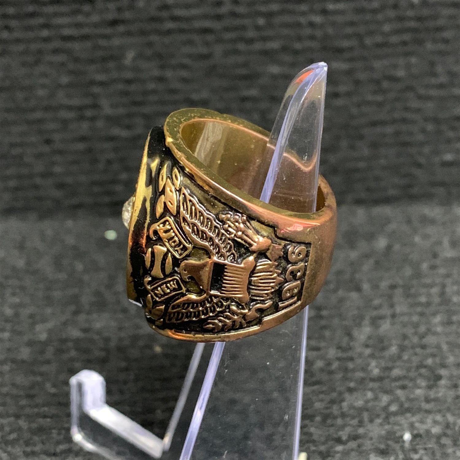 1936 New York Yankees World Champions Replica Baseball Ring. We are a veteran owned company. Please look at the pictures carefully to determine what you believe the condition of collecitible is. We are currently accepting consignments. Email us a [email protected] or visit our website, www.ahauctionhouse.com.