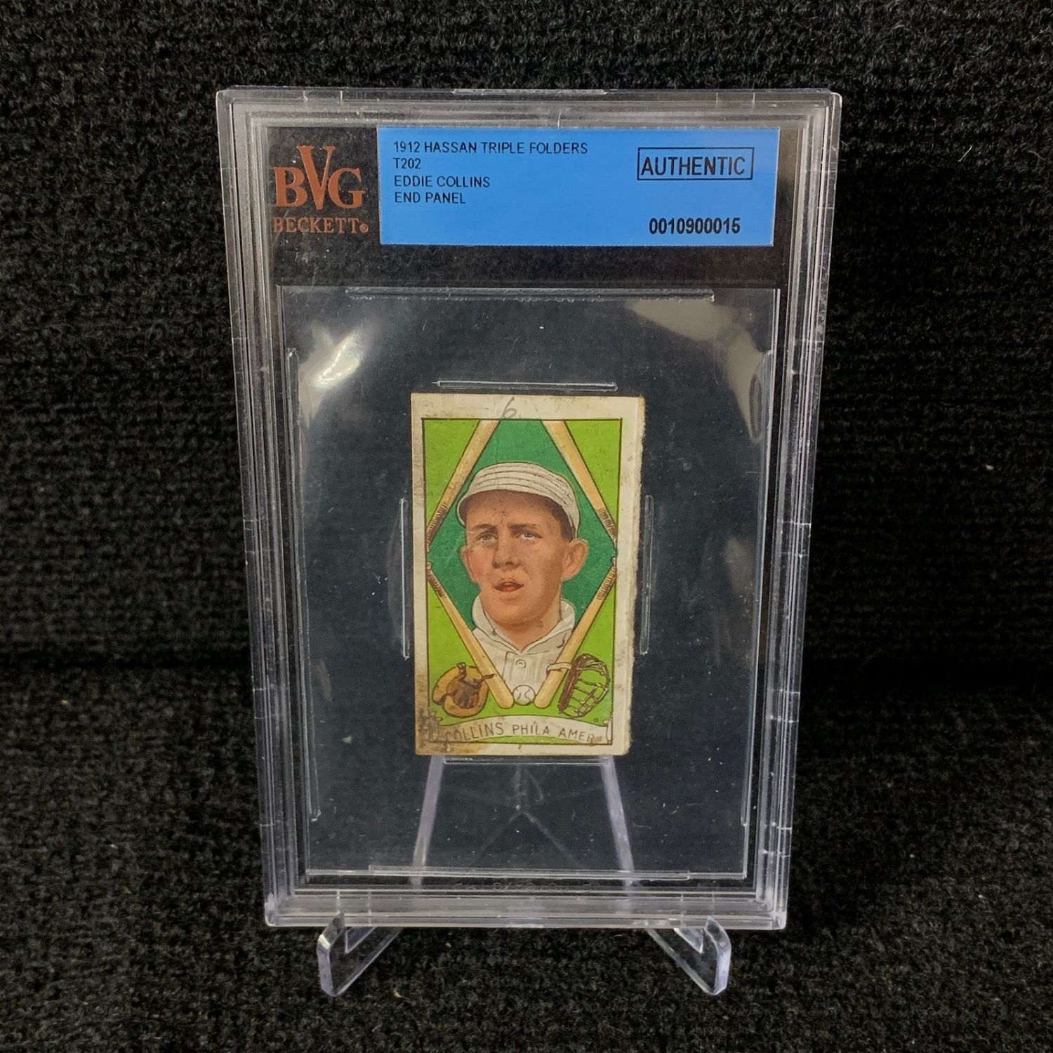 Beckett Authentic Eddie Collins T202 Hassan Triple Folders End Panel Baseball Card. We are a veteran owned company. Please look at the pictures carefully to determine what you believe the condition of collecitible is. We are currently accepting consignments. Email us a [email protected] or visit our website, www.ahauctionhouse.com.