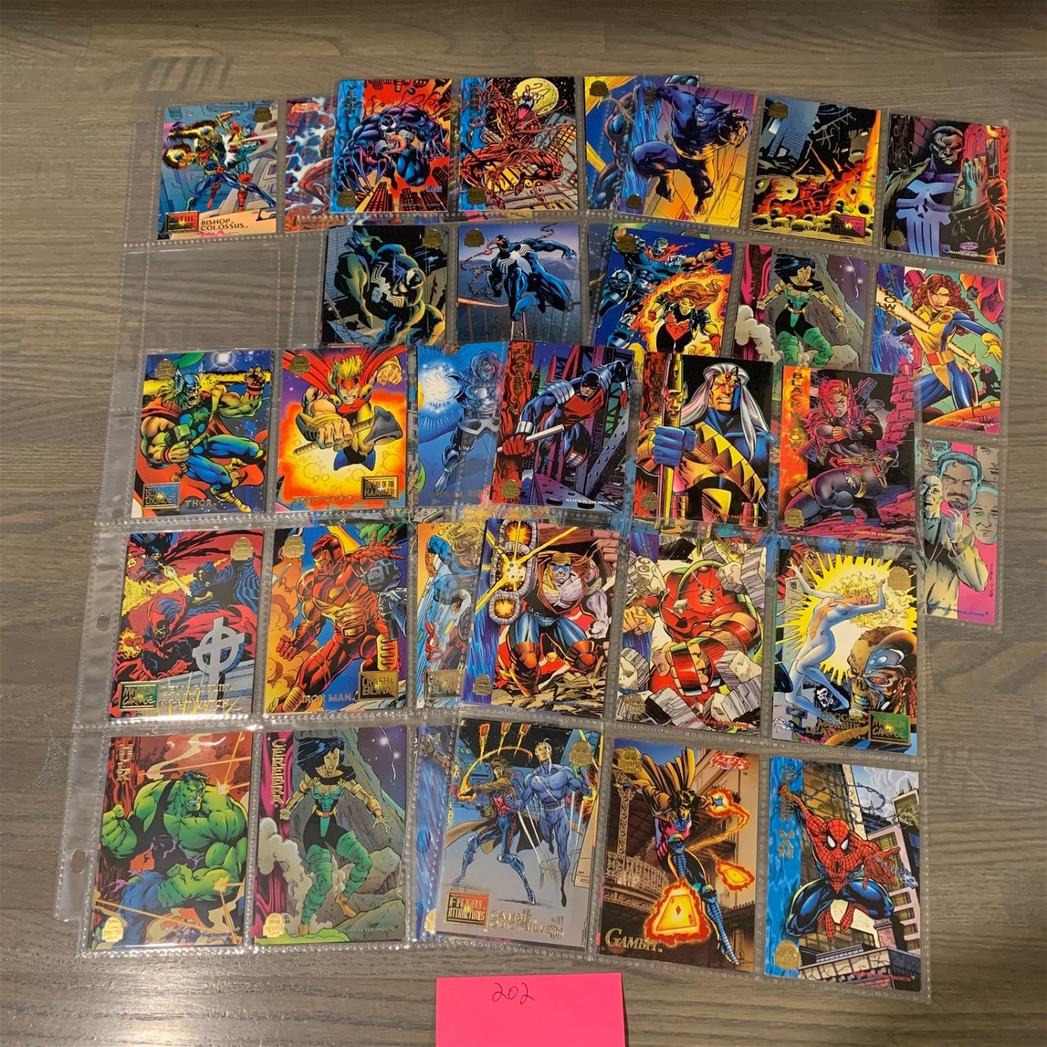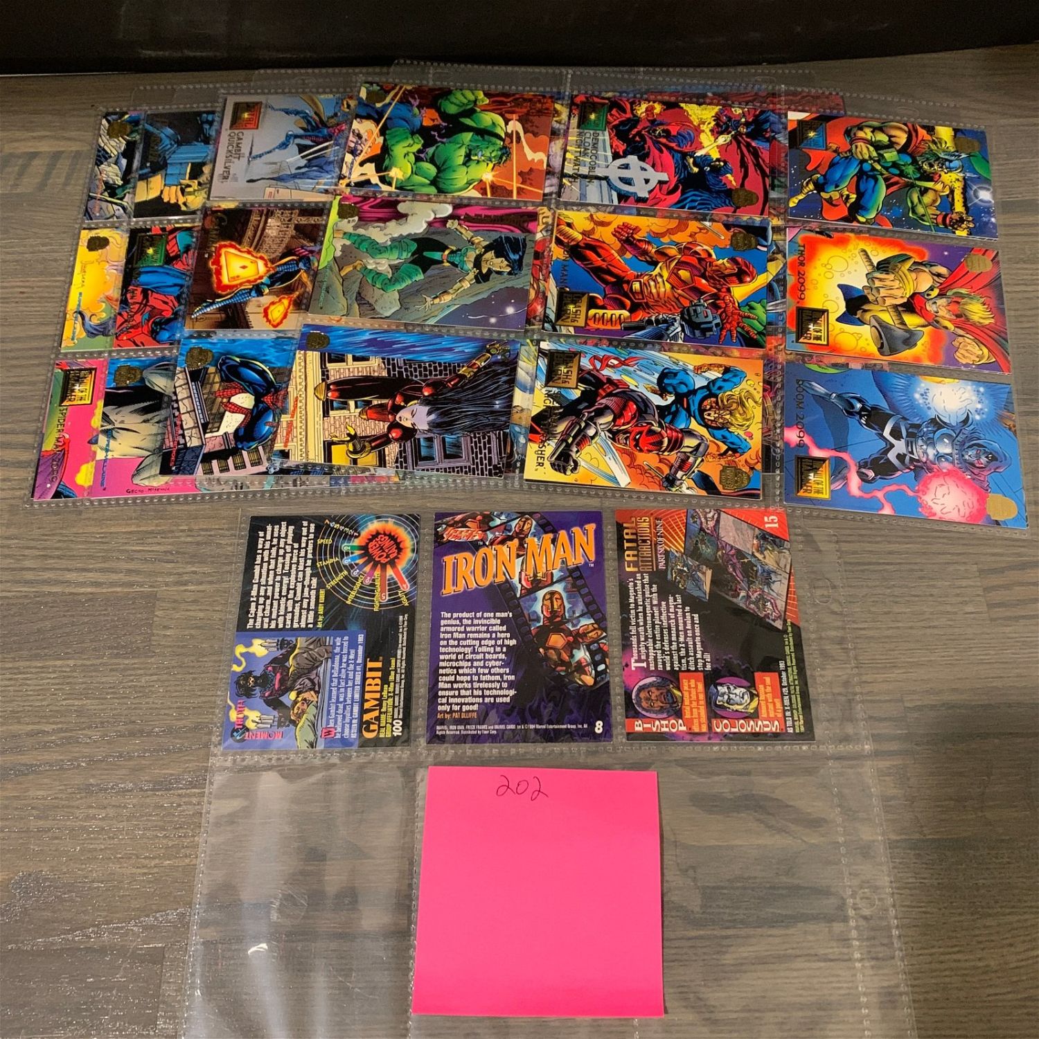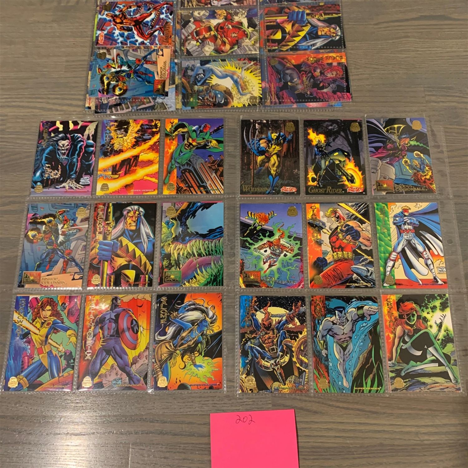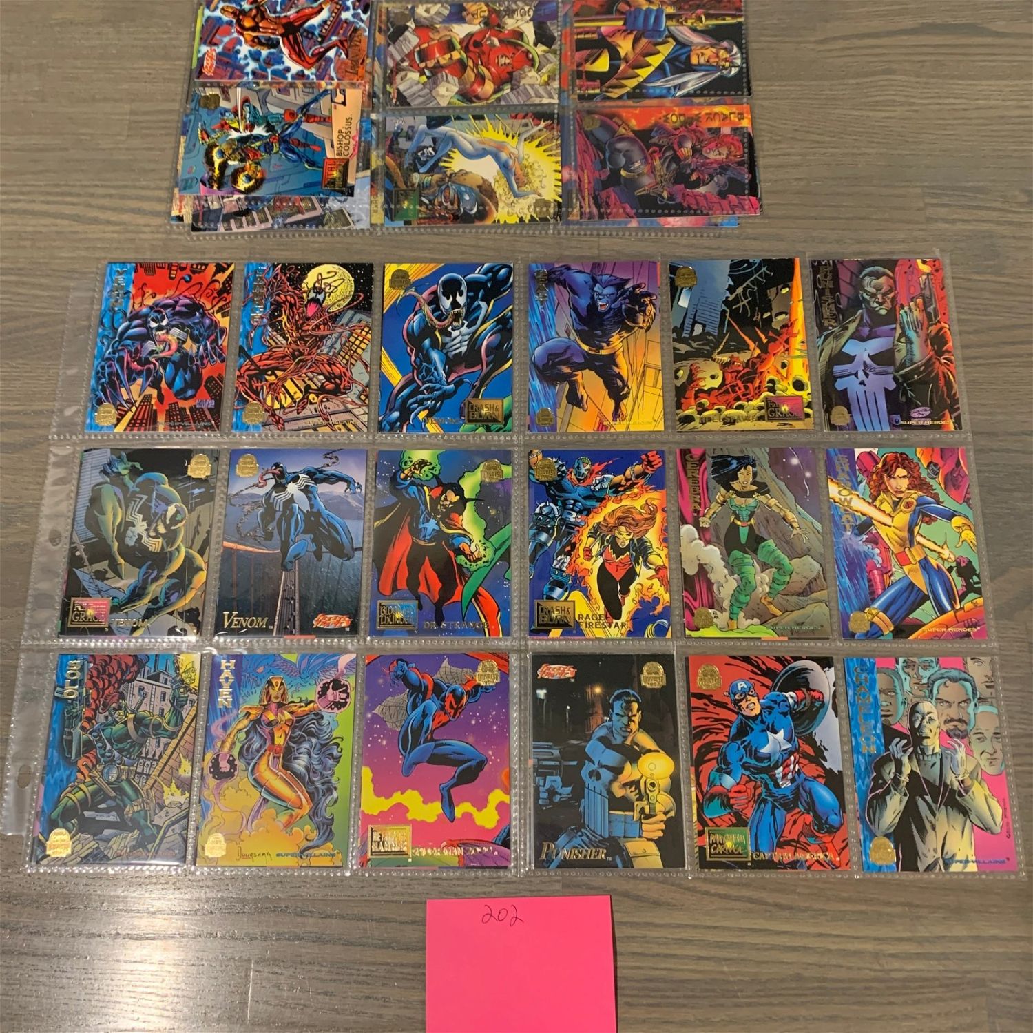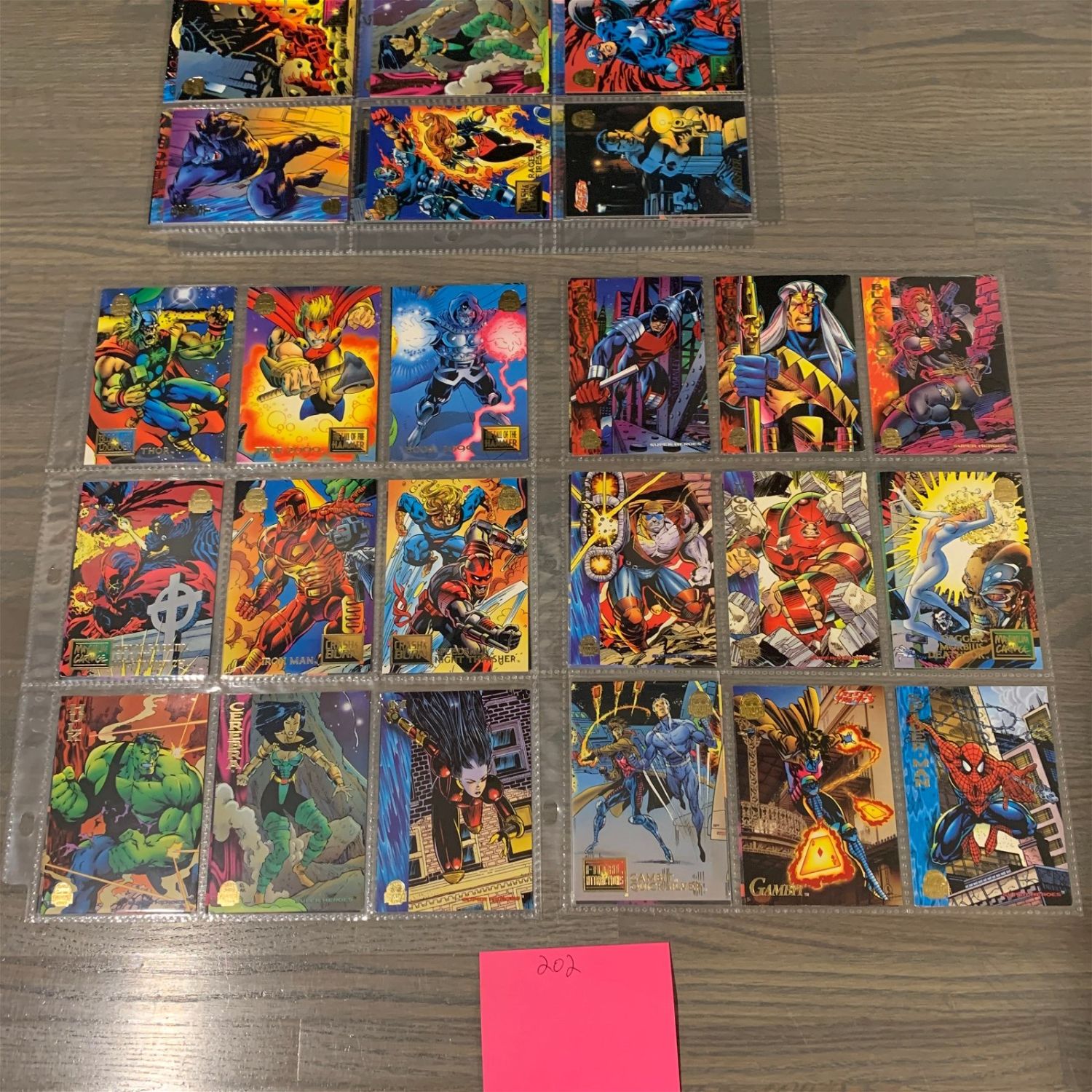 Huge lot of 1994 Marvel Universe Fleer Trading Cards. Pages have cards in the front and back. We are a veteran owned company. Please look at the pictures carefully to determine what you believe the condition of collecitible is. We are currently accepting consignments. Email us a [email protected] or visit our website, www.ahauctionhouse.com.