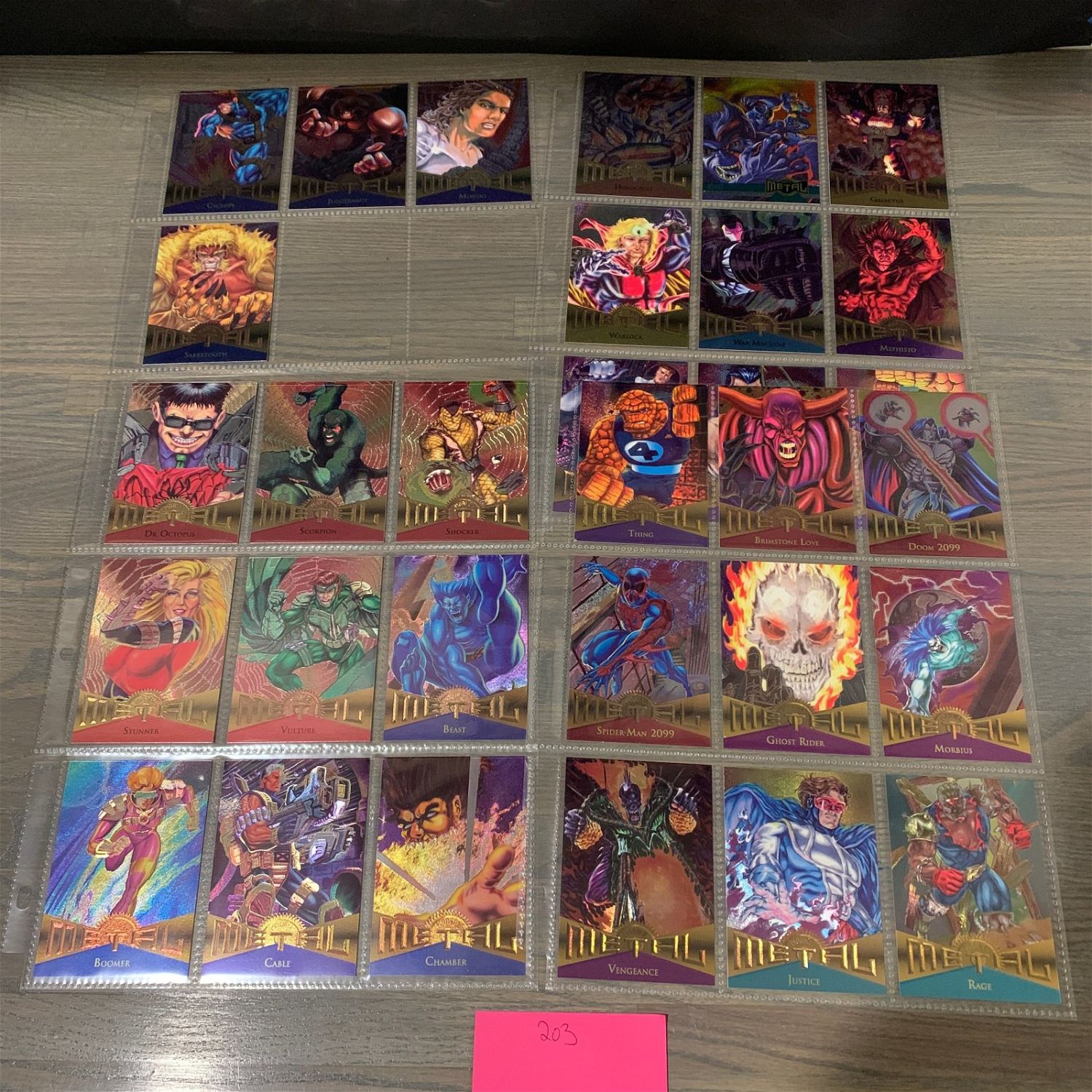 Nice lot of Rare Fleer Metal Marvel Refractor Cards. We are a veteran owned company. Please look at the pictures carefully to determine what you believe the condition of collecitible is. We are currently accepting consignments. Email us a [email protected] or visit our website, www.ahauctionhouse.com.