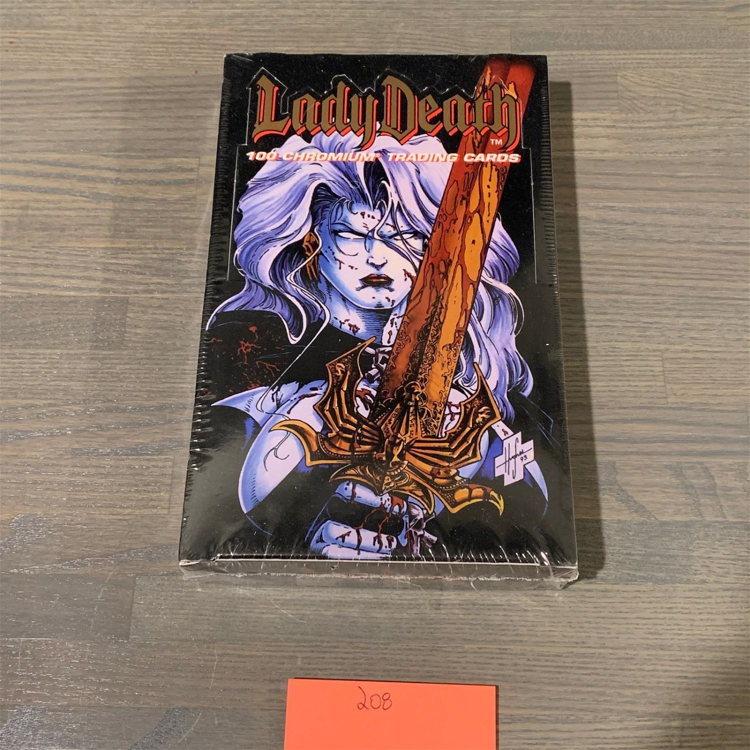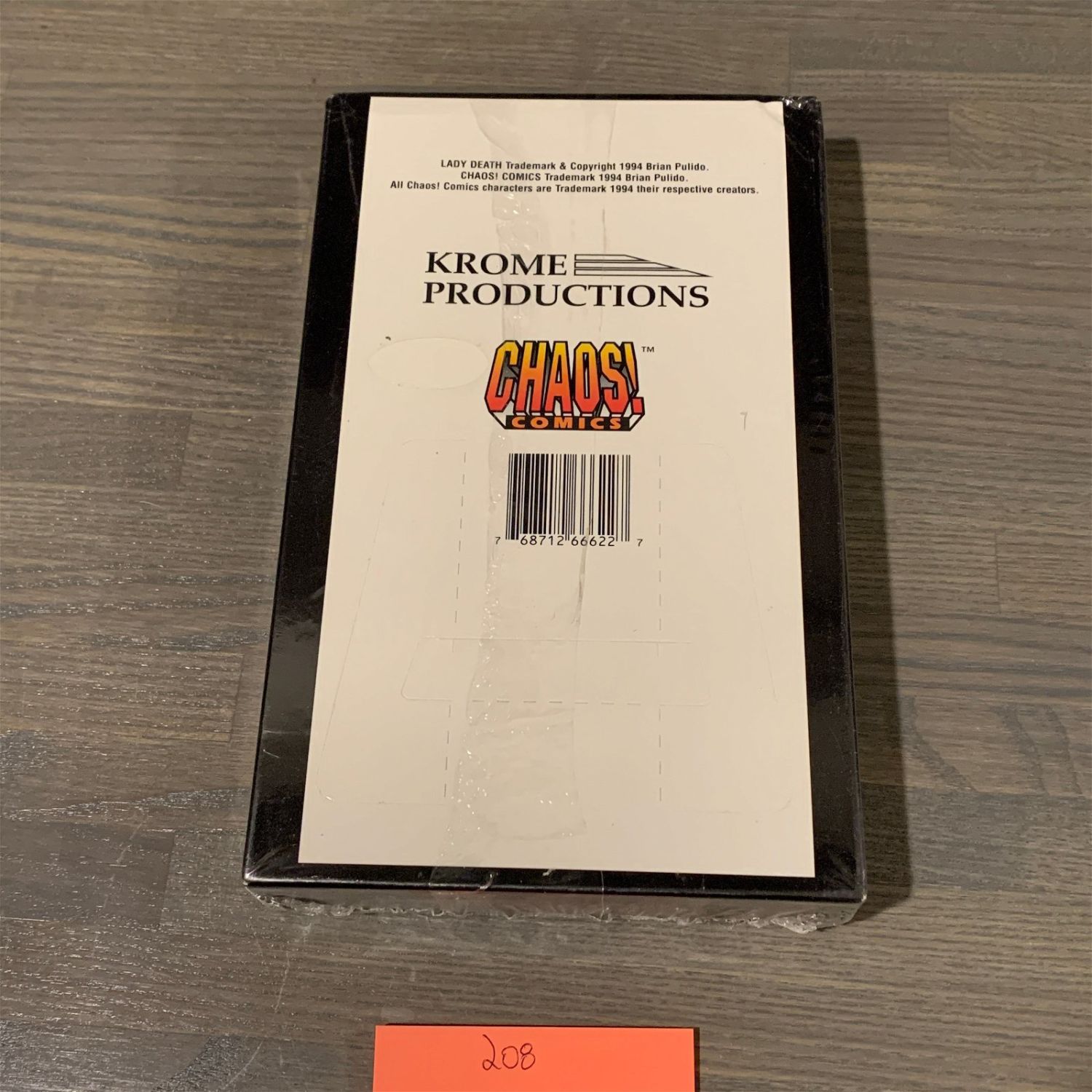 Sealed Box of 1994 Lady Death Chromium Trading Cards. We are a veteran owned company. Please look at the pictures carefully to determine what you believe the condition of collecitible is. We are currently accepting consignments. Email us a [email protected] or visit our website, www.ahauctionhouse.com.