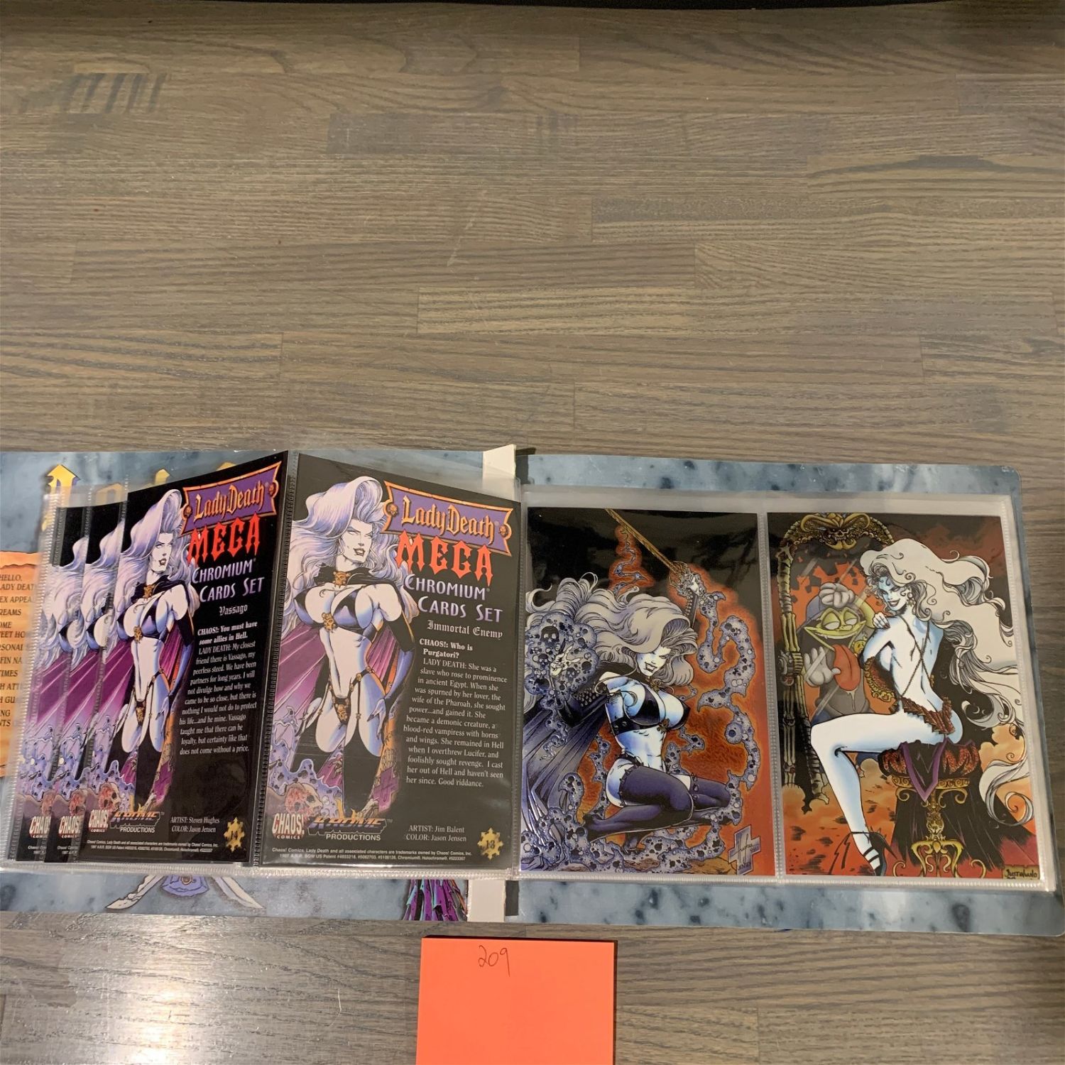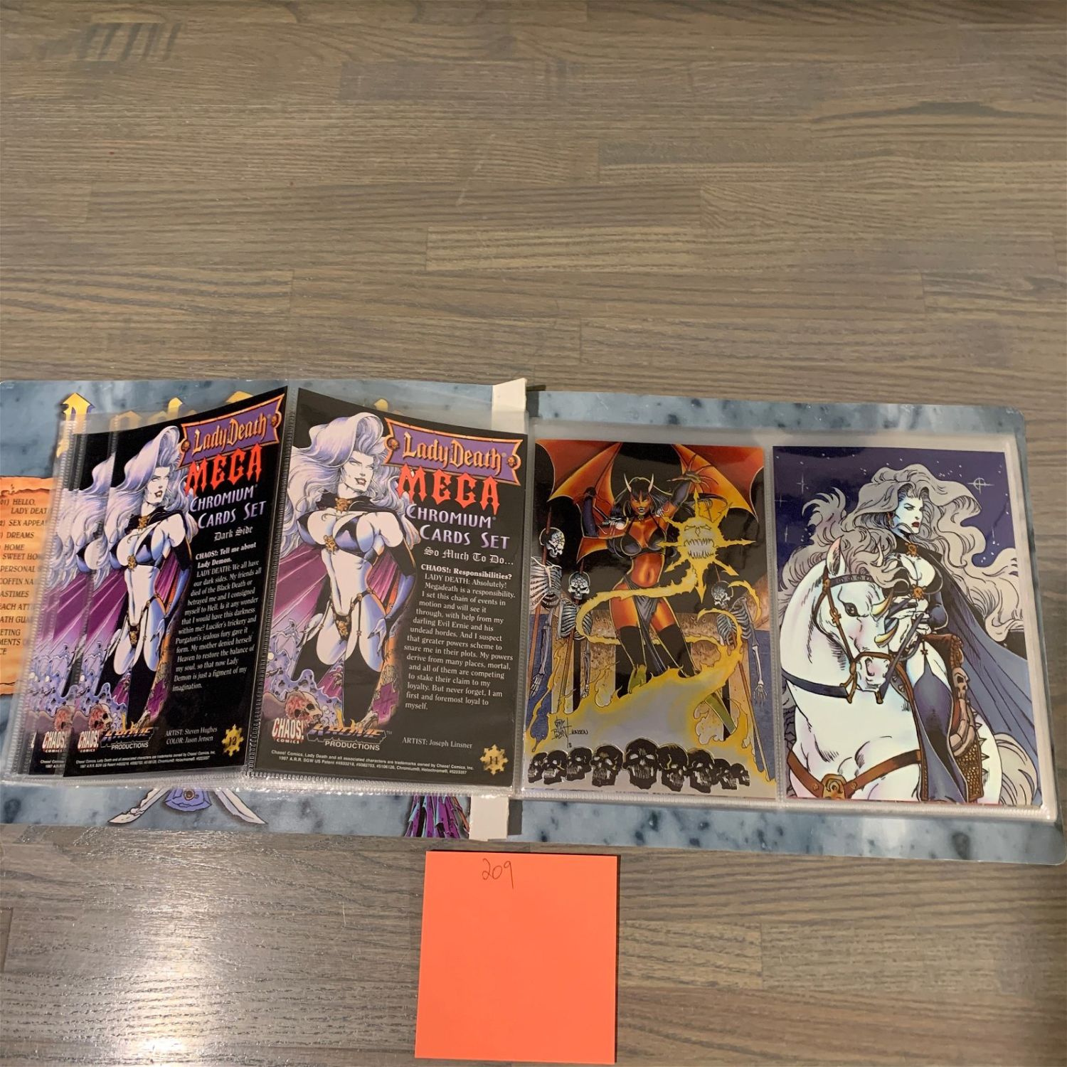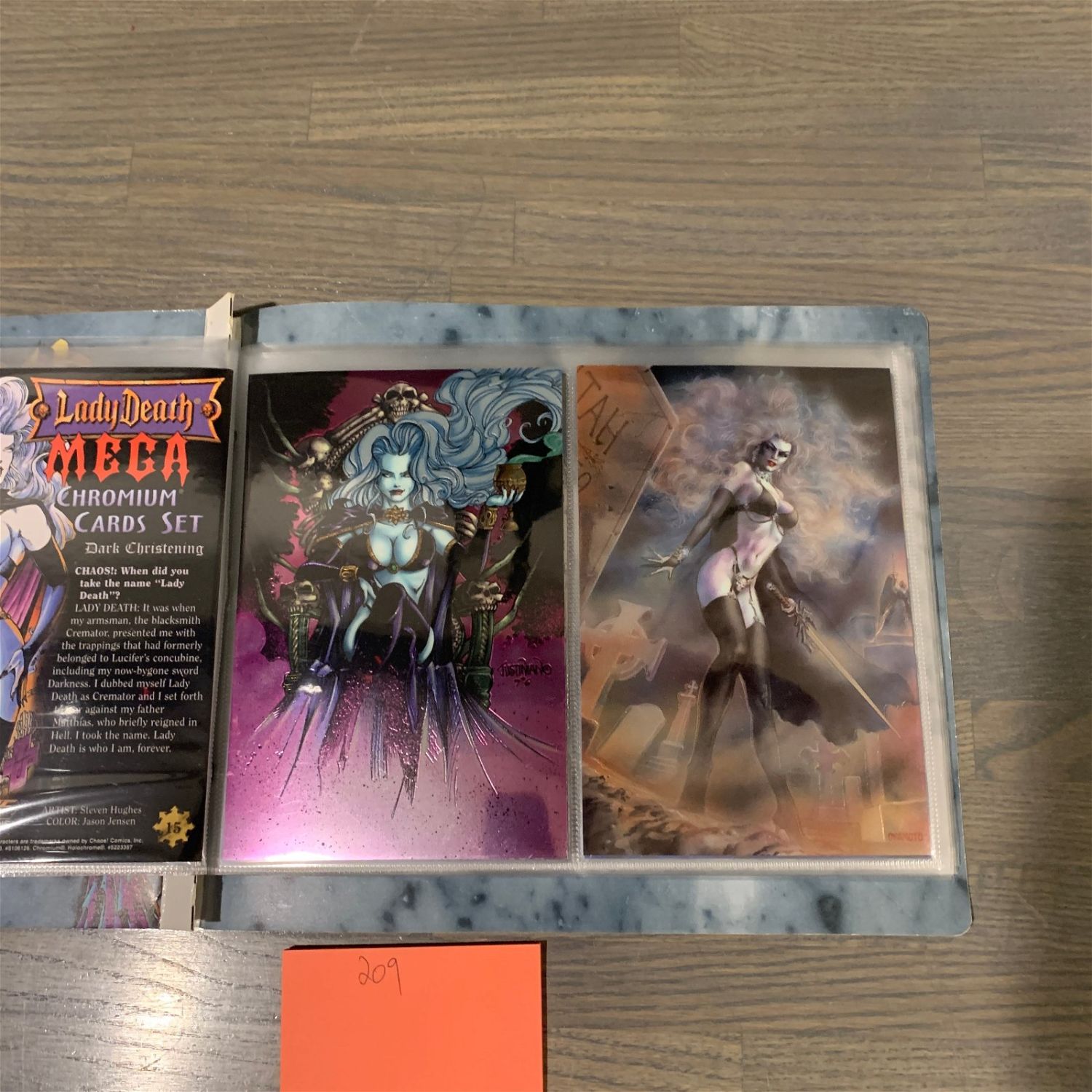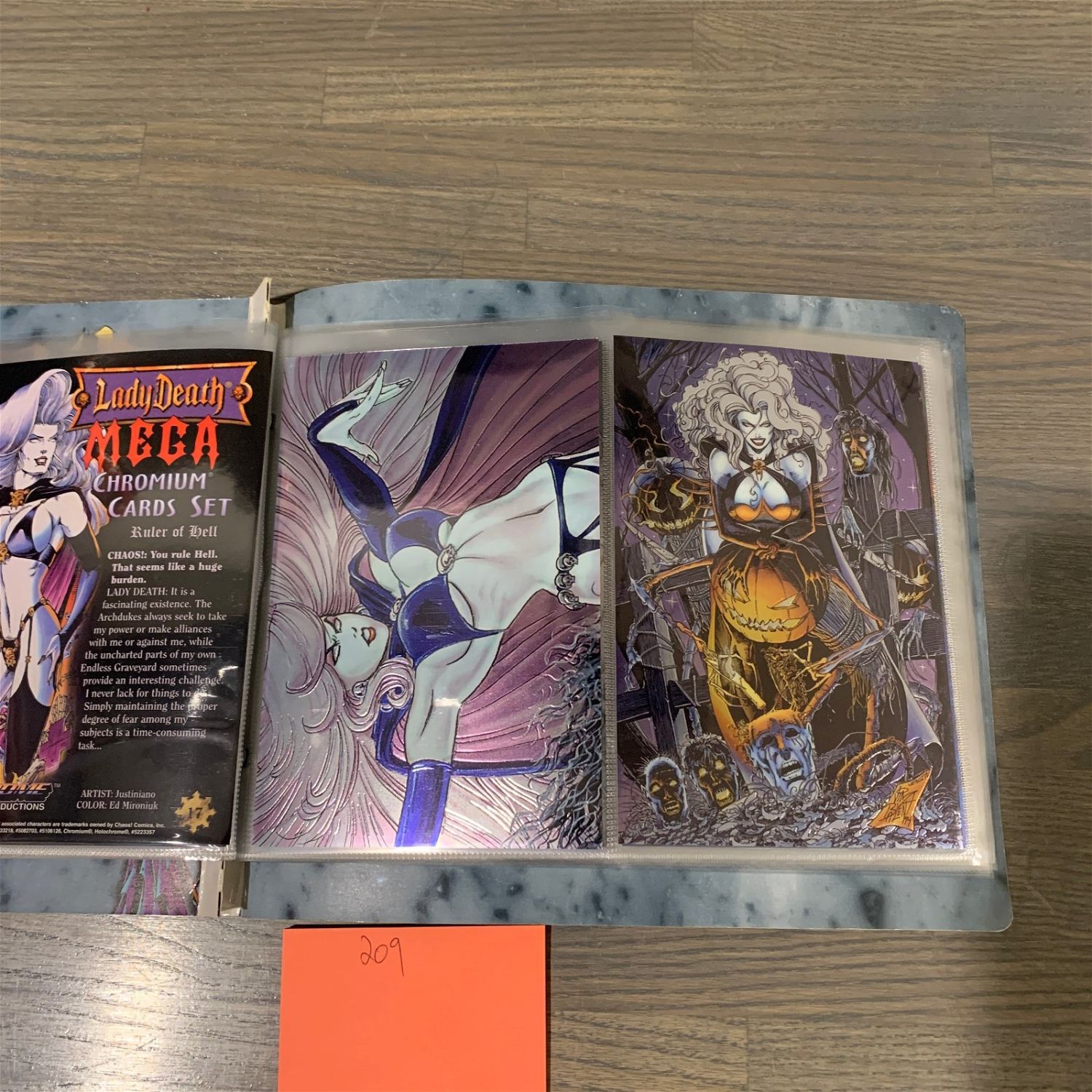 Lady Death Mega Card Binder with complete set of 1997 Lady Death Mega Chromium Cards.We are a veteran owned company. Please look at the pictures carefully to determine what you believe the condition of collecitible is. We are currently accepting consignments. Email us a [email protected] or visit our website, www.ahauctionhouse.com.