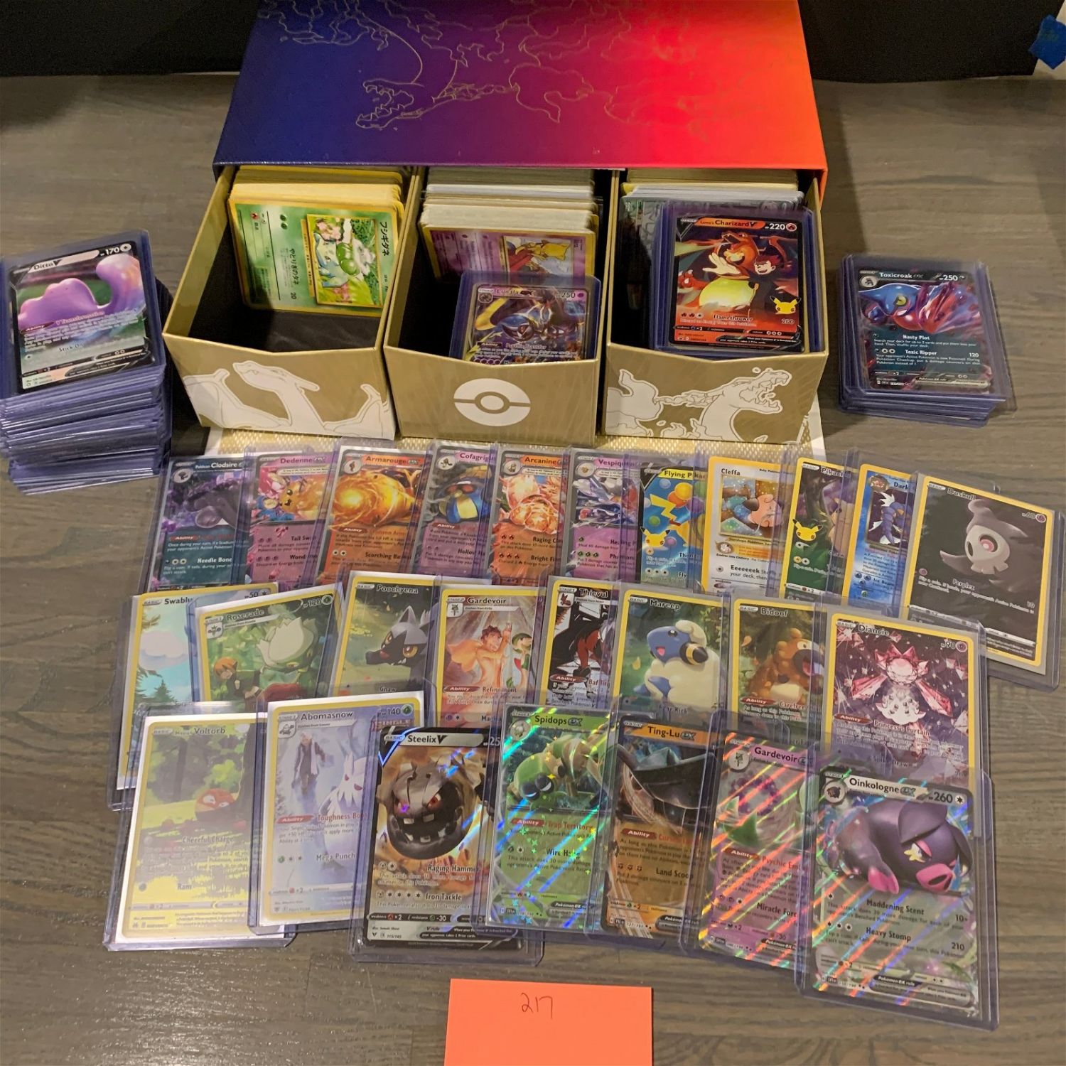 Huge lot of Vintage and Modern Pokemon cards. Includes tons of top loaded hits, as well as drawers filled with more vintage and modern cards. includes play mat as well. We are a veteran owned company. Please look at the pictures carefully to determine what you believe the condition of collecitible is. We are currently accepting consignments. Email us a [email protected] or visit our website, www.ahauctionhouse.com.