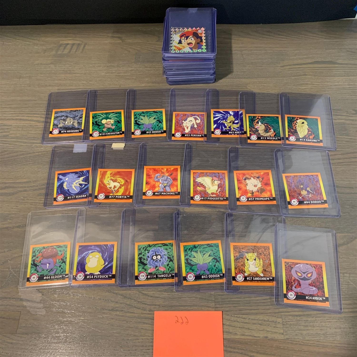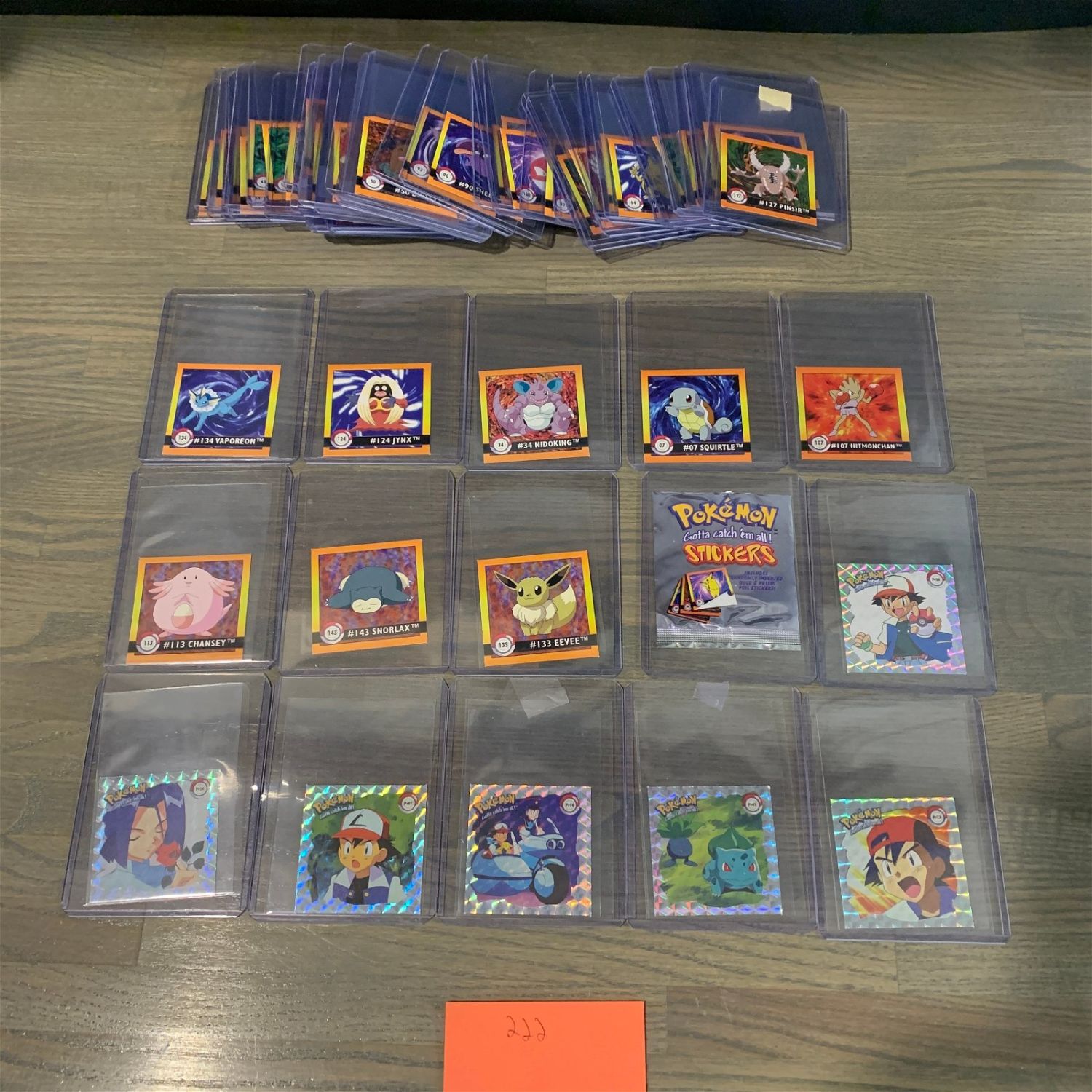 Large lot of Vintage Pokemon Stickers includes 6 rare prisim stickers. featuring ash. Includes one opened Pokemon Sticker Pack. All Stickers are in toploaders. We are a veteran owned company. Please look at the pictures carefully to determine what you believe the condition of collecitible is. We are currently accepting consignments. Email us a [email protected] or visit our website, www.ahauctionhouse.com.
