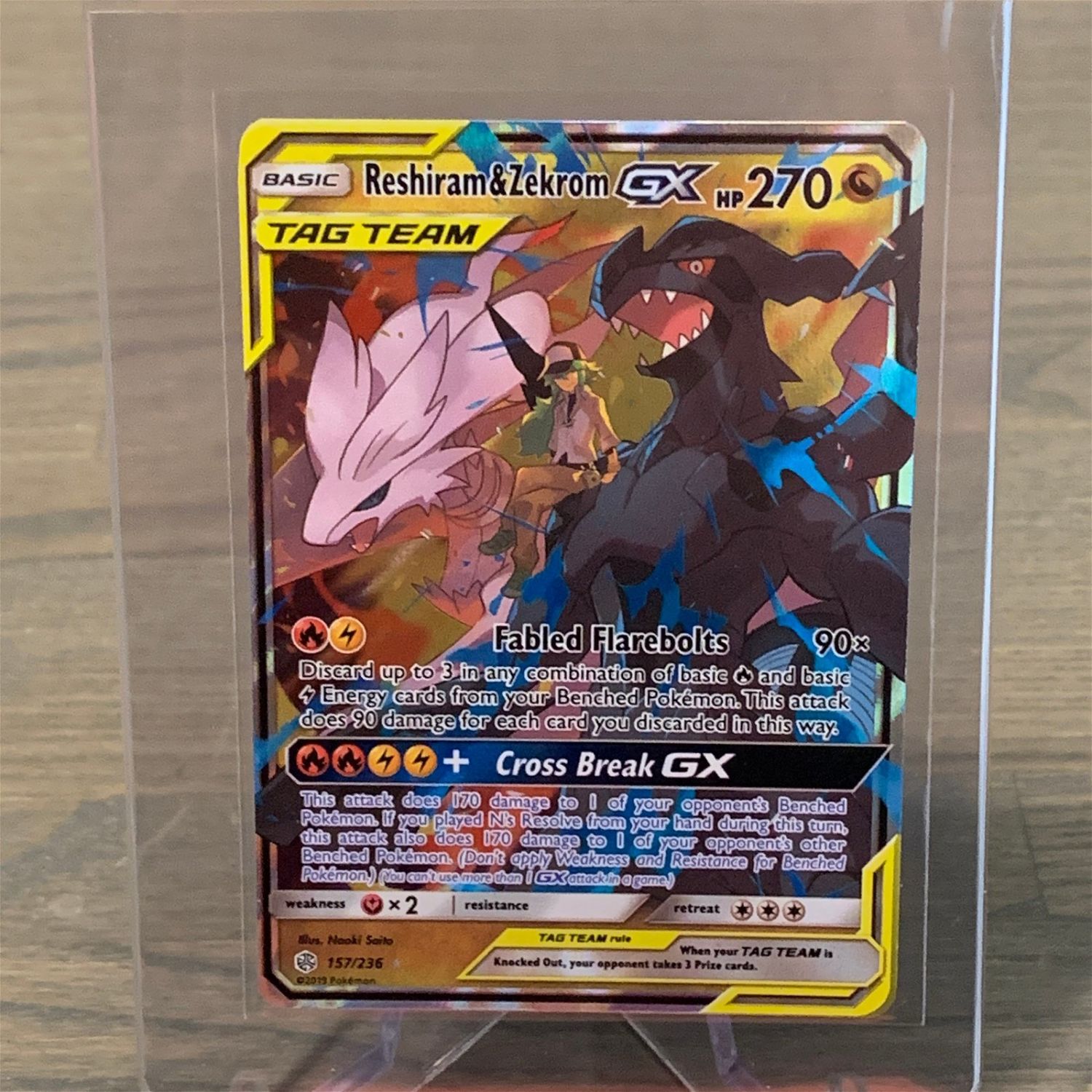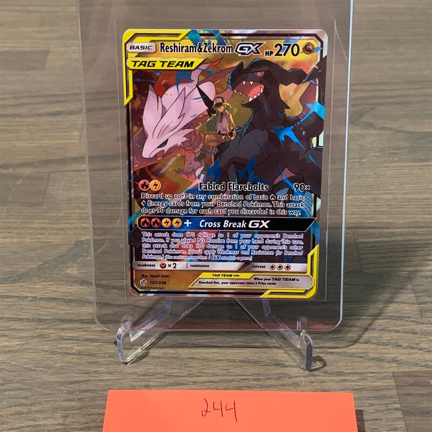 Reshiram & Zekrom GX #157, Cosmic Eclipse Pokemon card. We are a veteran owned company. Please look at the pictures carefully to determine what you believe the condition of collecitible is. We are currently accepting consignments. Email us a [email protected] or visit our website, www.ahauctionhouse.com.