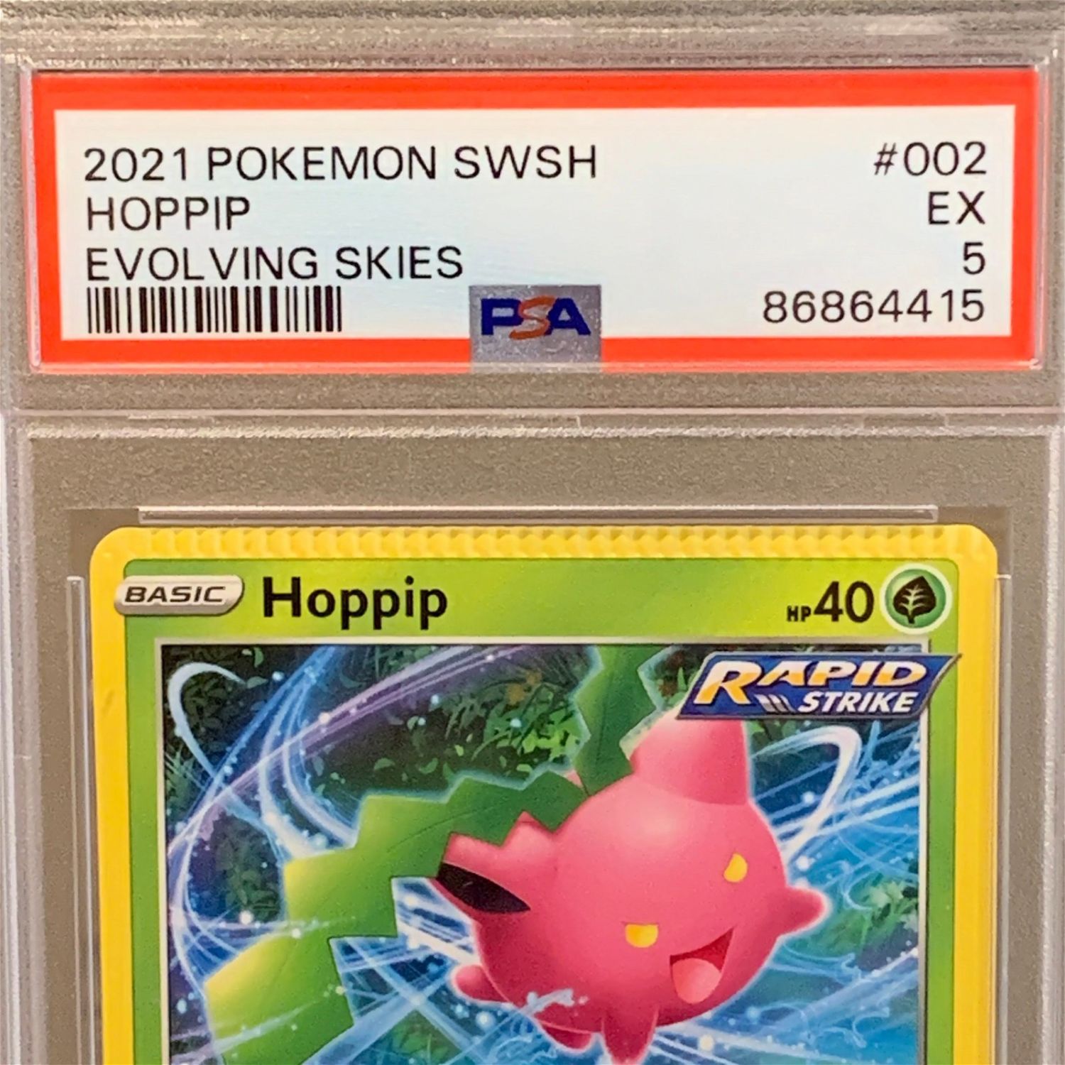 PSA 5 Crimp Error Hoppip #2, Evolving Skies Pokemon Card. Very Rare Printing Error. Graded to Preserve its condition. We are a veteran owned company. Please look at the pictures carefully to determine what you believe the condition of collecitible is. We are currently accepting consignments. Email us a [email protected] or visit our website, www.ahauctionhouse.com.