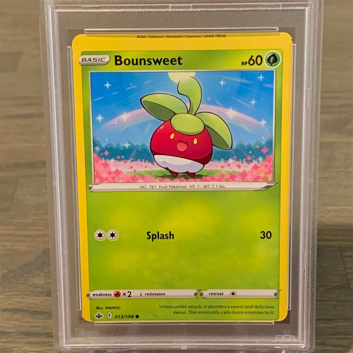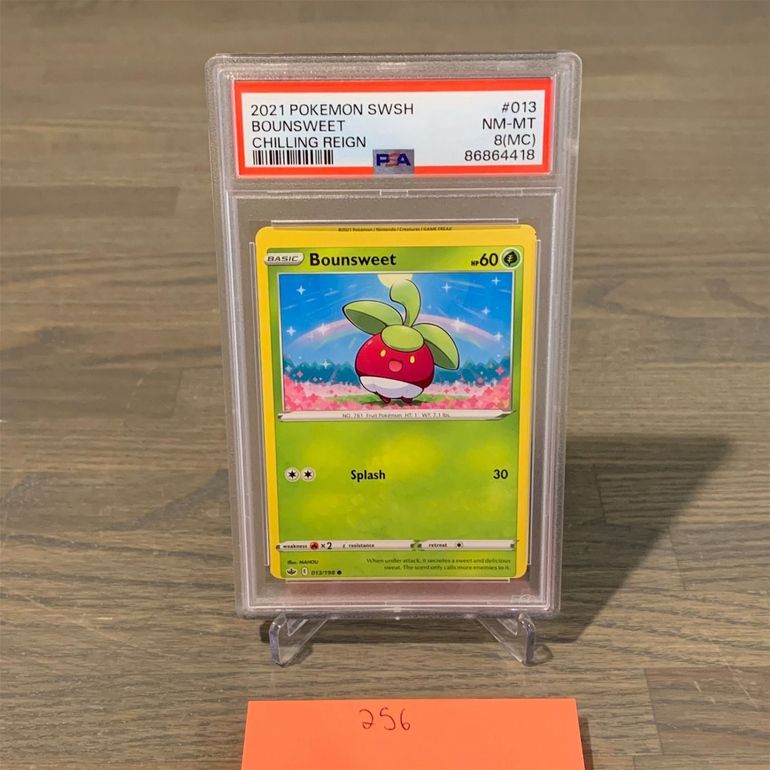 PSA 8 (MC) NM-MT Miscut Error Bounsweet #13, Chilling Reign Pokemon card. Authentic Muscut error, rare. We are a veteran owned company. Please look at the pictures carefully to determine what you believe the condition of collecitible is. We are currently accepting consignments. Email us a [email protected] or visit our website, www.ahauctionhouse.com.