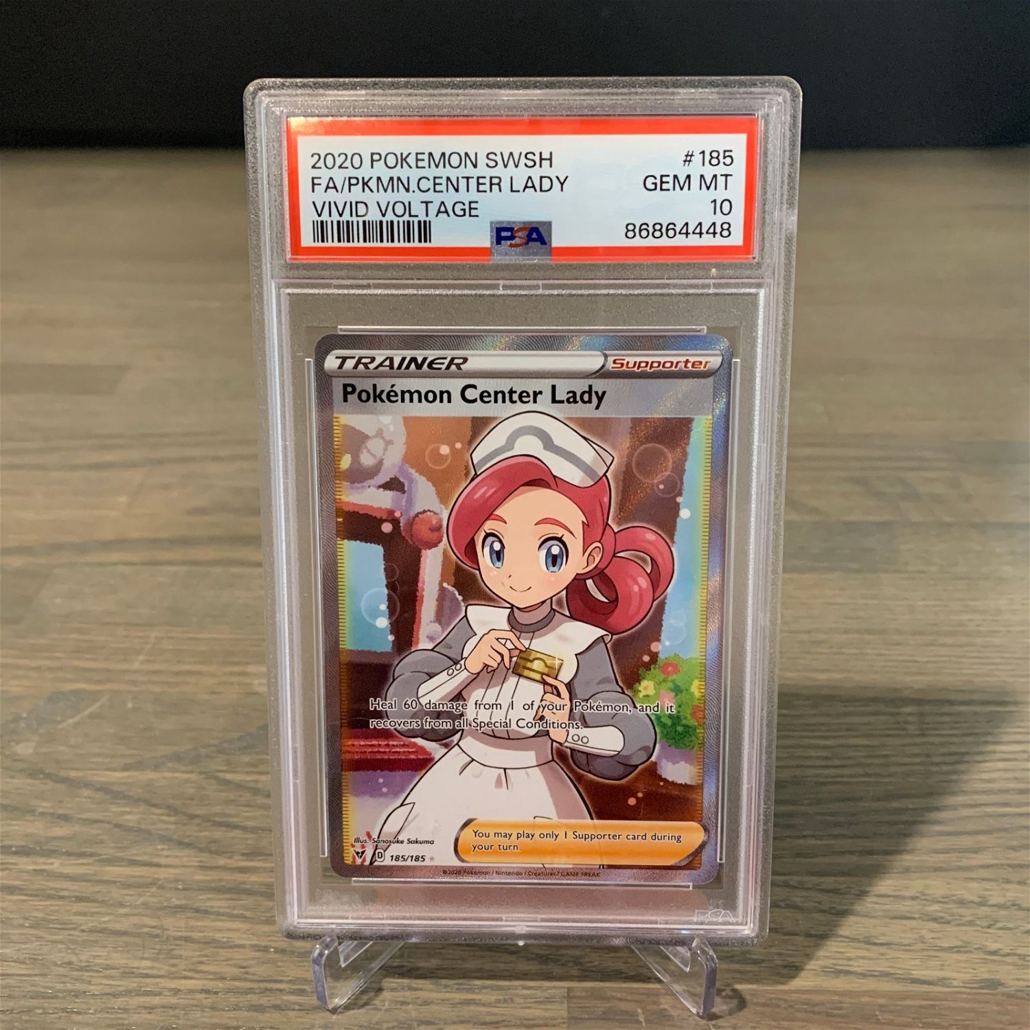 PSA 10 GEM Mint Pokemon Center Lady #185, Full Art, Vivid Voltage Pokemon Card. We are a veteran owned company. Please look at the pictures carefully to determine what you believe the condition of collecitible is. We are currently accepting consignments. Email us a [email protected] or visit our website, www.ahauctionhouse.com.