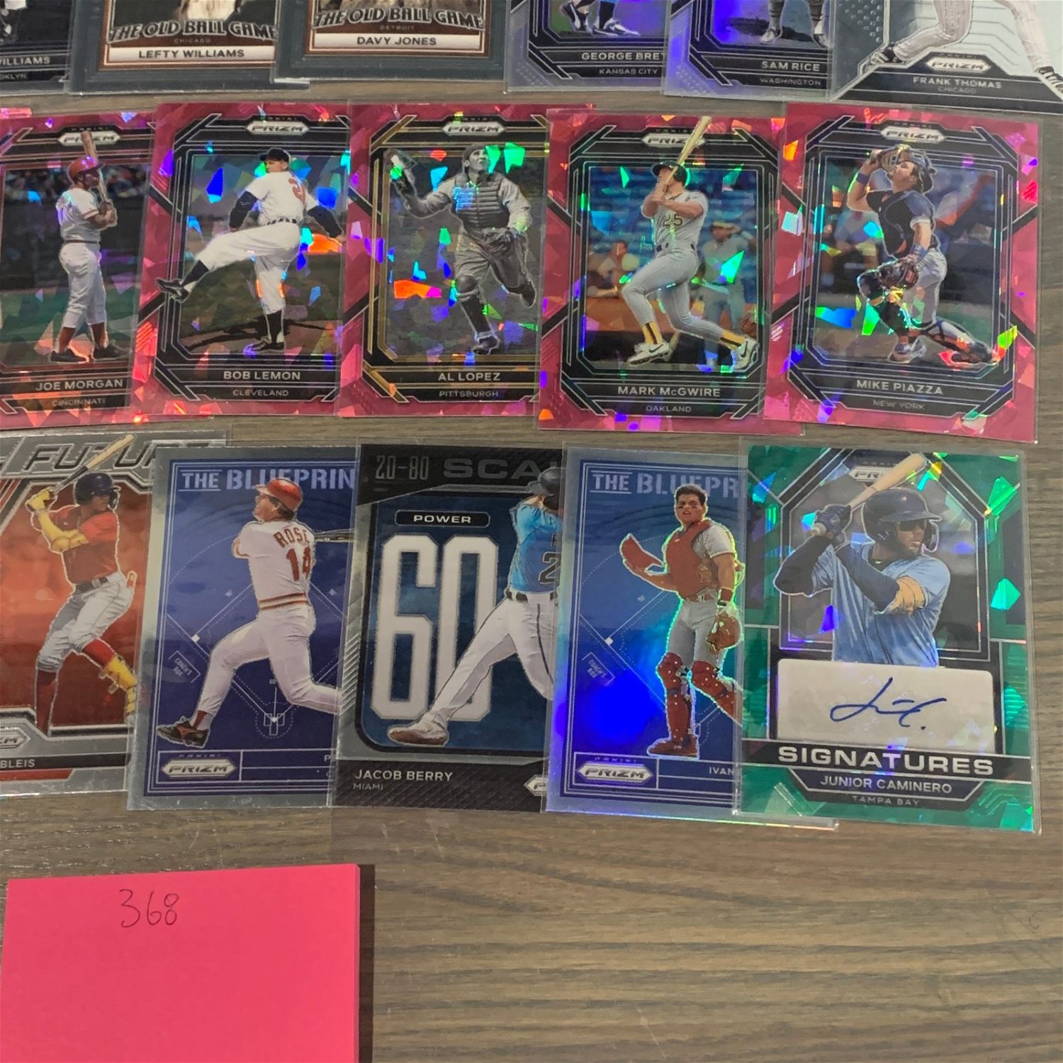 Lot of Panini Prizm Baseball Cards. Includes Pink Ice, green Ice cards, and Junior Caminero Autograph Baseball Card. We are a veteran owned company. Please look at the pictures carefully to determine what you believe the condition of collecitible is. We are currently accepting consignments. Email us a [email protected] or visit our website, www.ahauctionhouse.com.
