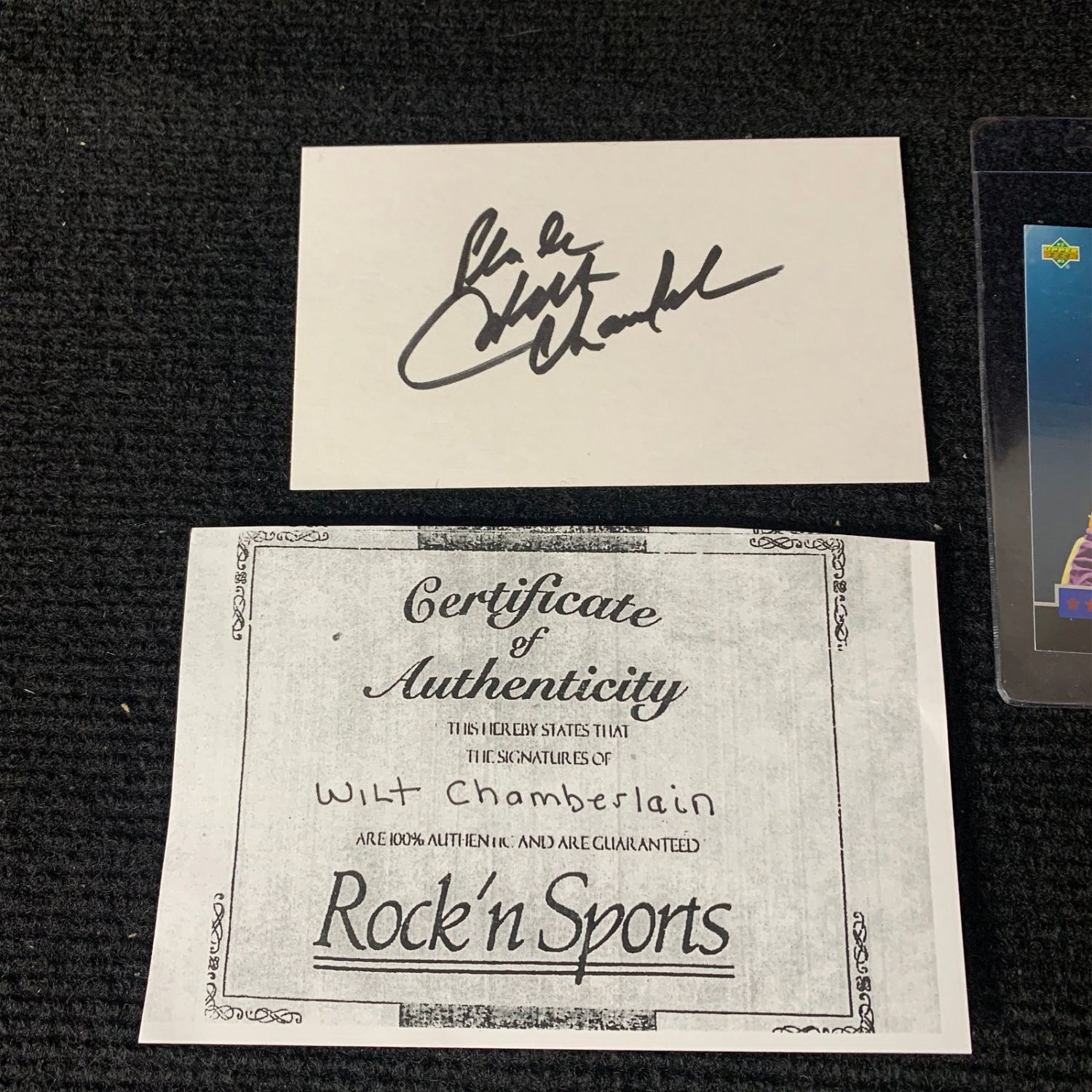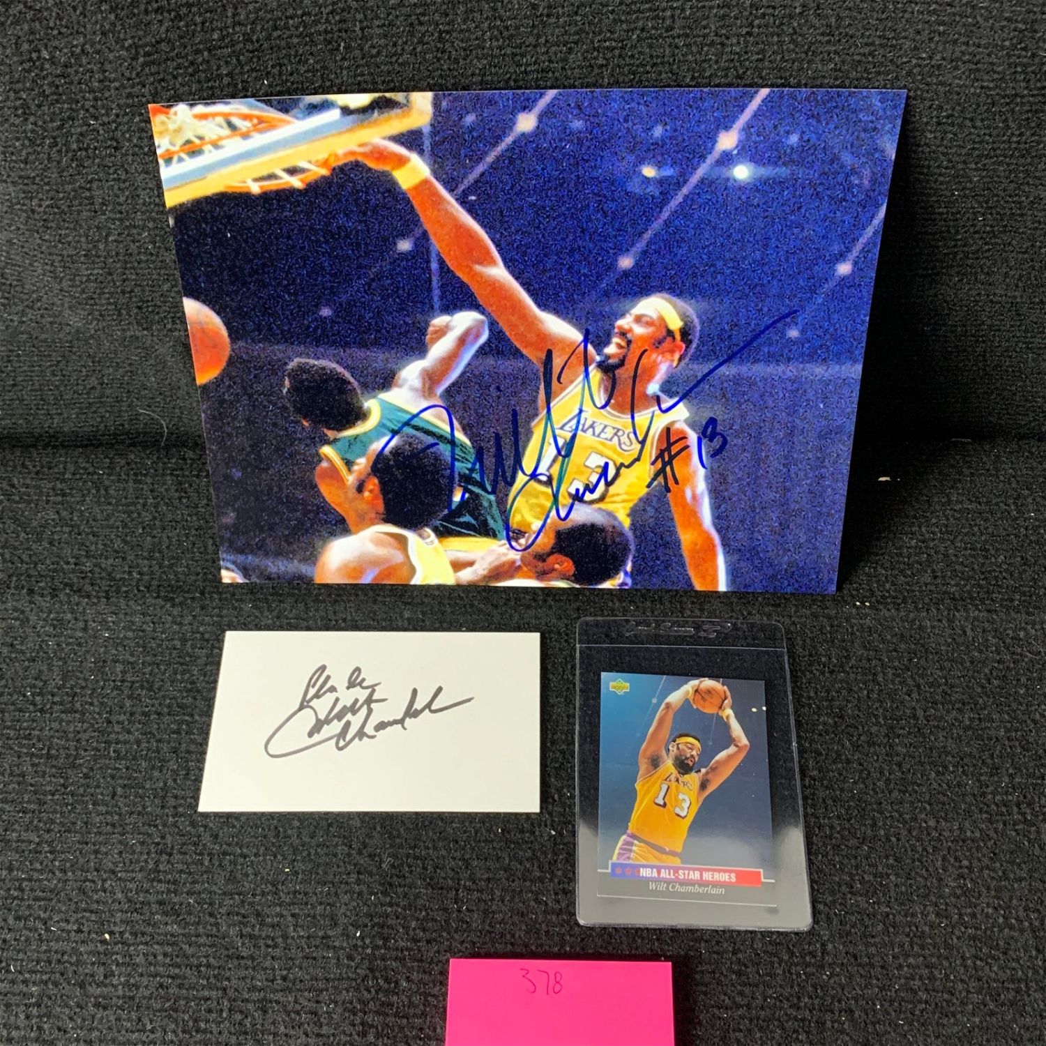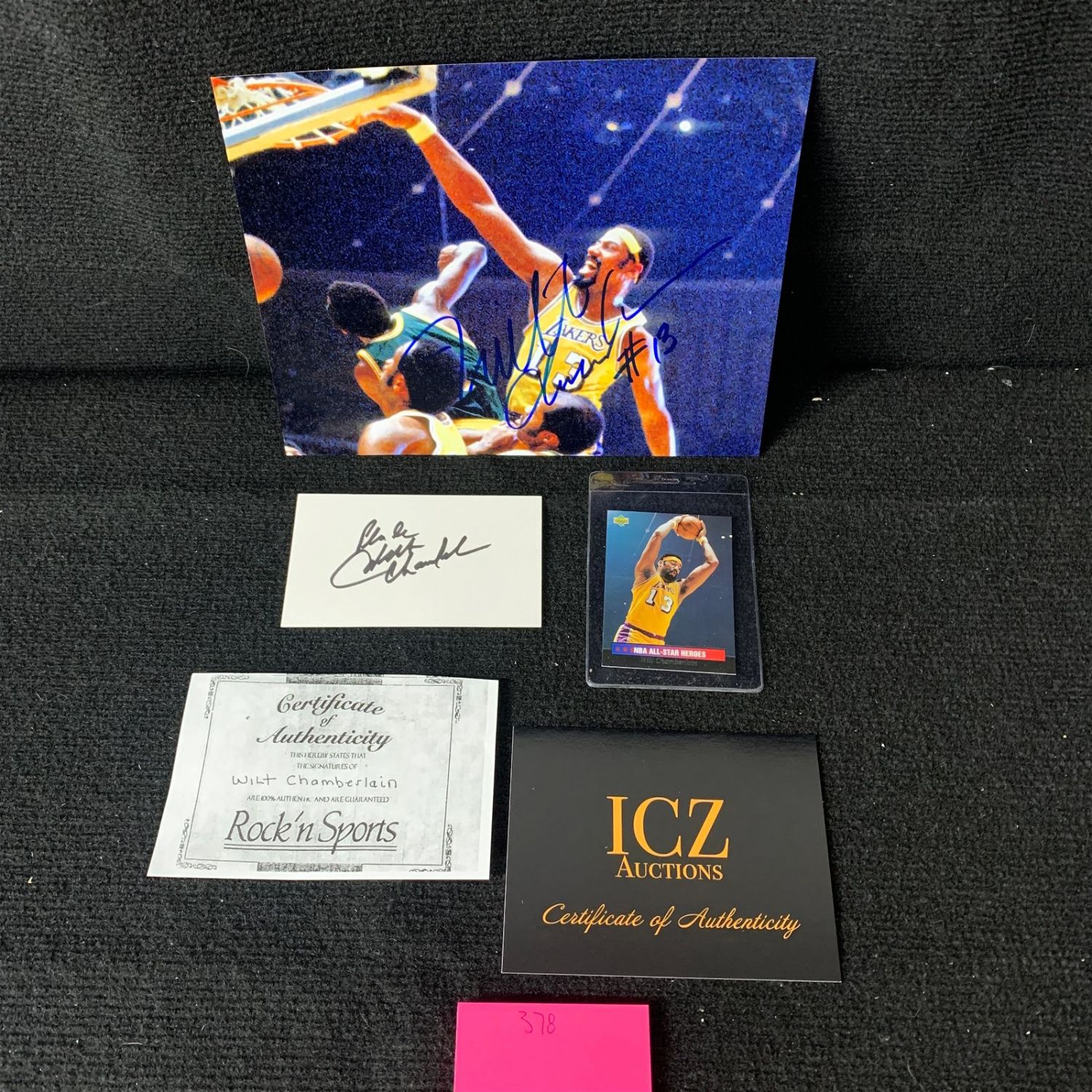 Wilt Chamberlain Phot, Autographed and COA from ICZ Auctions. Solo Auto with Rock’n Sports COA, and All Star Heroes Upper Deck Basketball Cards. Note, these COAs were provided with the consignment. We are a veteran owned company. Please look at the pictures carefully to determine what you believe the condition of collecitible is. We are currently accepting consignments. Email us a [email protected] or visit our website, www.ahauctionhouse.com.
