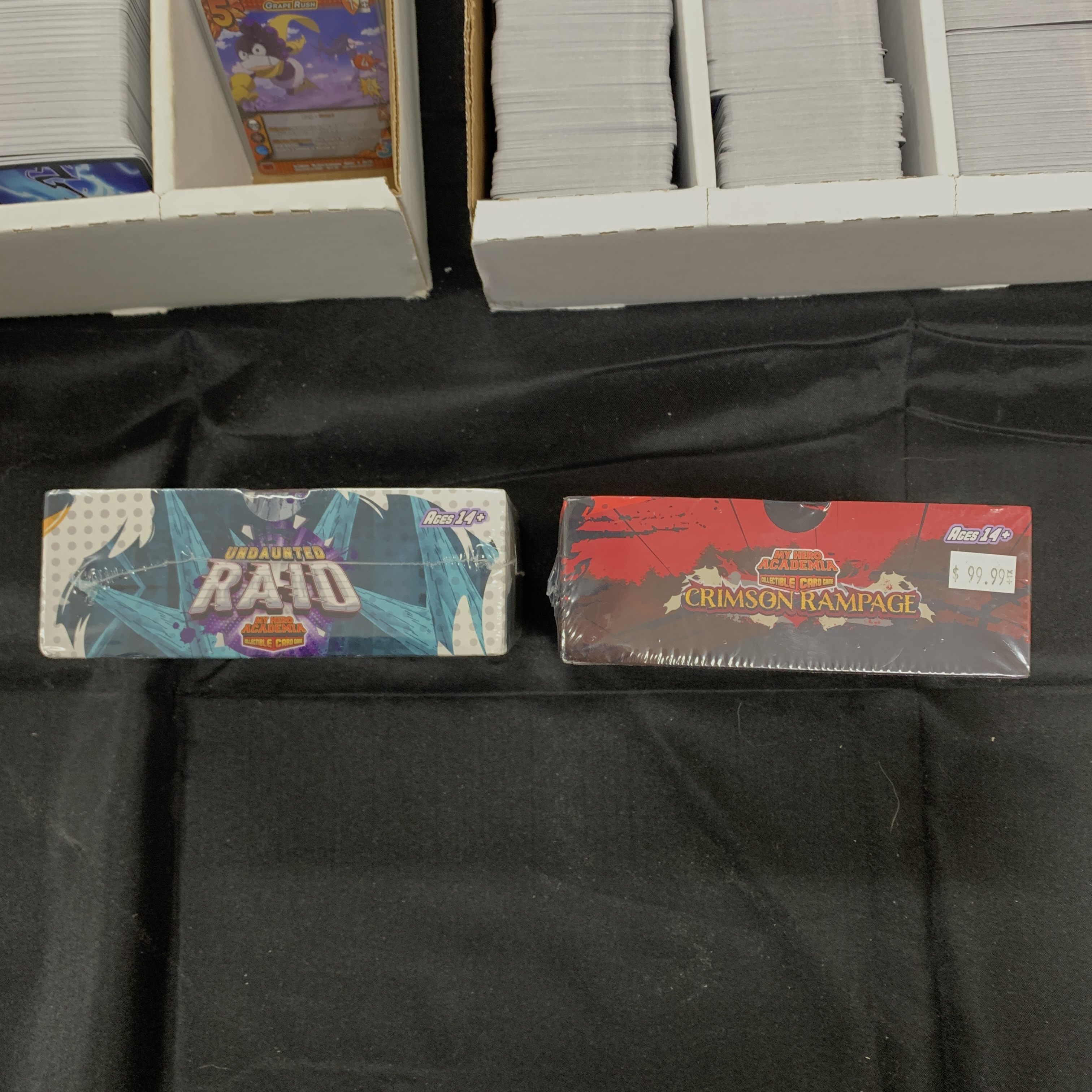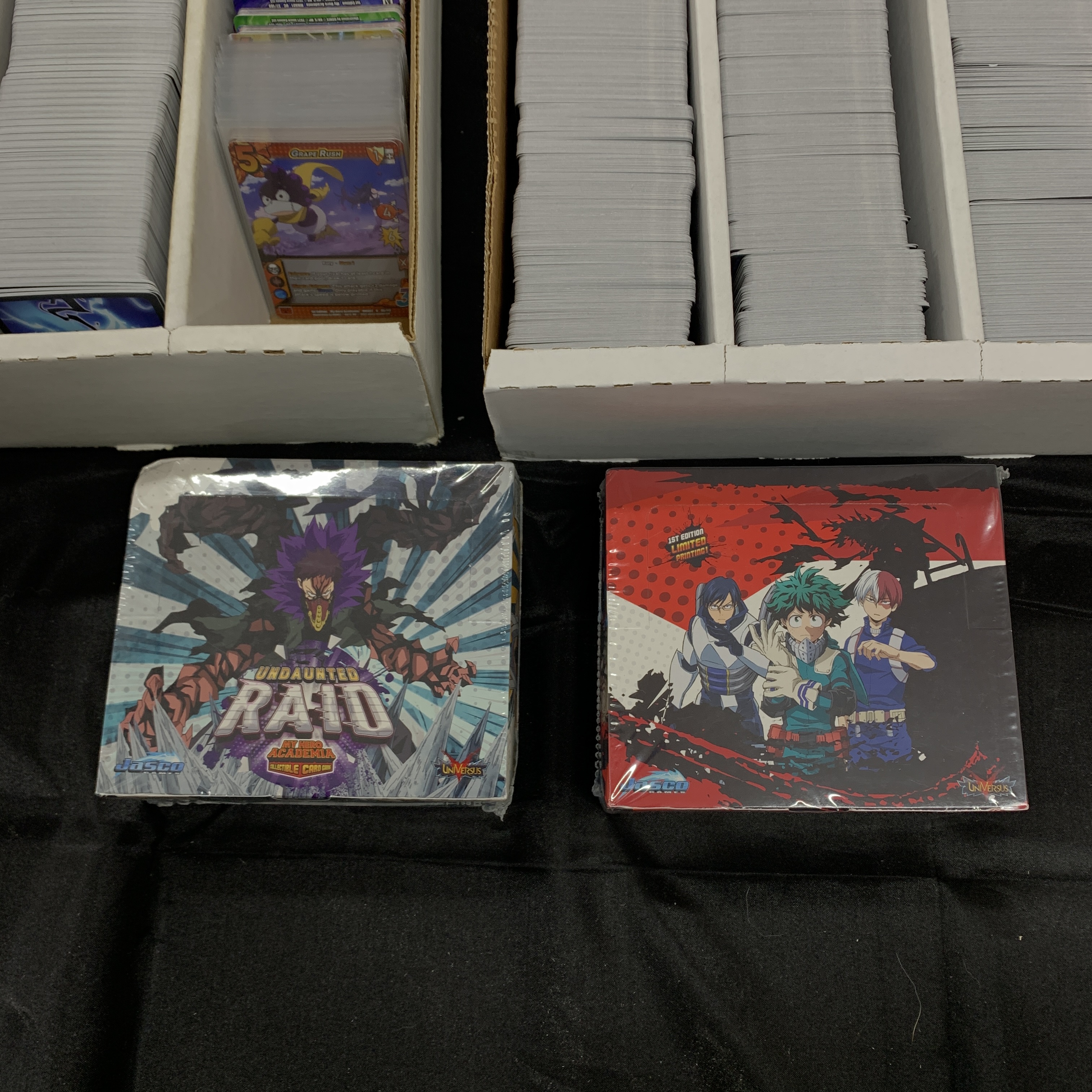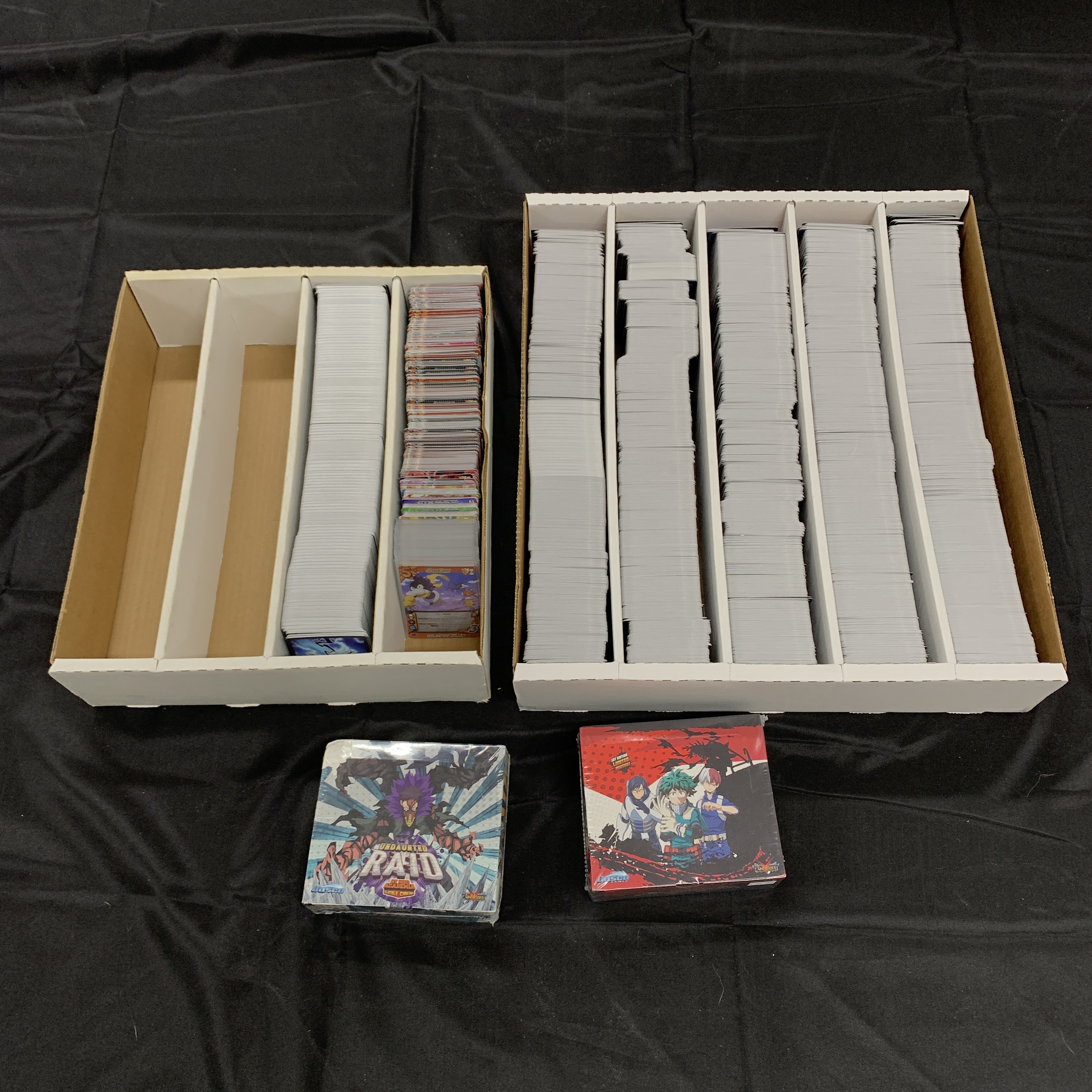 1000s of My Hero Academia anime Trading Cards Includes approximately a few hundred holos, As well as sealed Undaunted Raid, and Sealed Crimson Rampage Booster Boxes. We are a veteran owned company. Please look at the pictures carefully to determine what you believe the condition of collectible is. We are currently accepting consignments. Email us a [email protected] or visit our website, www.ahauctionhouse.com. We are currently seeking all types of collectibles.
