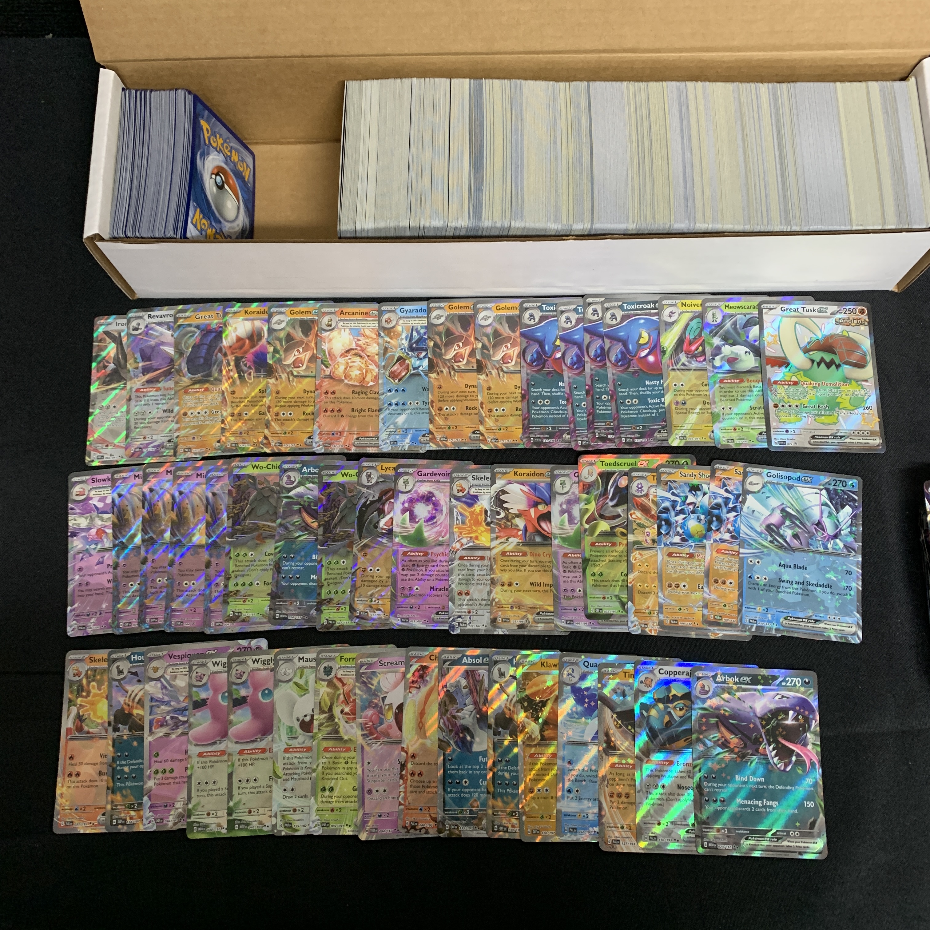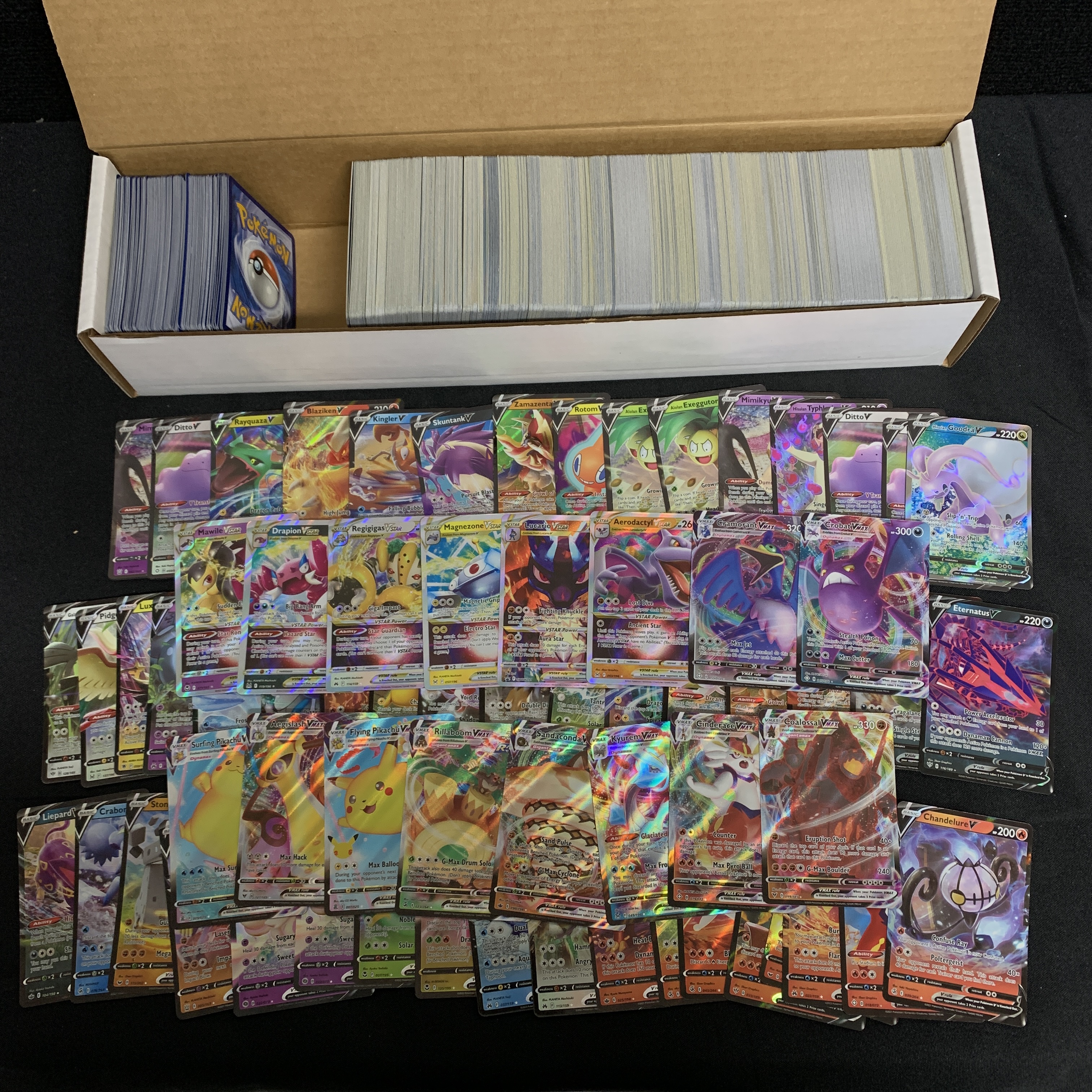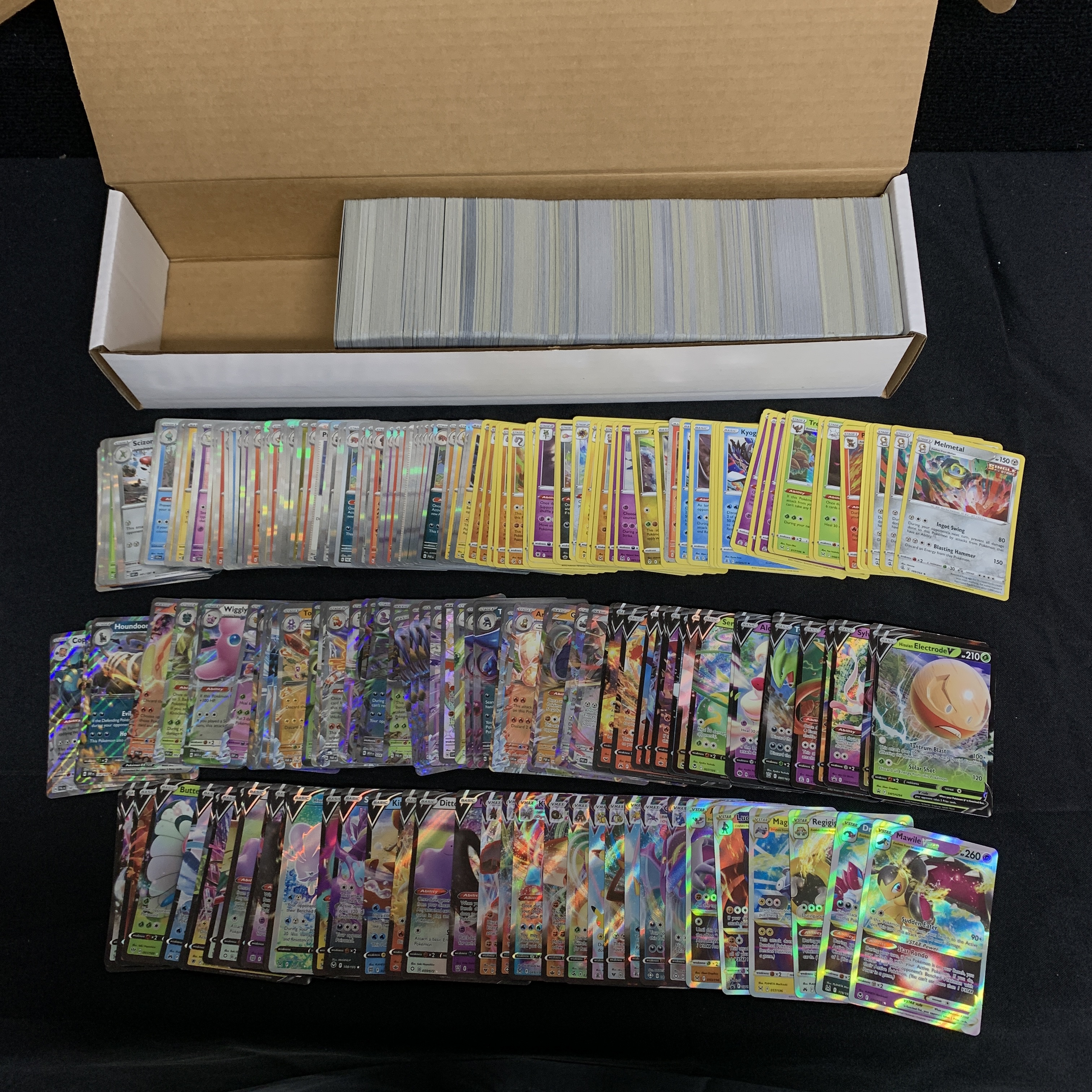 Approximately 1200 Pokemon Cards includes Vstar, Vmax, 50 EX, 50 Vs, 100 Holos, 100 Reverse Holos. Cards are from various years and sets We are a veteran owned company. Please look at the pictures carefully to determine what you believe the condition of collectible is. We are currently accepting consignments. Email us a [email protected] or visit our website, www.ahauctionhouse.com. We are currently seeking all types of collectibles.