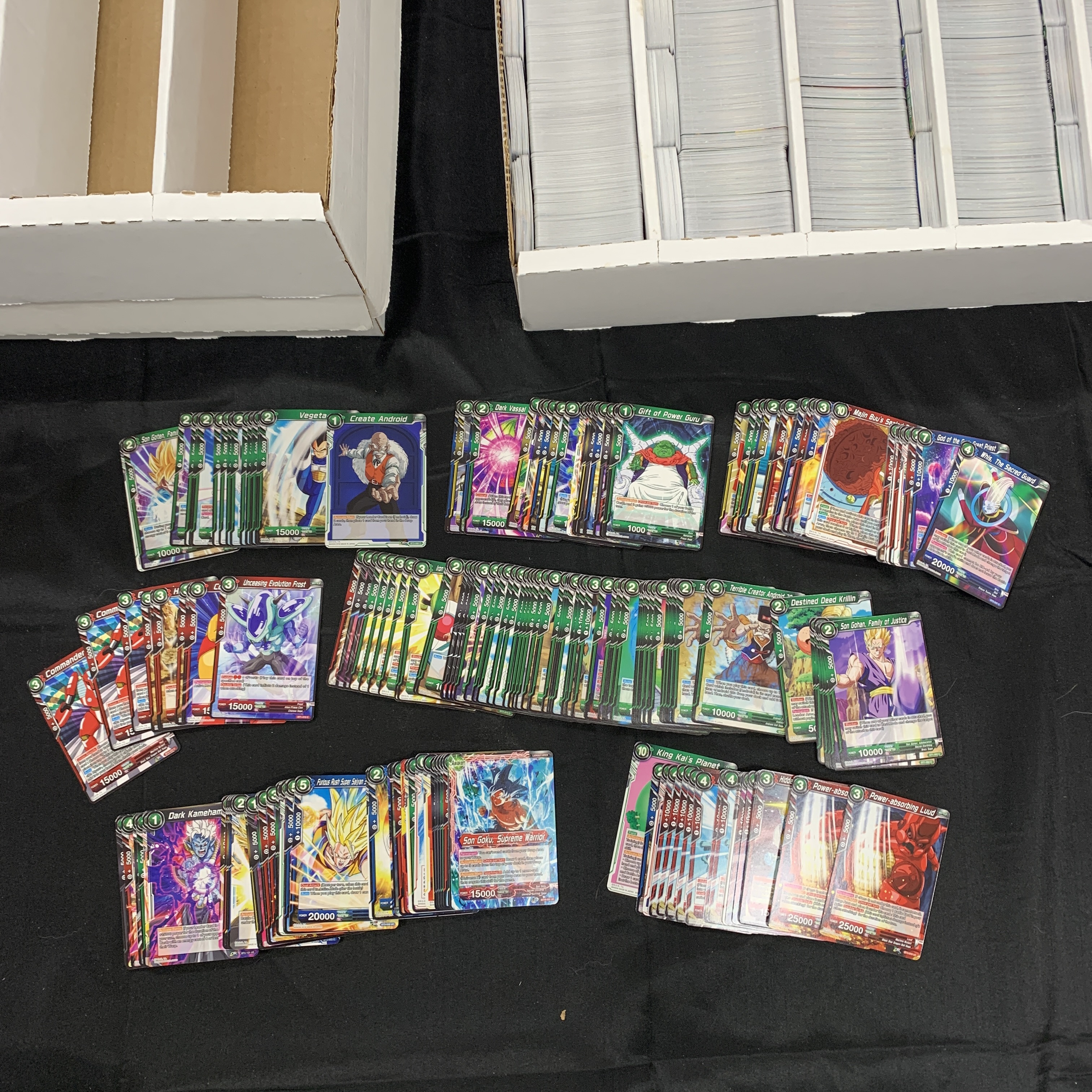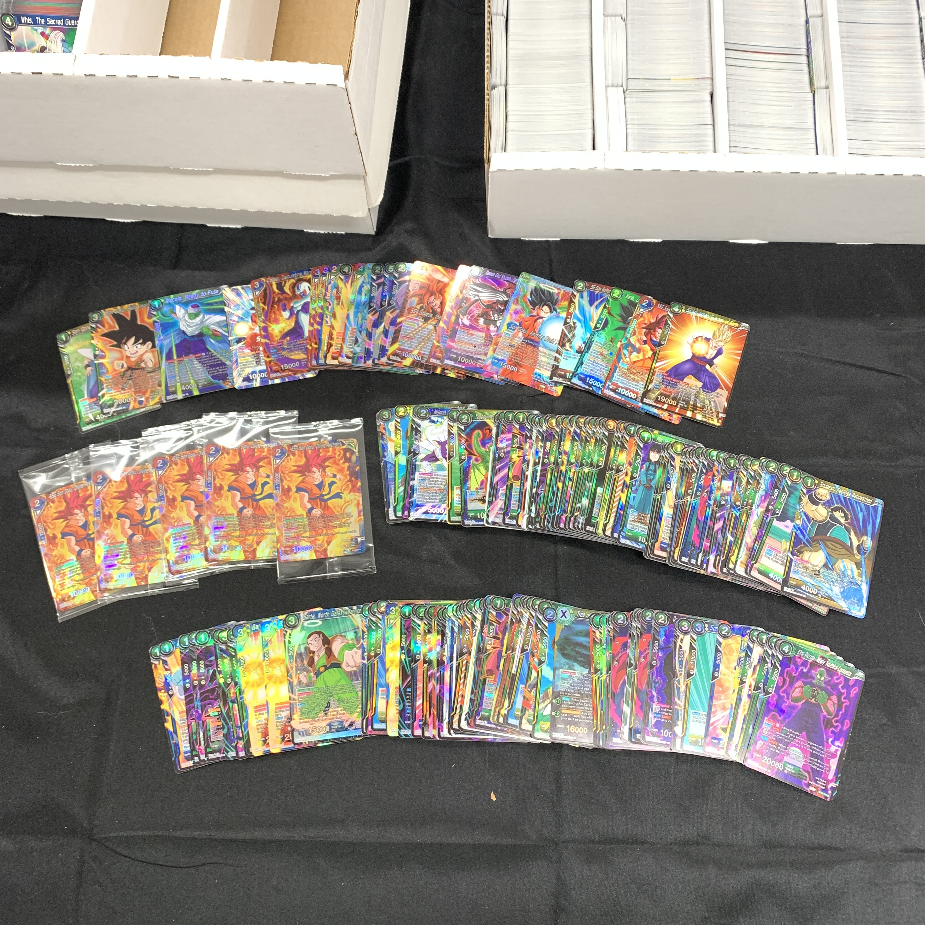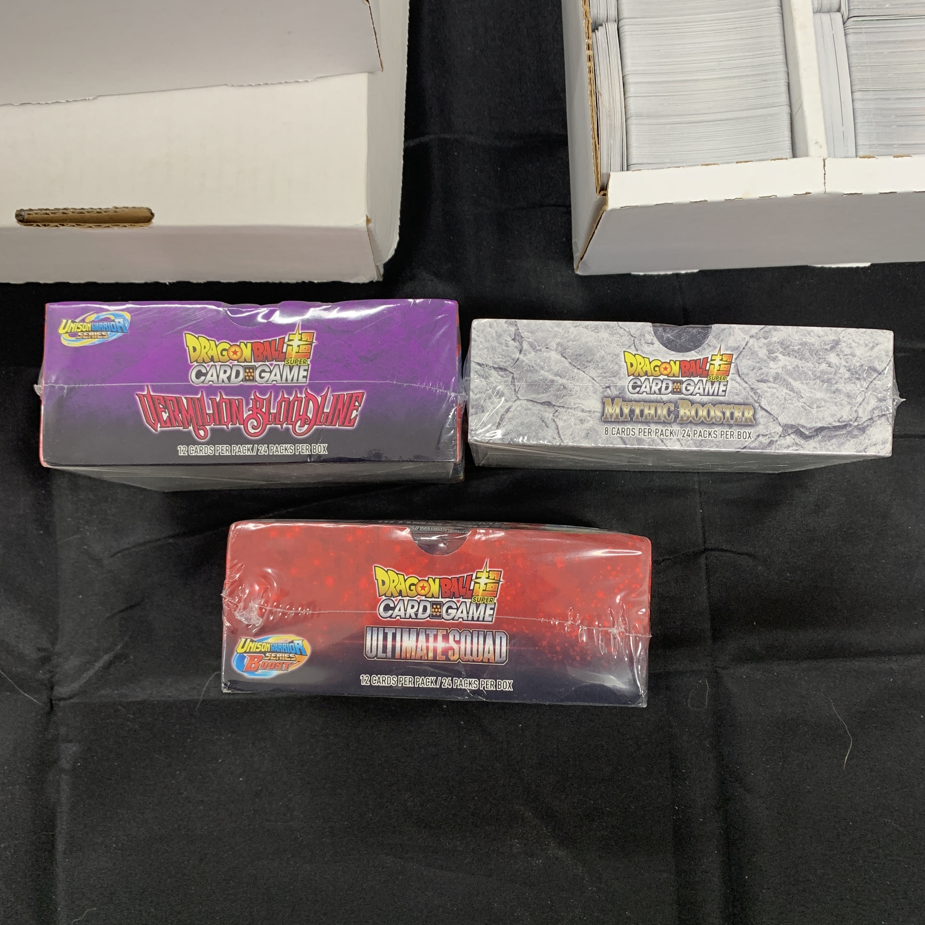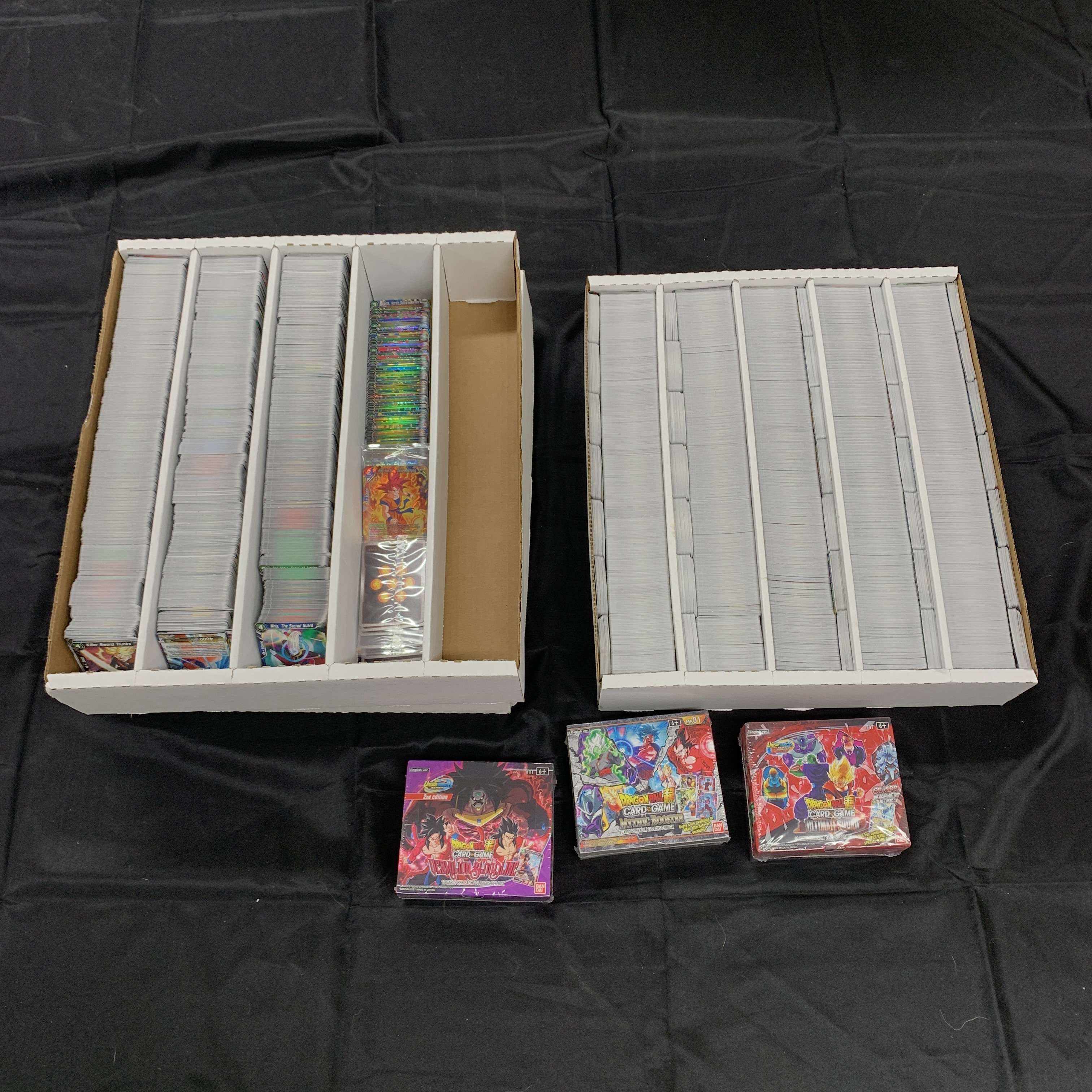 Huge lot of approximately 16,000-18,000 Dragon Ball Z Trading Cards. Includes holos. 3 Sealed Booster Boxes. Vermilion Blood Line, Ultimate Squad, and Mythic Booster. We are a veteran owned company. Please look at the pictures carefully to determine what you believe the condition of collectible is. We are currently accepting consignments. Email us a [email protected] or visit our website, www.ahauctionhouse.com. We are currently seeking all types of collectibles.
