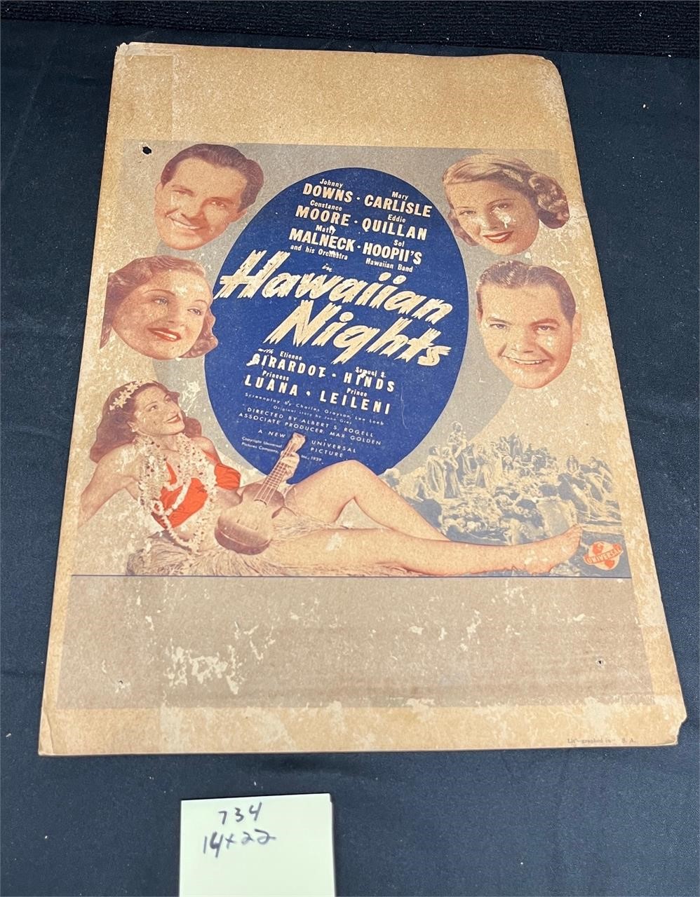 Hawaiian Nights 1939 Original Movie Window Card