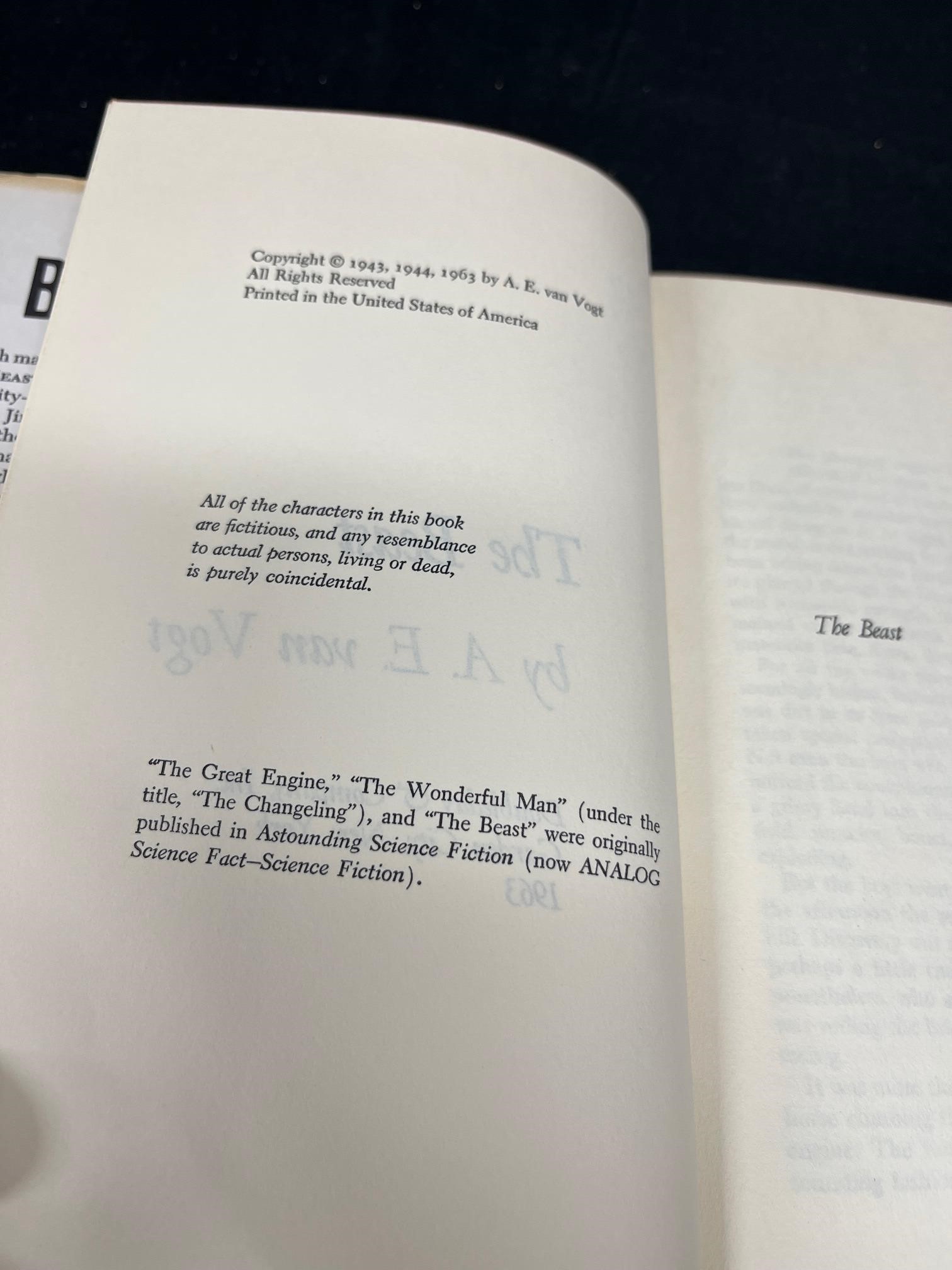 A.E. Van Vogt The Beast HC 1E1963 Edition Novel